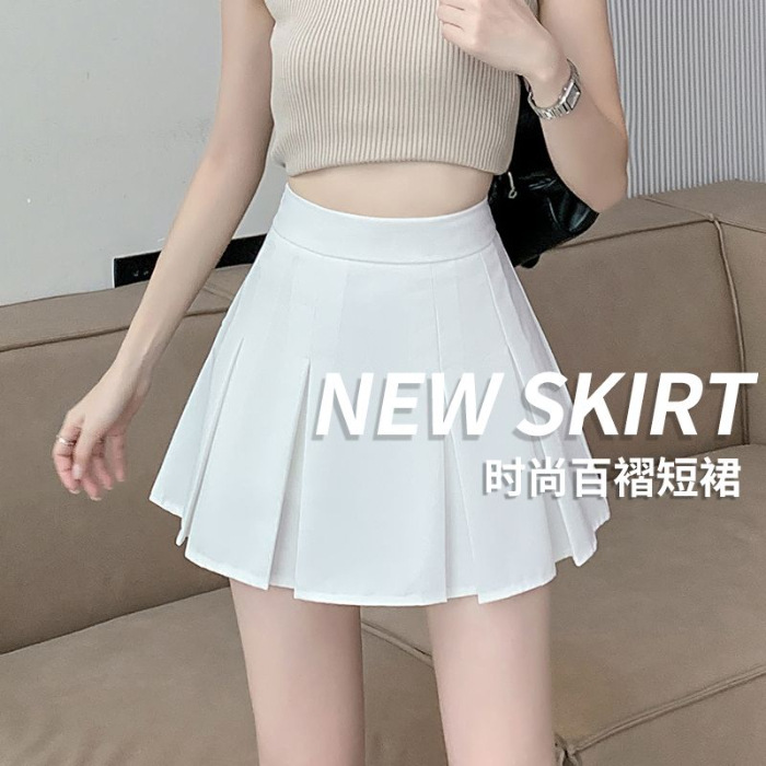 여름 여성을 위한 한국식 플리츠 스커트 새로운 스타일 쁘띠 캐주얼 하이웨이스트 슬림 A라인 푹신한 정장 숏팬츠