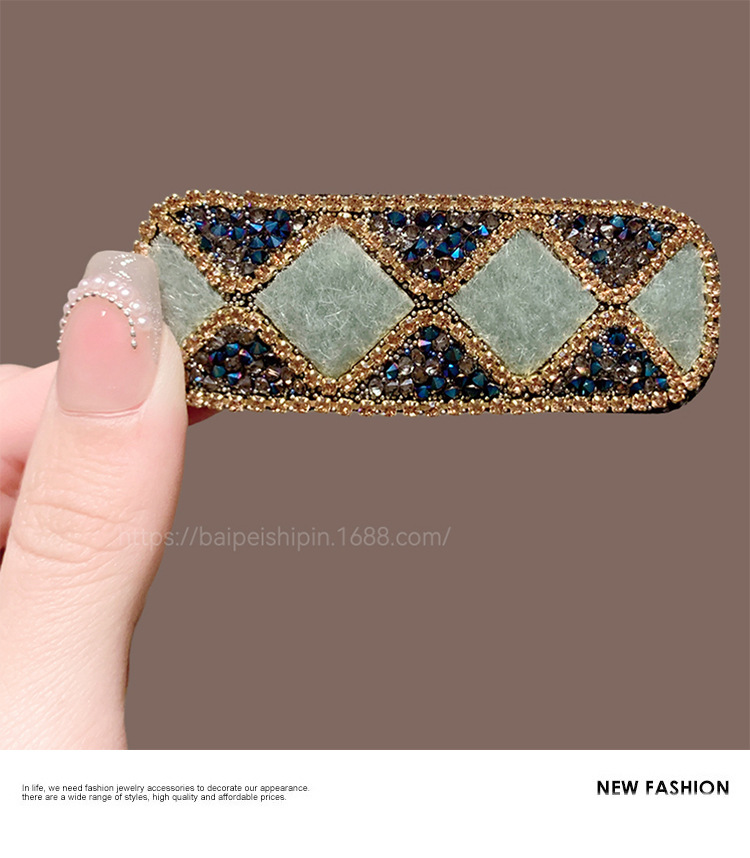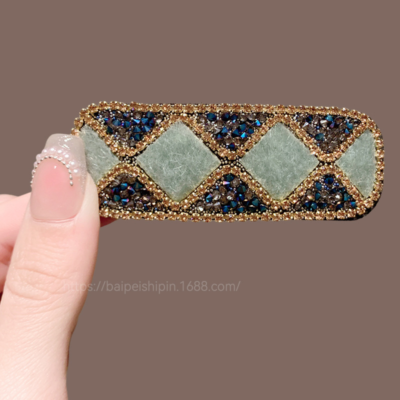 • 녹색 라인스톤 체크무늬 머리핀