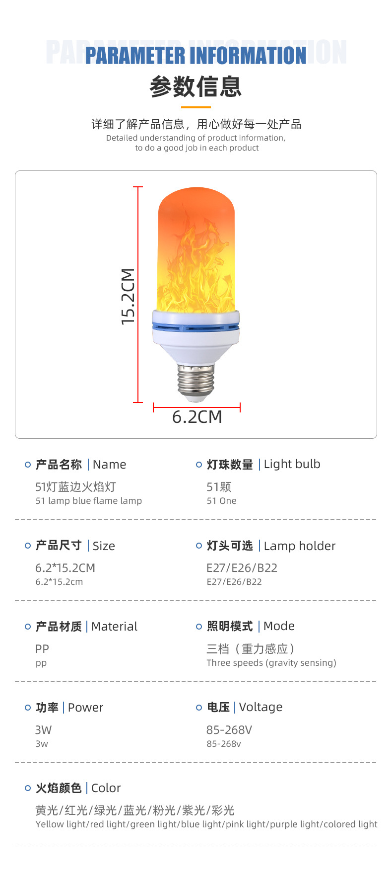 국경 간 블루 에지 불꽃 램프 51 구슬 분위기 램프 바 KTV 중력 센서 전구 e27 4단 불꽃 램프