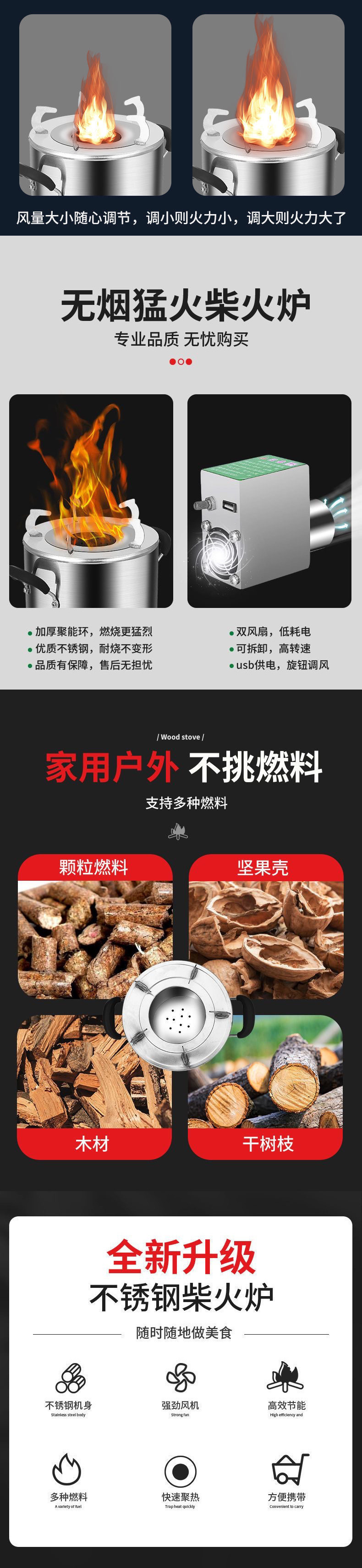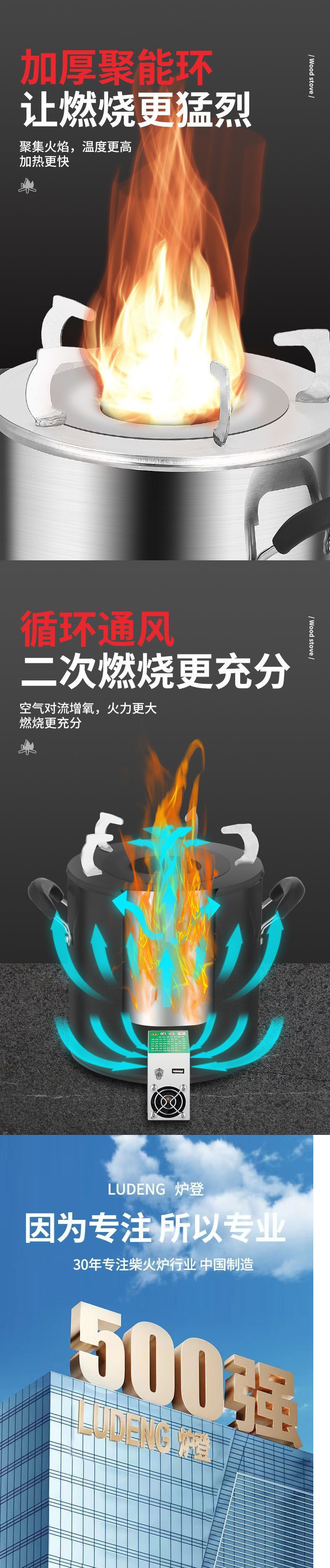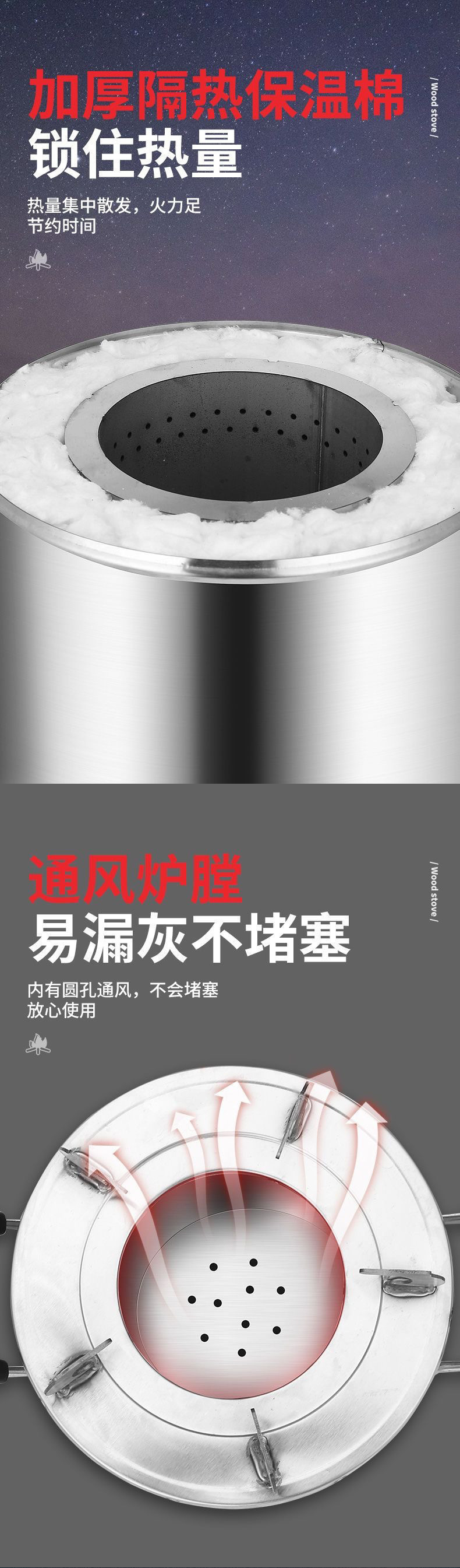 柴火灶节能家用木材气化炉农村无烟新款加厚便携环保不锈钢柴火炉