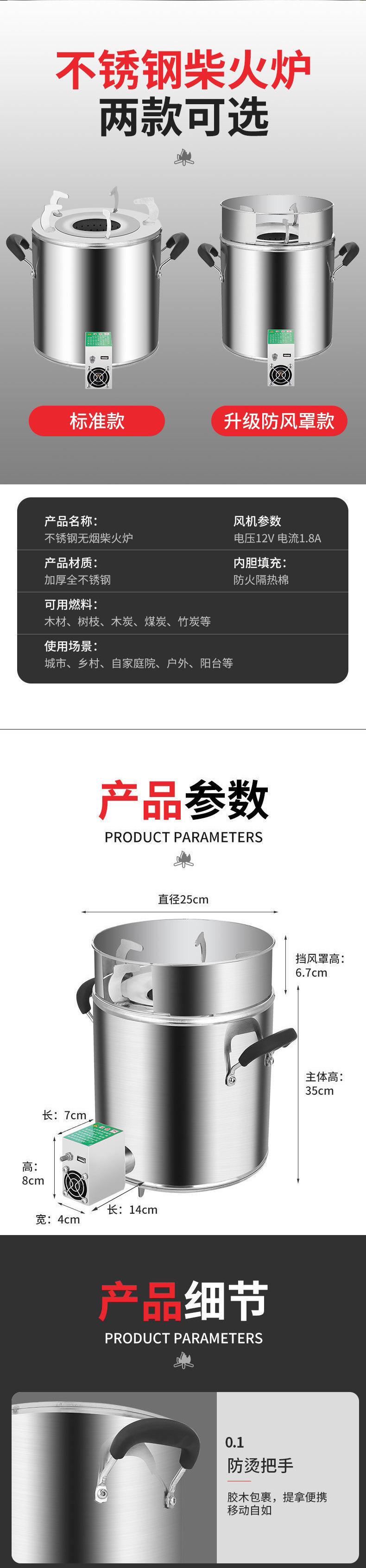 • 무연 난로 + 팬 + 선물 - 고품질 스테인레스 스틸 무연 두꺼운 장작 난로