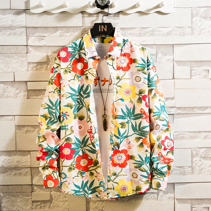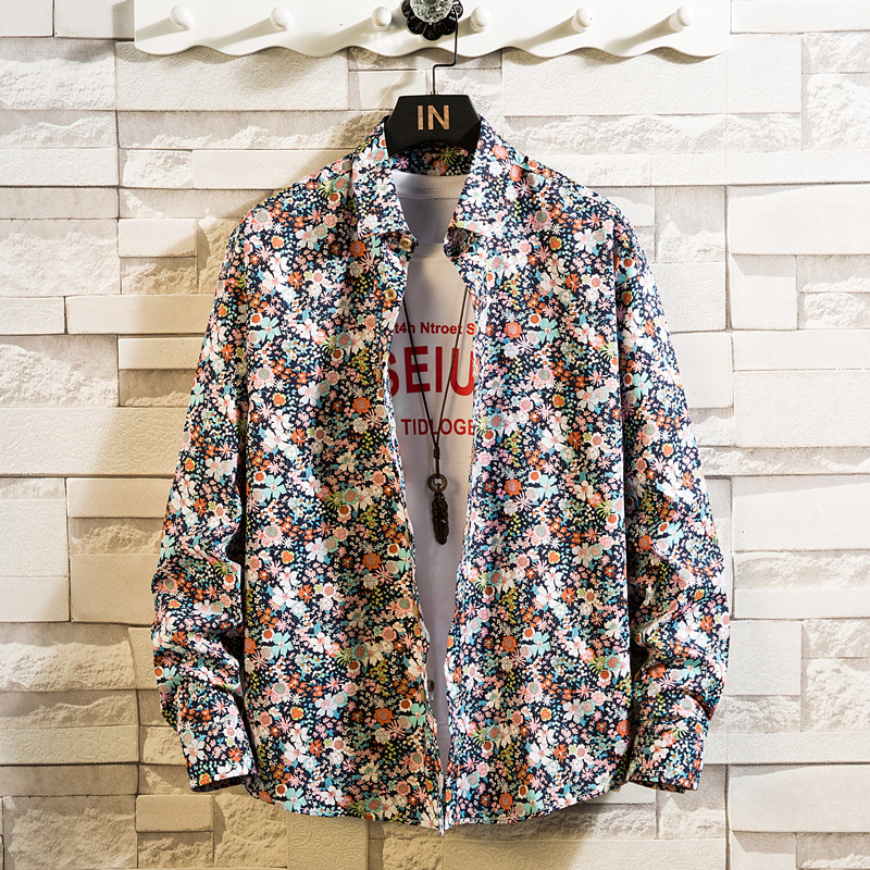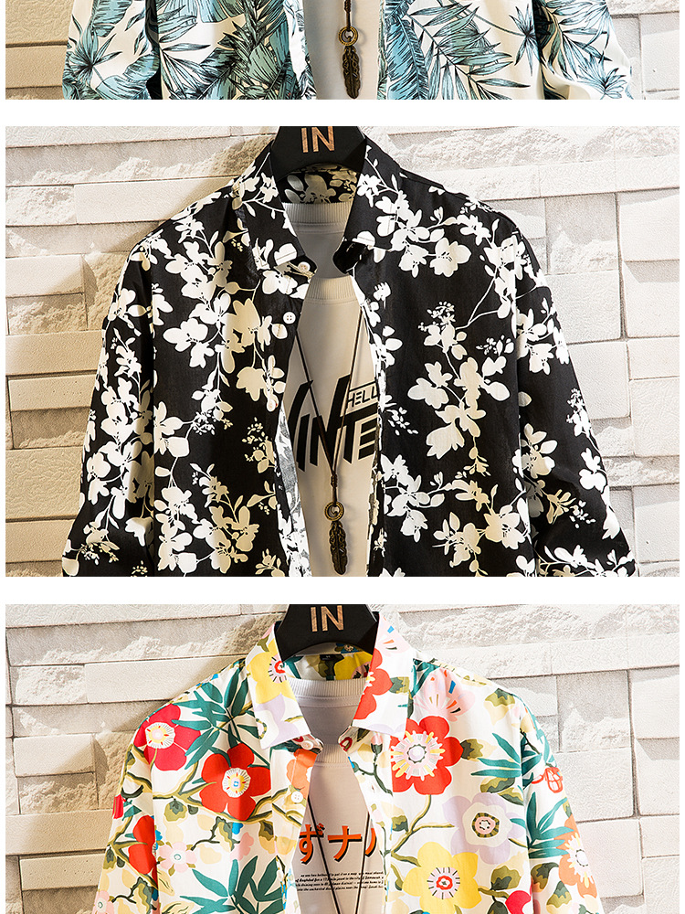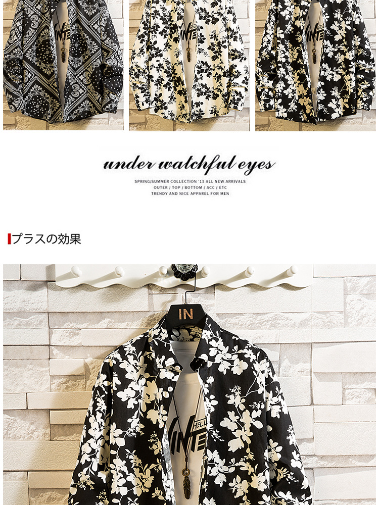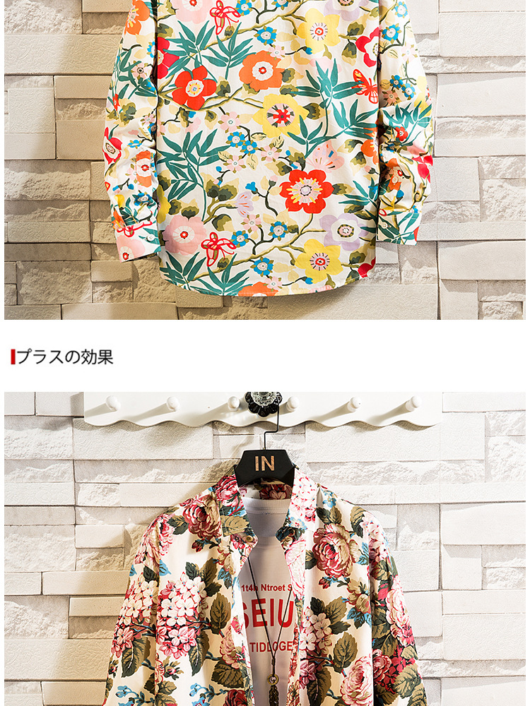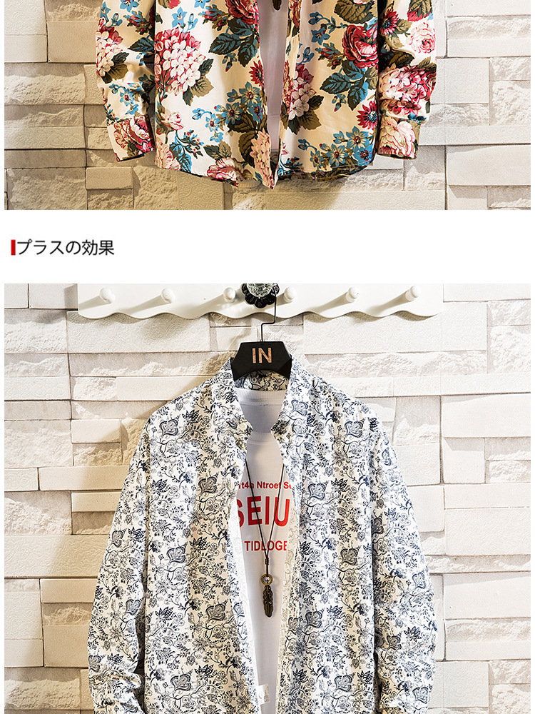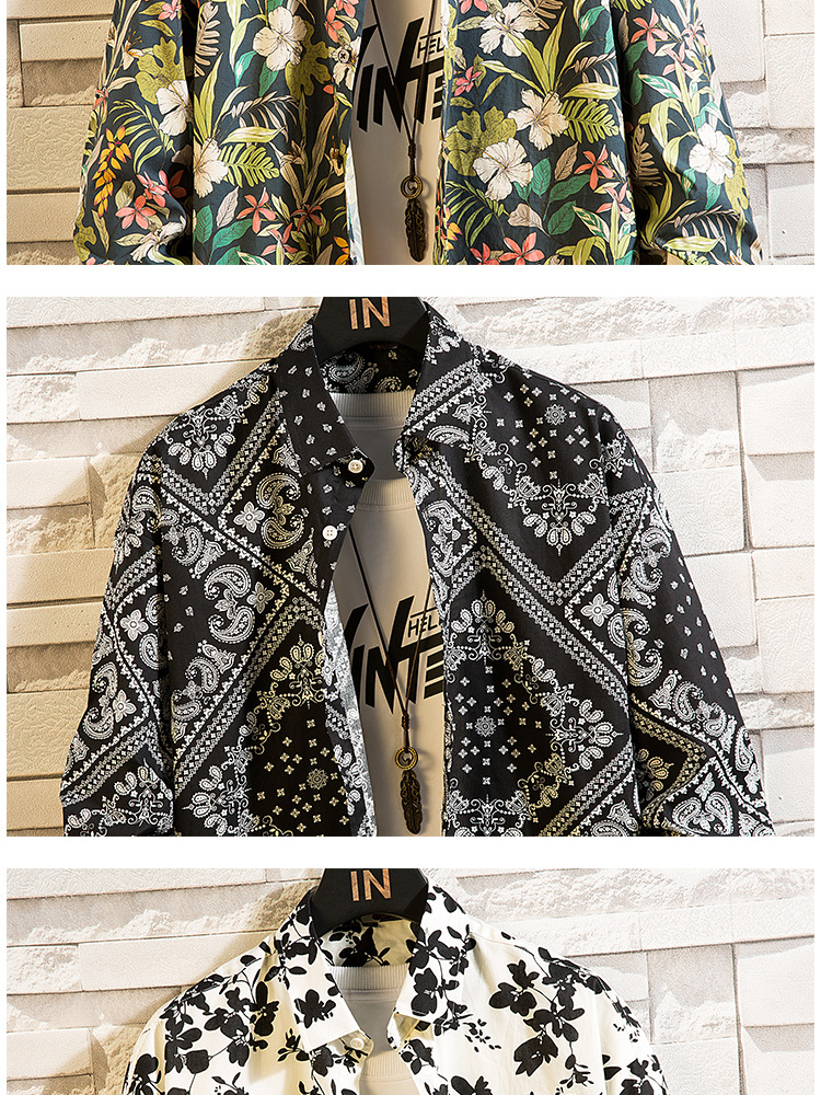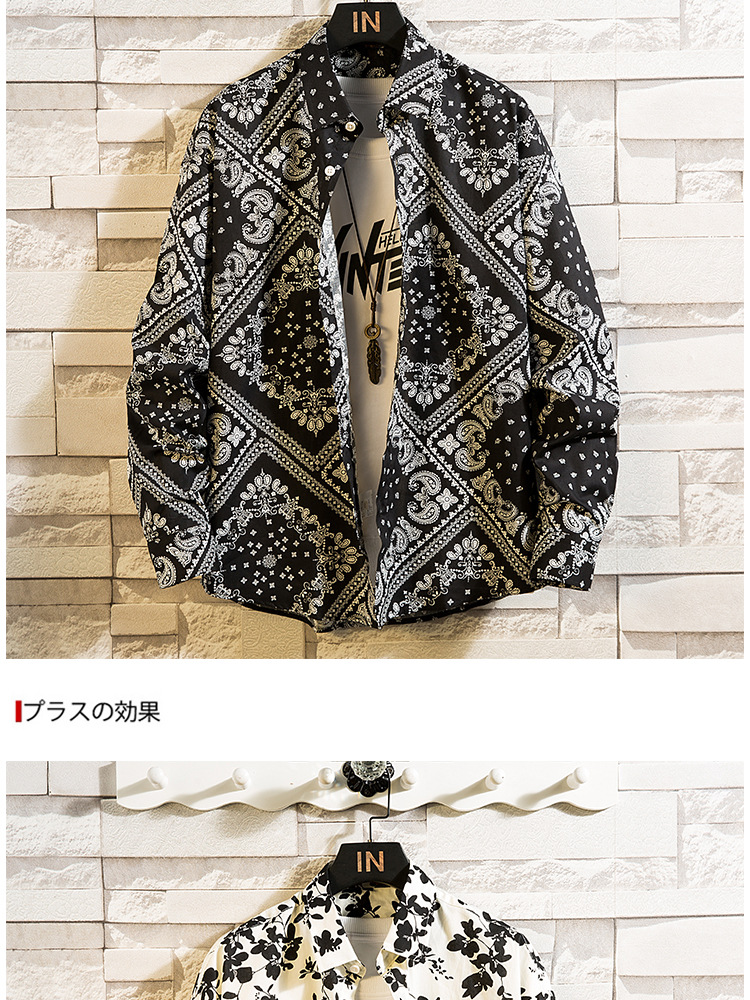 남성용 봄 여름 얇은 맞춤형 패션 브랜드 프린트 긴팔 라펠 플러스 사이즈 셔츠 아우터스토어 가기