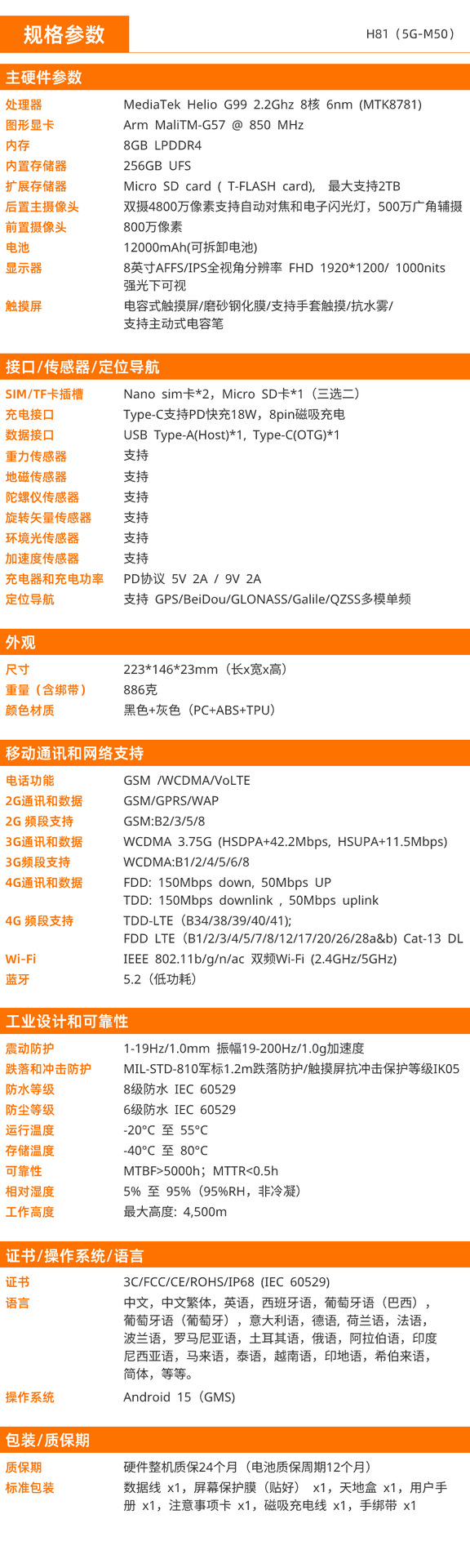 • H81-M50-R/8+256G/블랙+그레이/1200*1920/1000nit/NFC