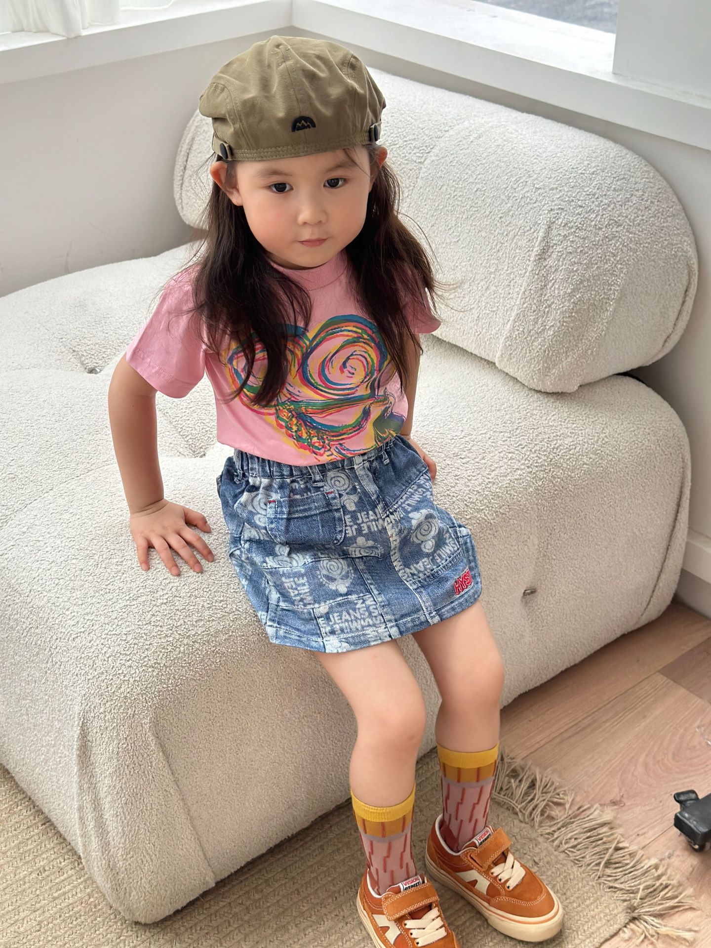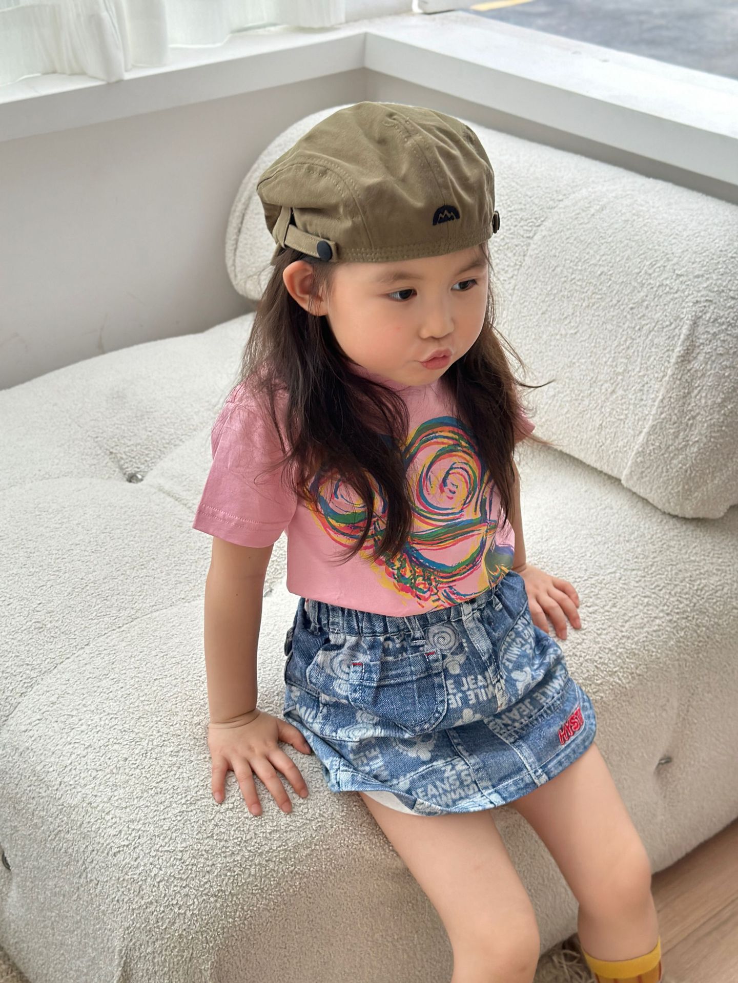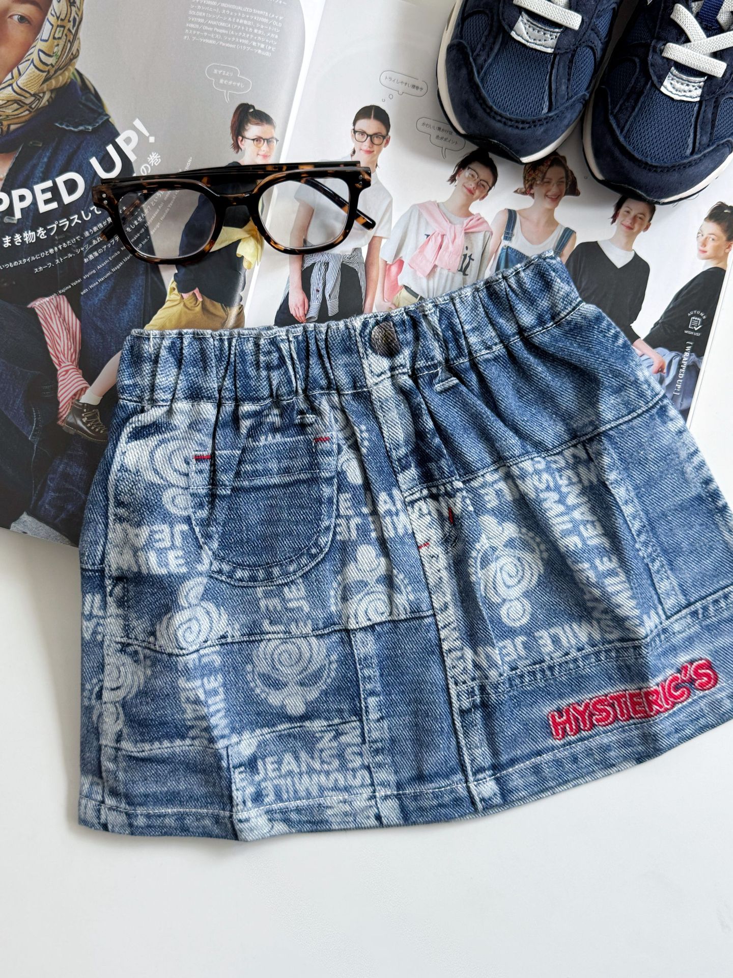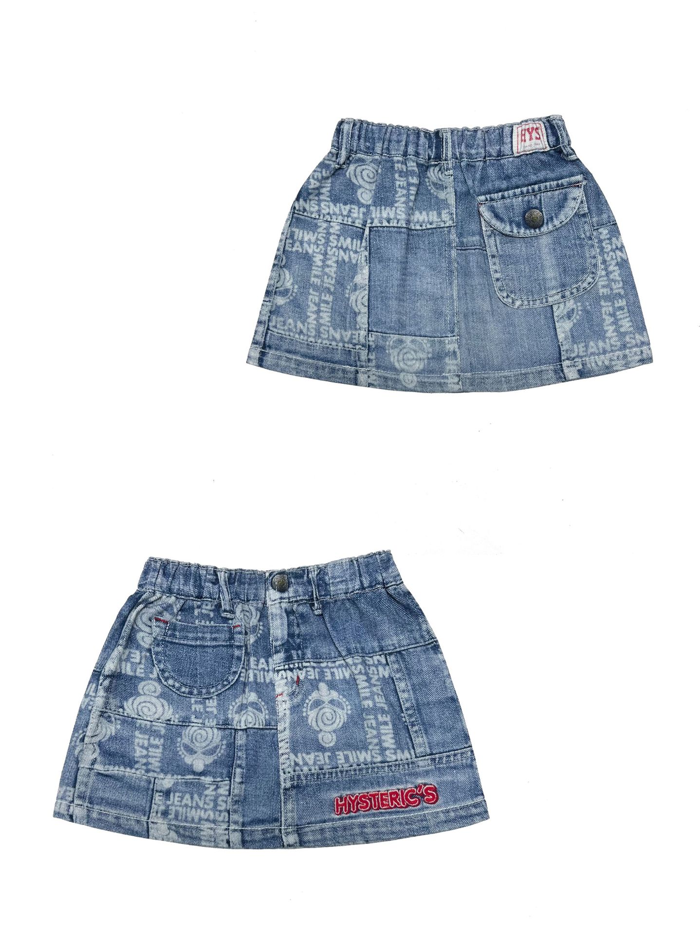 2025 새로운 블랙 슈퍼 트렌디 브랜드 젖꼭지 아바타 스플라이싱 모조 데님 포켓 스커트 젖꼭지 키즈 스커트 재고 있음