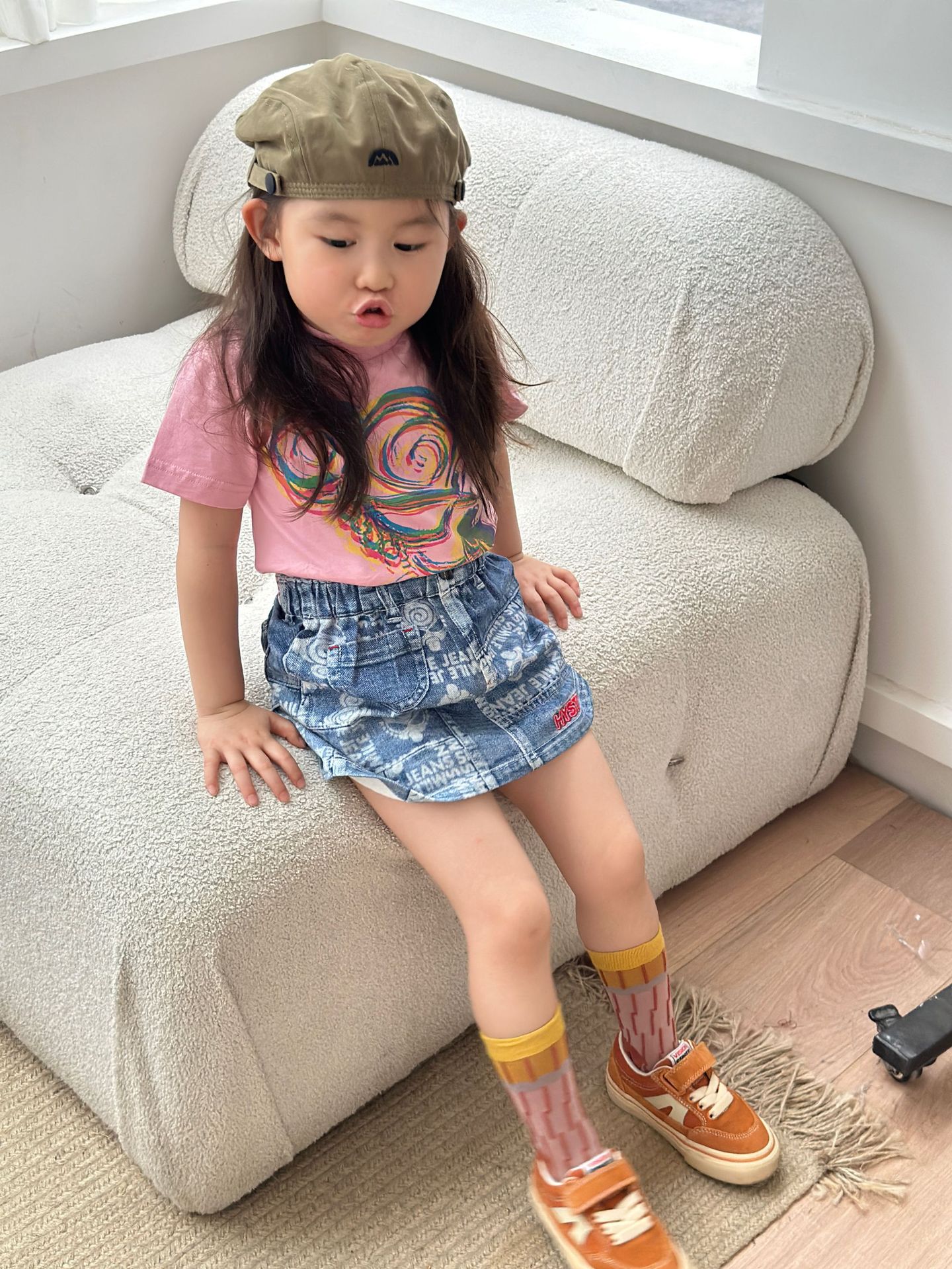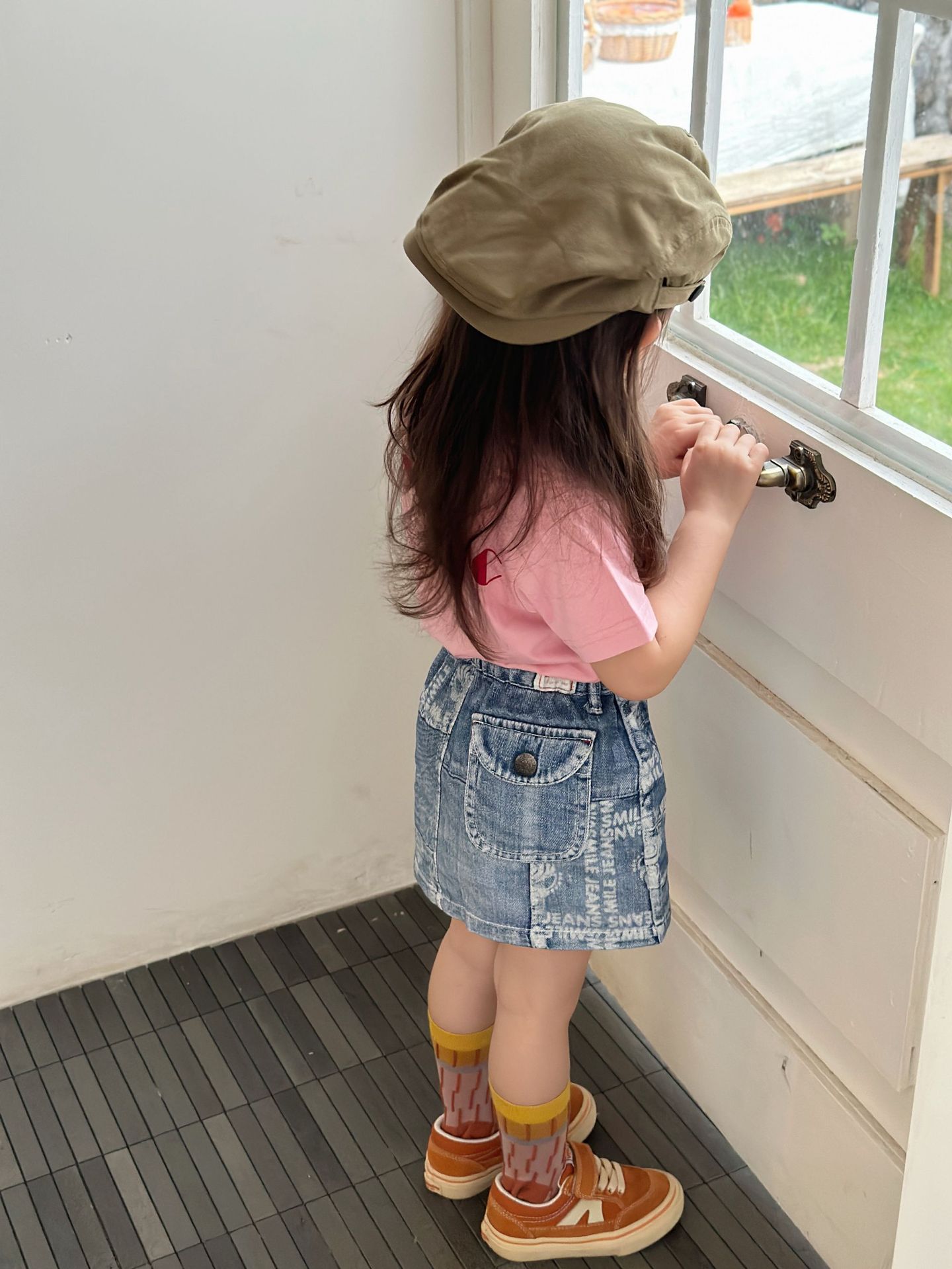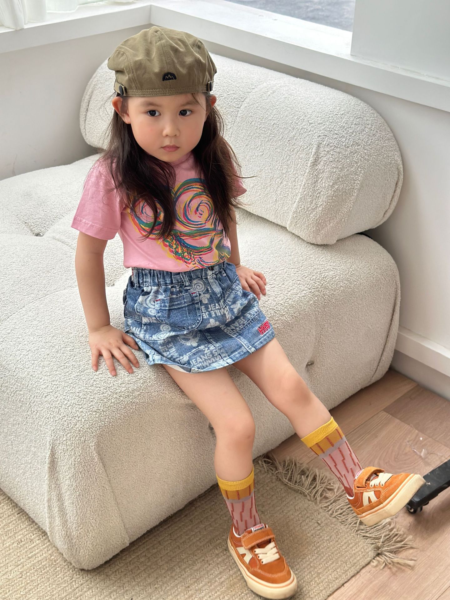 2025 새로운 블랙 슈퍼 트렌디 브랜드 젖꼭지 아바타 스플라이싱 모조 데님 포켓 스커트 젖꼭지 키즈 스커트 재고 있음