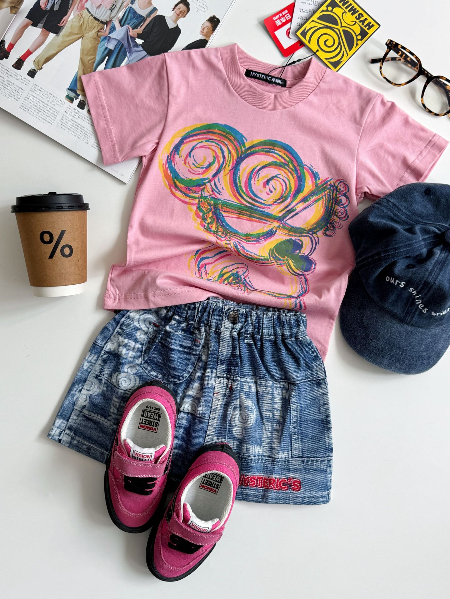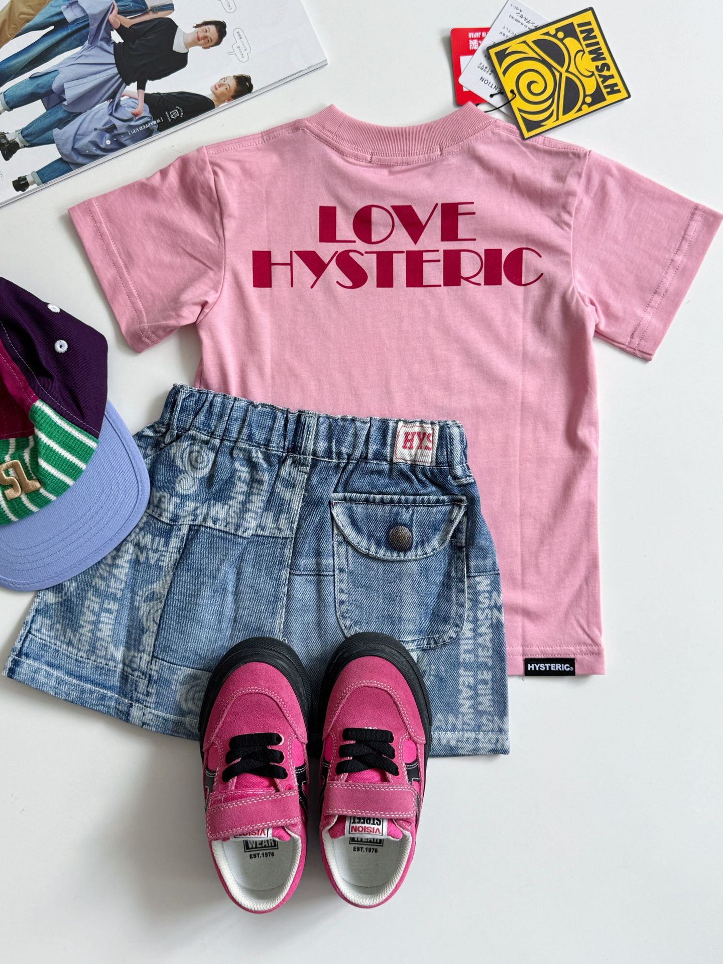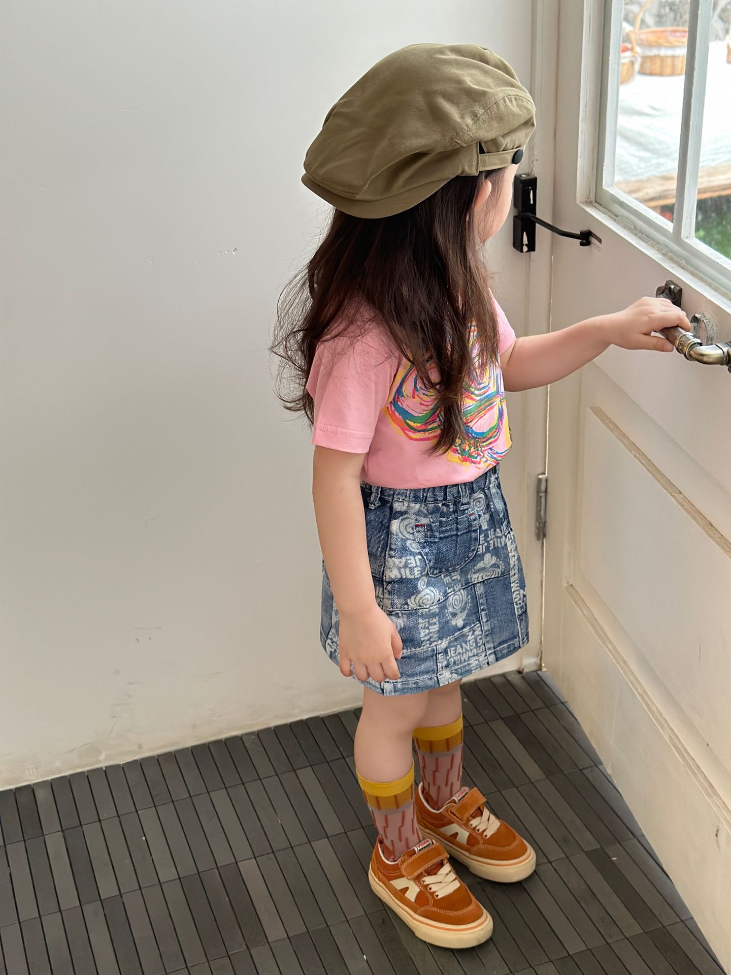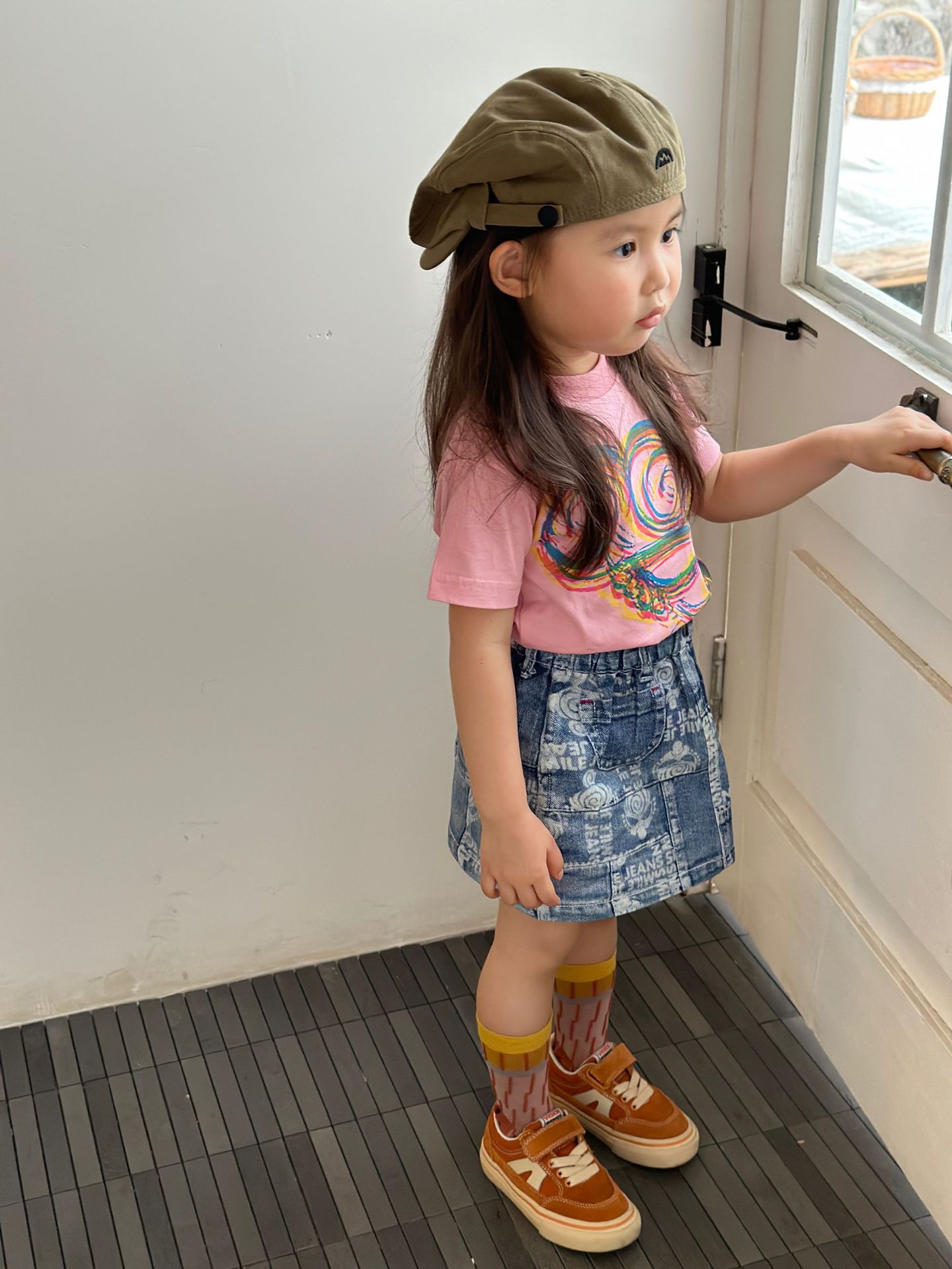2025 새로운 블랙 슈퍼 트렌디 브랜드 젖꼭지 아바타 스플라이싱 모조 데님 포켓 스커트 젖꼭지 키즈 스커트 재고 있음