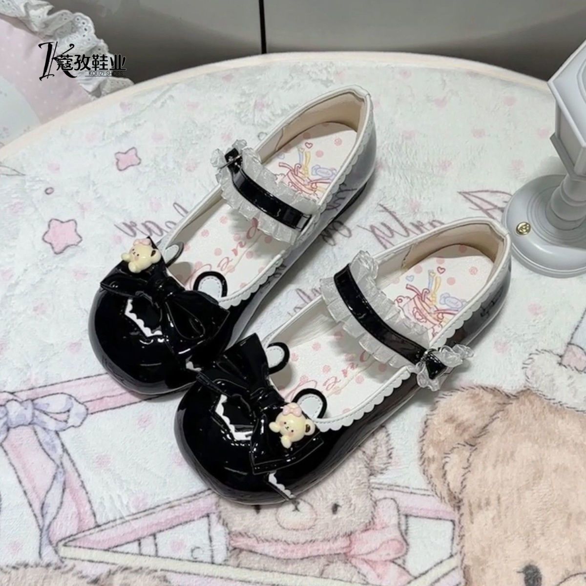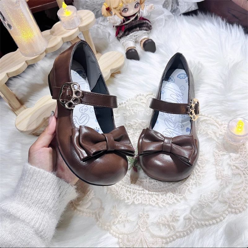 오리지널 로리타 레이스 보우 메리 제인 가죽 신발 라운드 발가락 로우 힐 로리타 작은 가죽 신발 JK 공주 신발