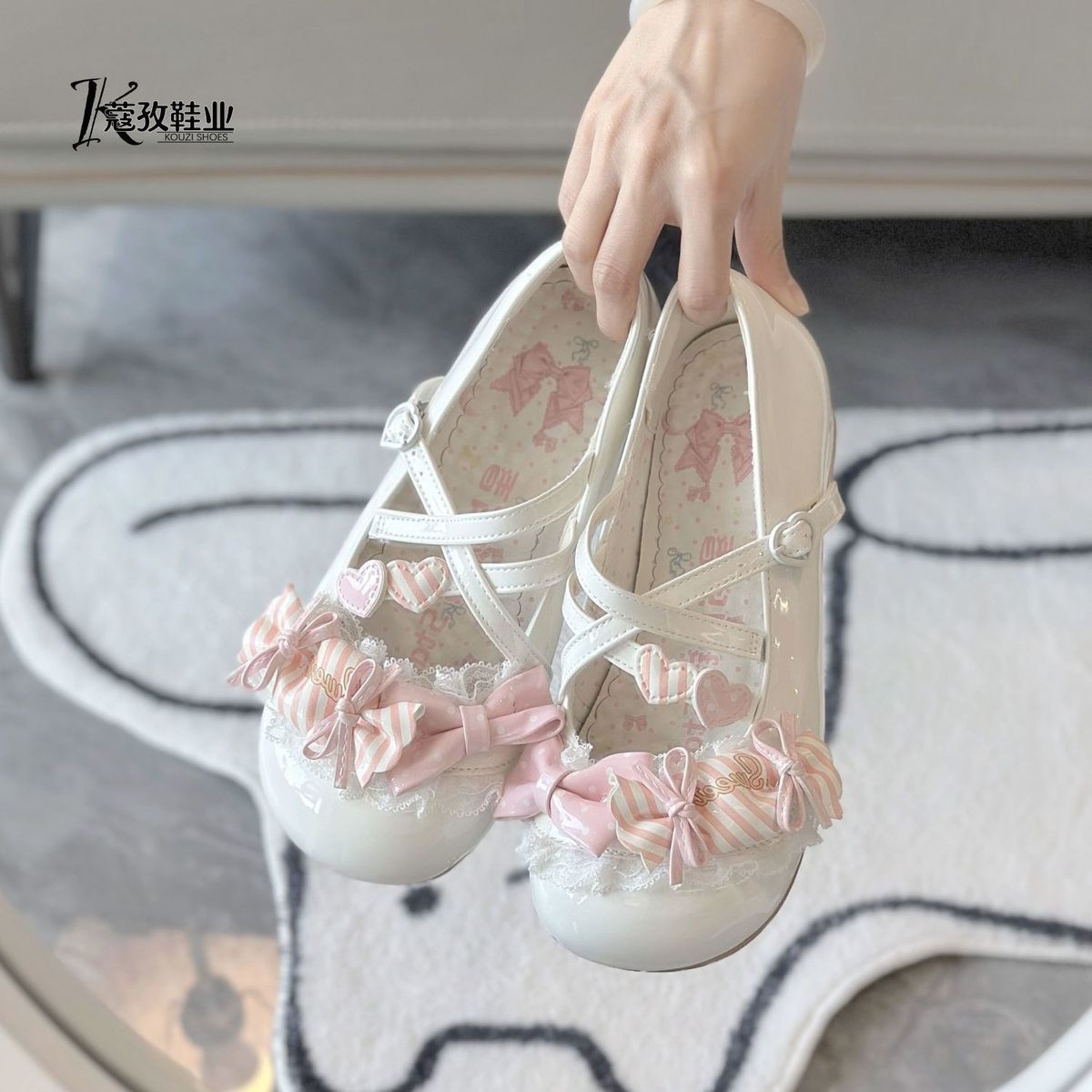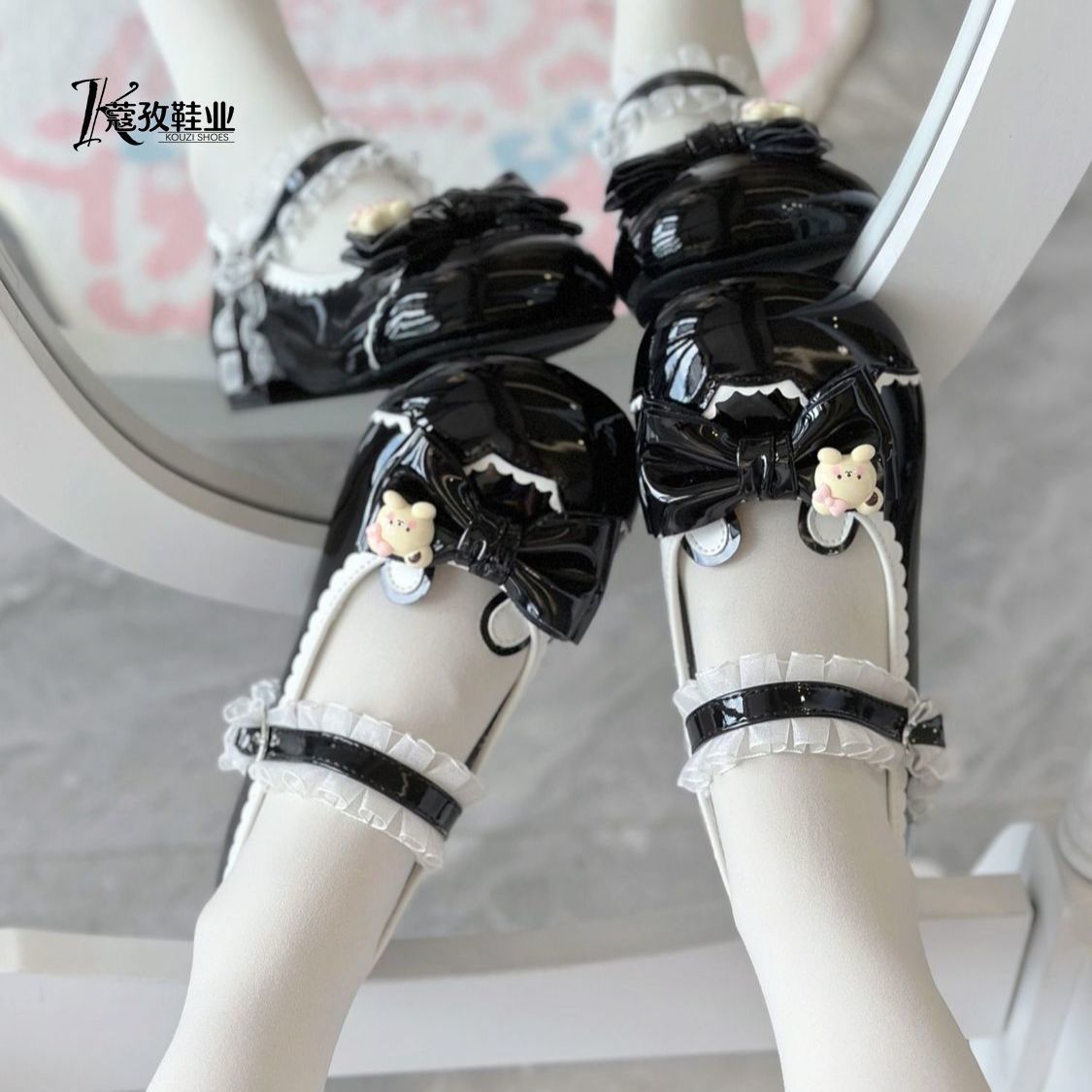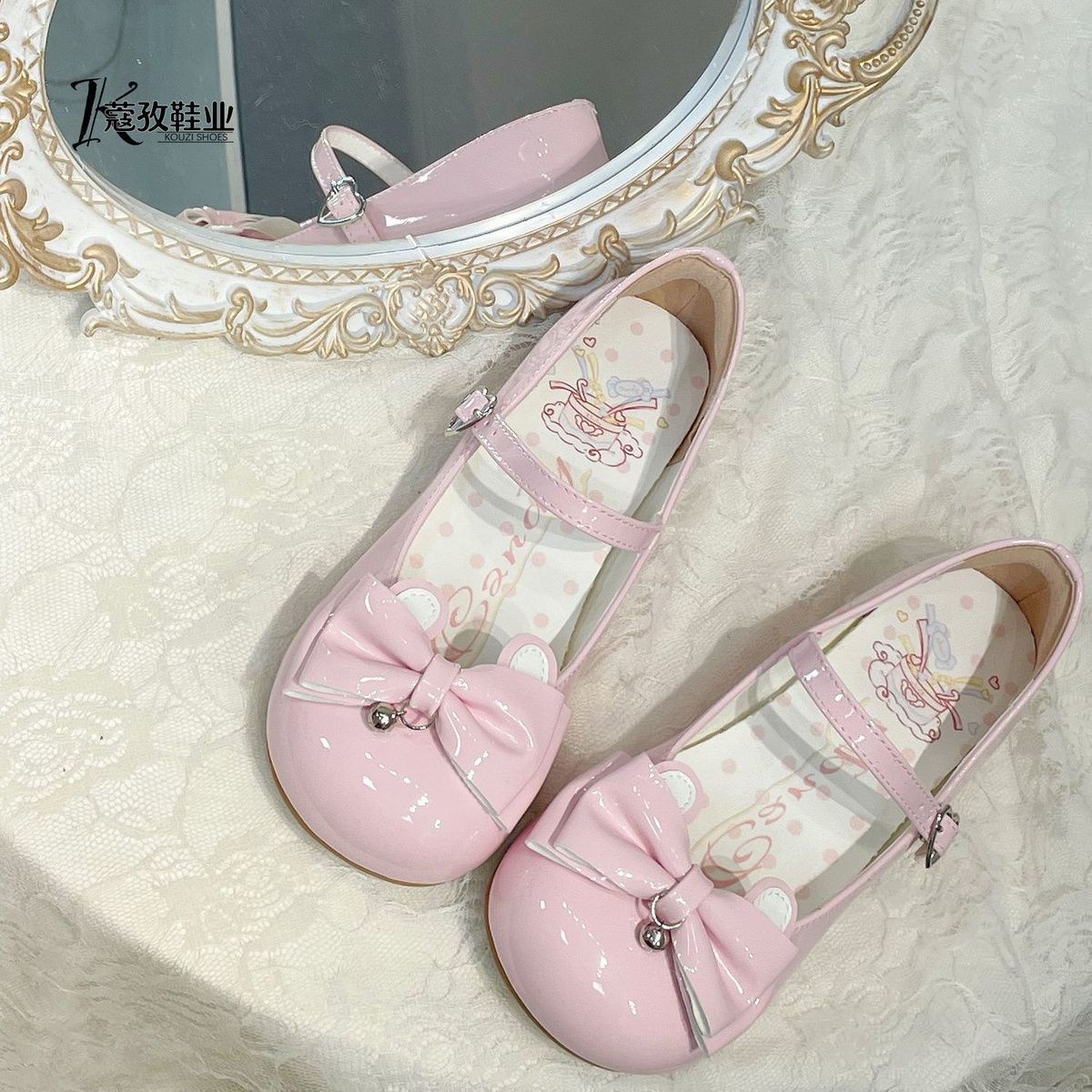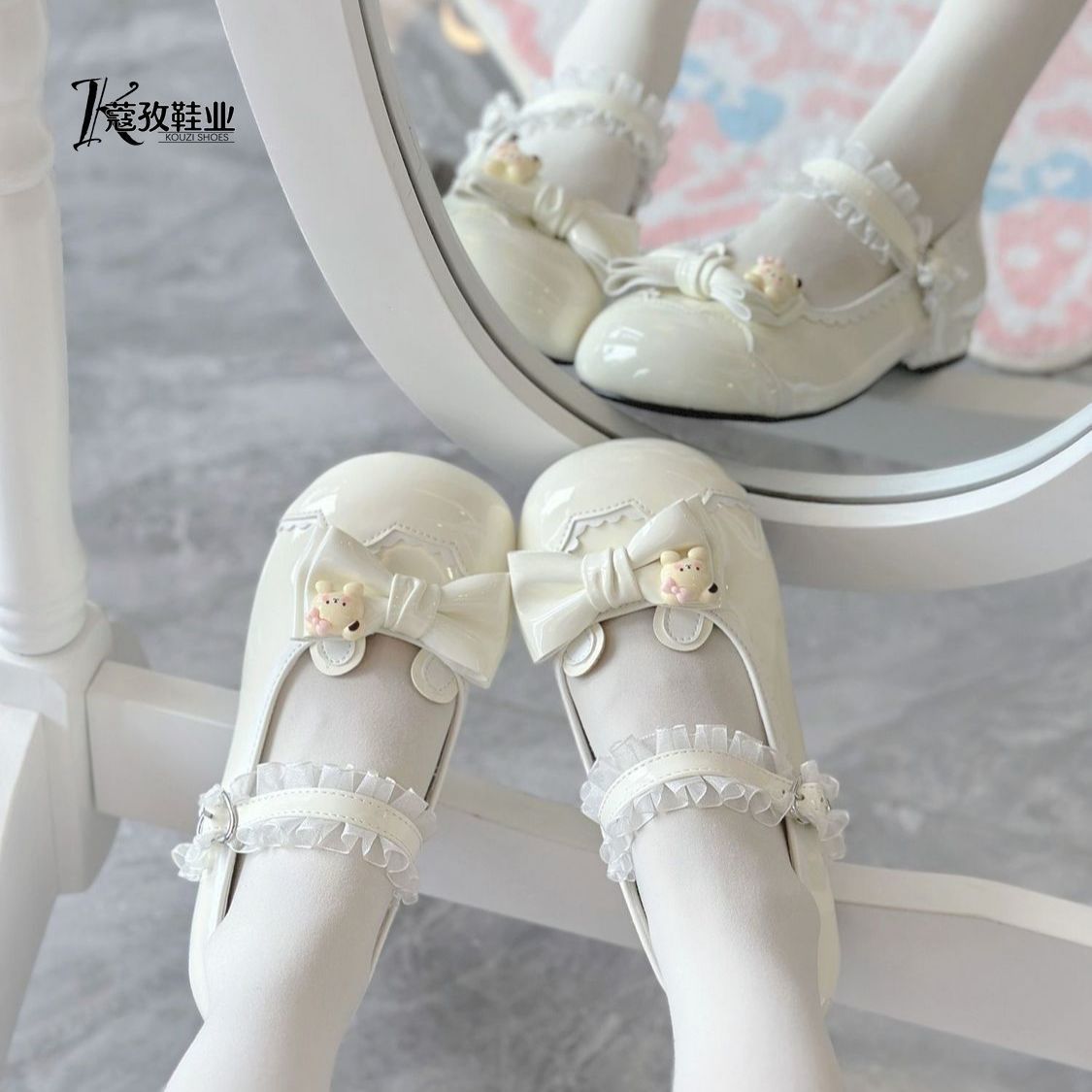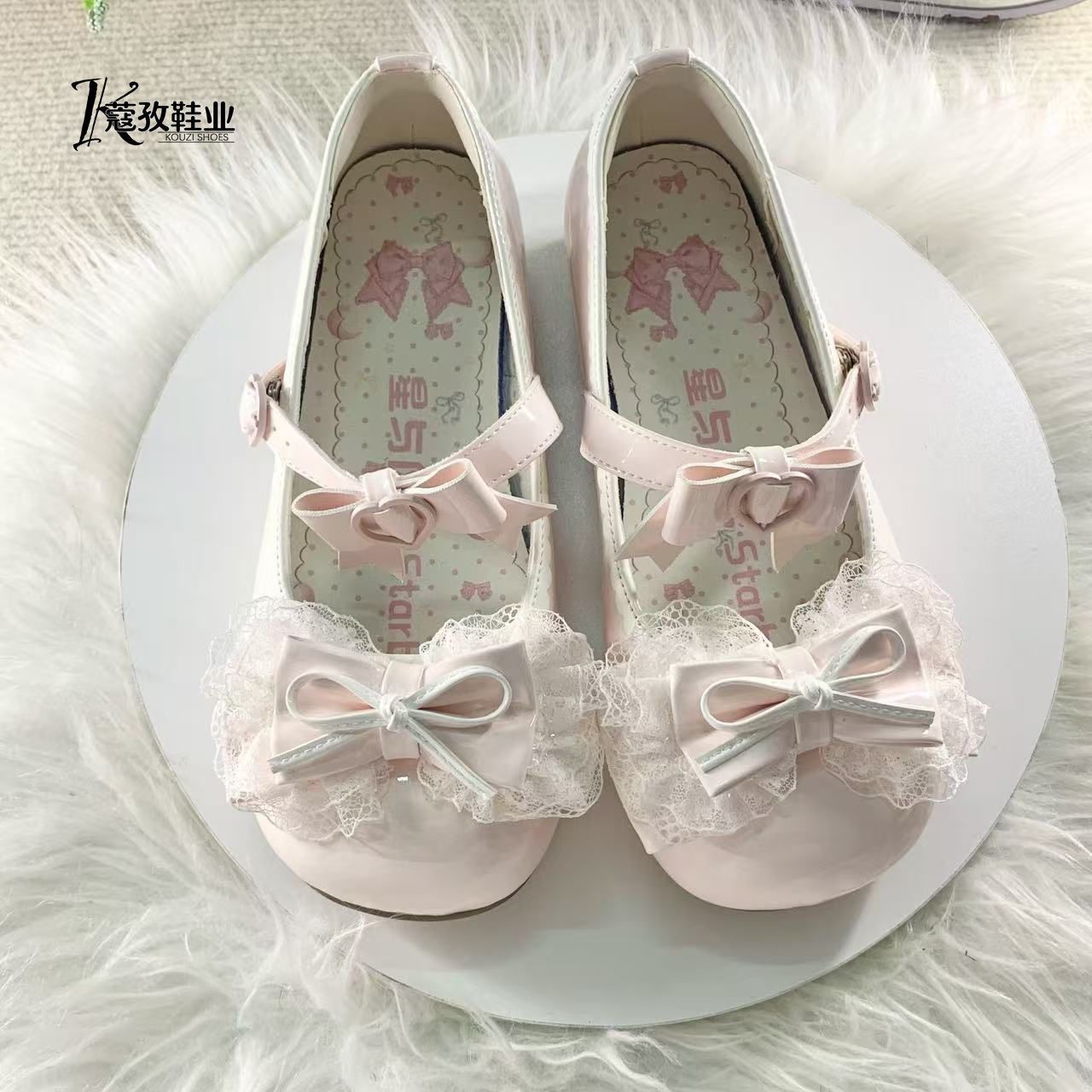 오리지널 로리타 레이스 보우 메리 제인 가죽 신발 라운드 발가락 로우 힐 로리타 작은 가죽 신발 JK 공주 신발스토어 가기