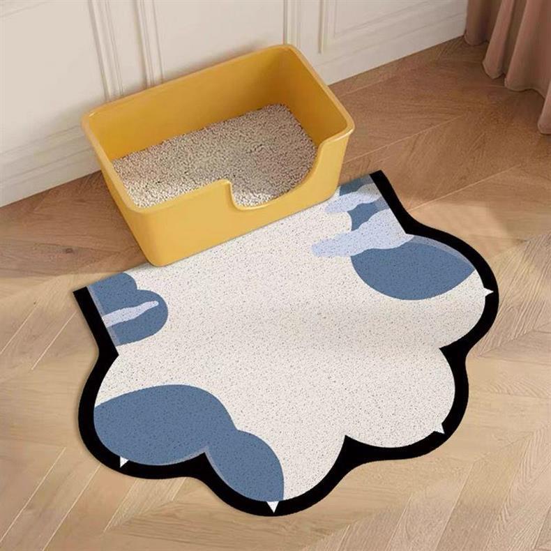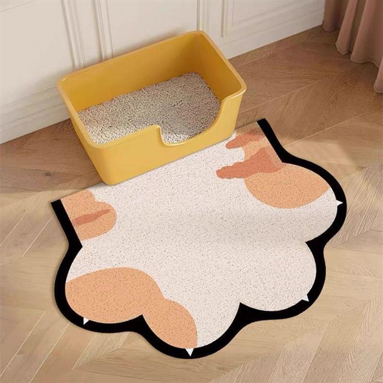 고양이와 개를 위한 고양이 쓰레기통 매트, 물 튀김 방지 매트, 외출 방지 실크 링, 애완동물 물 튀김 방지 및 모래 제어 매트, 초대형 귀여운 바닥 매트
