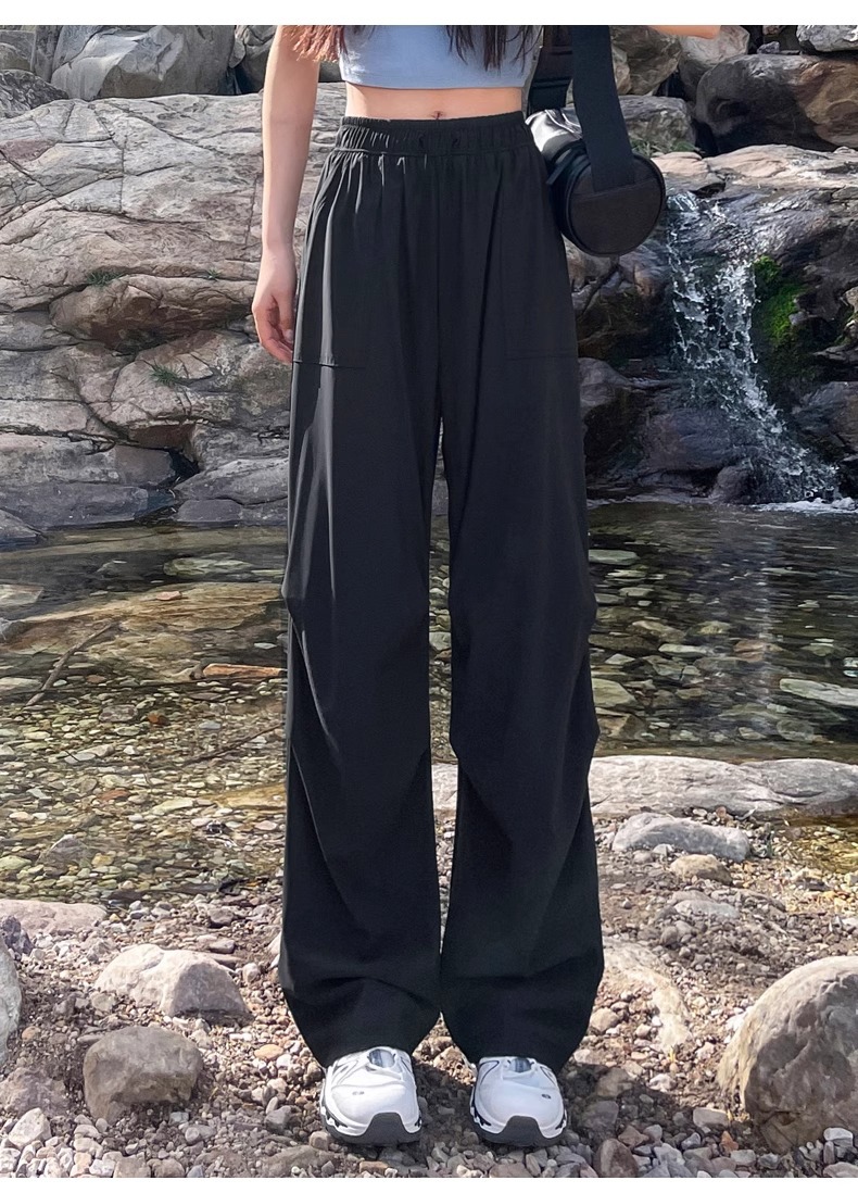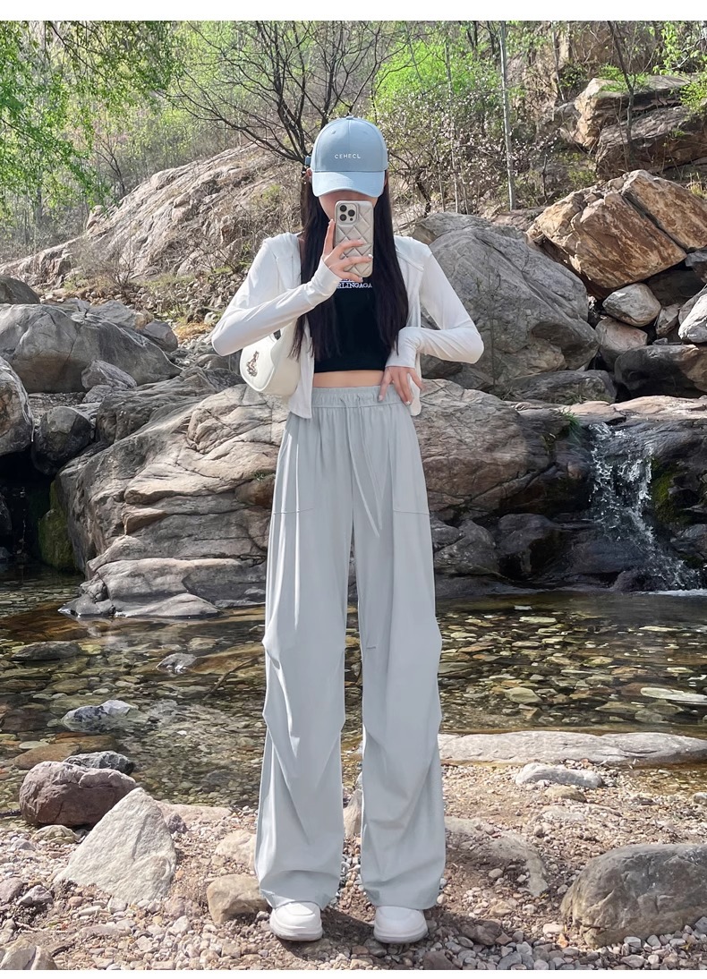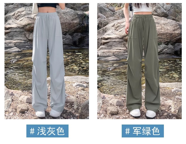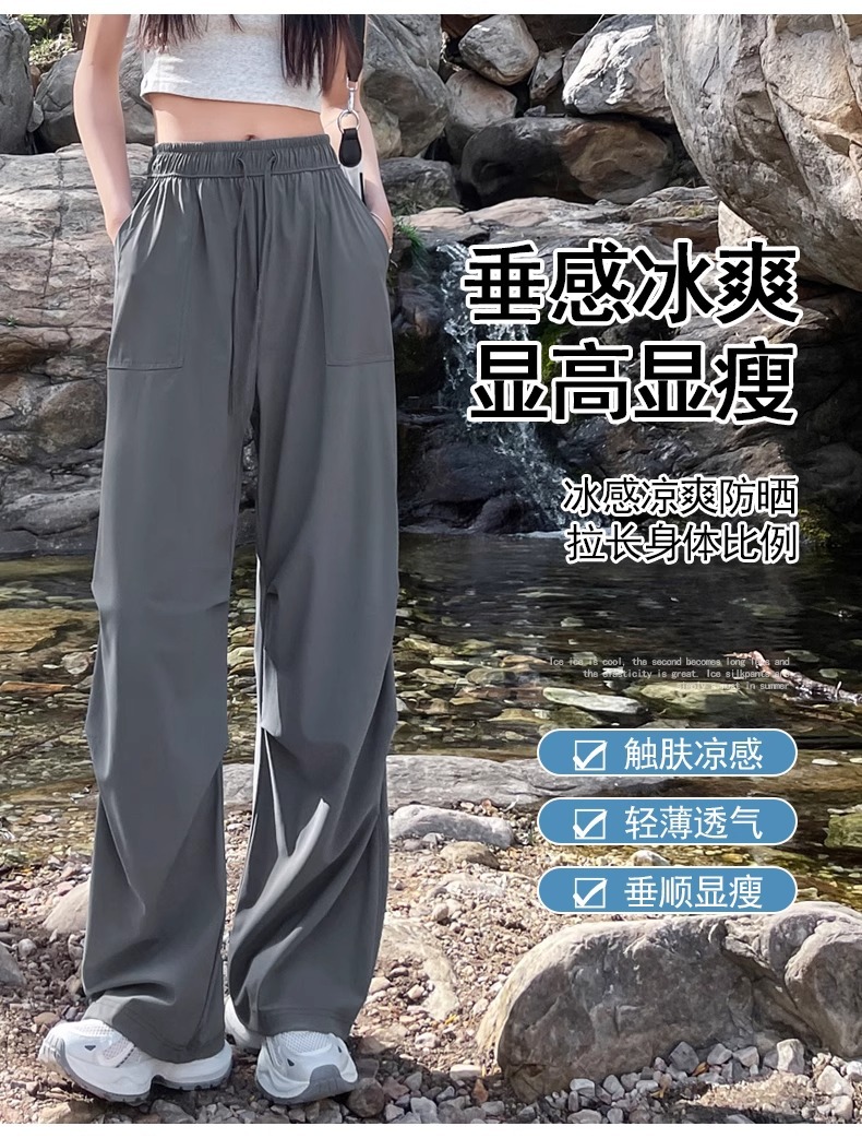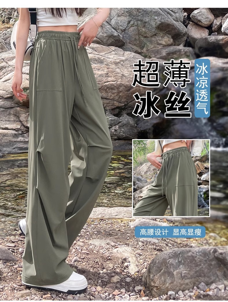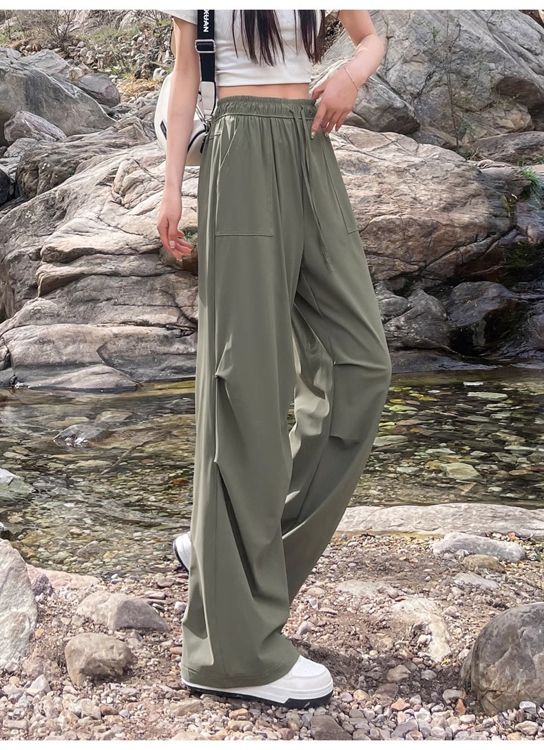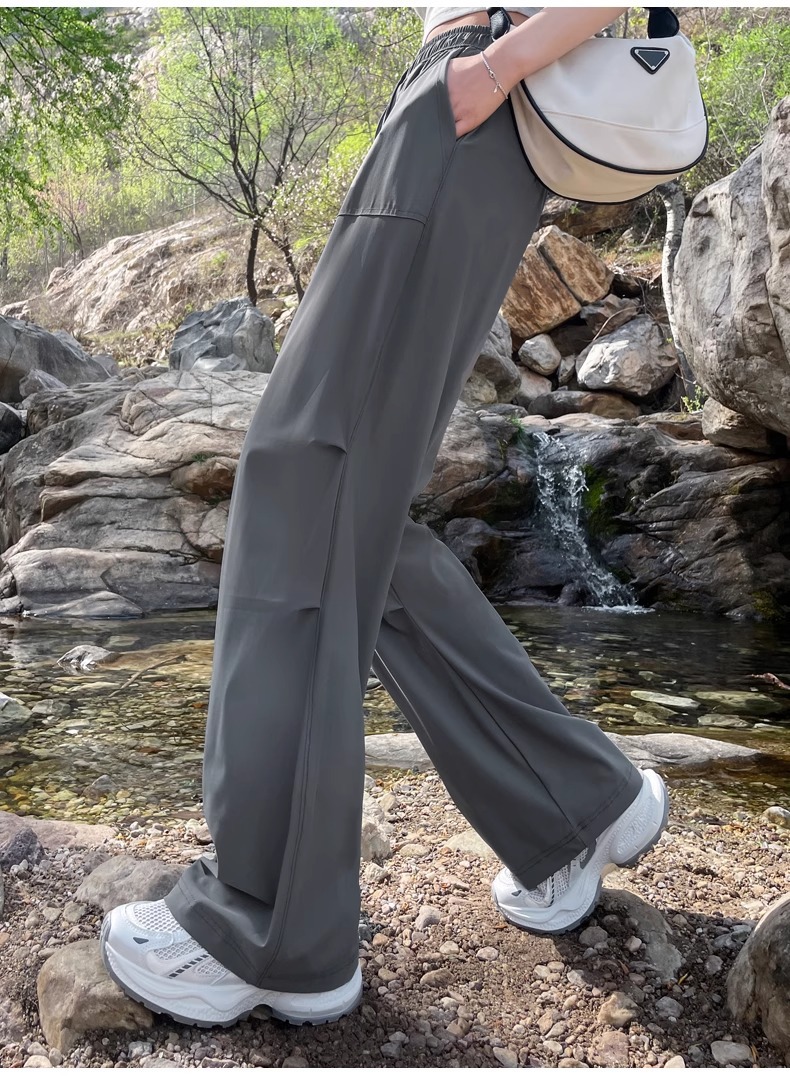 아이스 실크 스포츠 바지 여성 여름 얇은 캐주얼 와이드 레그 야외 하이킹 등산 바지 빠른 건조 파라슈트 작업복