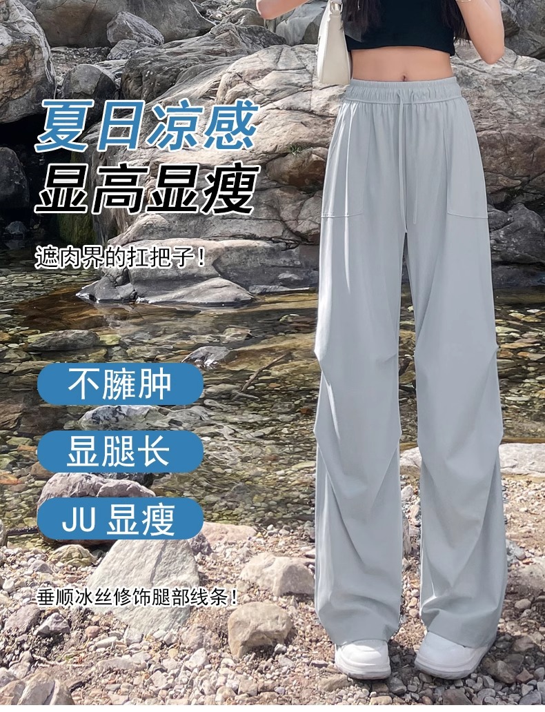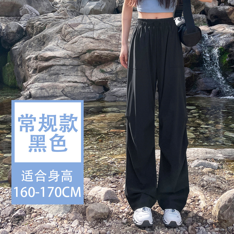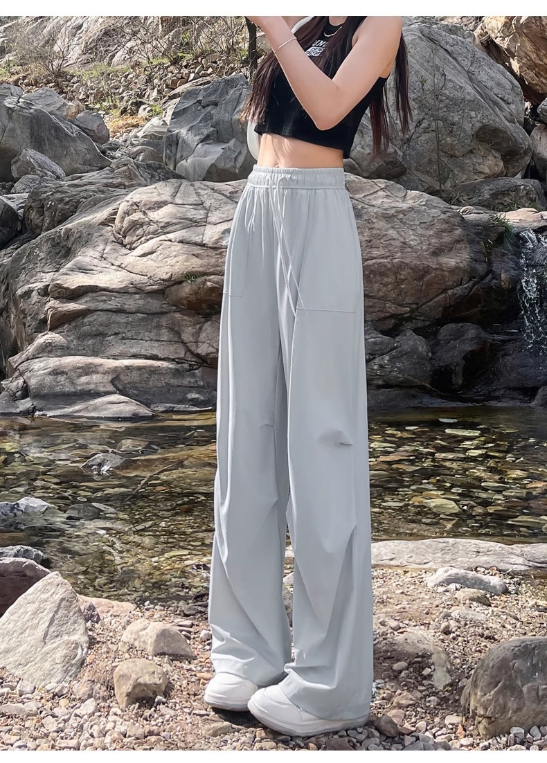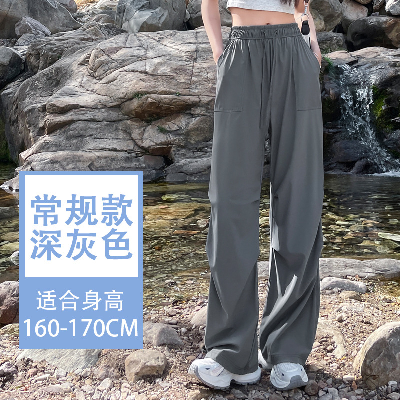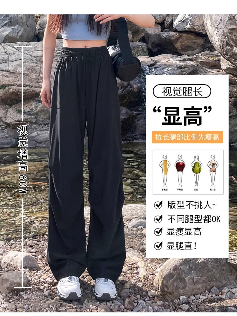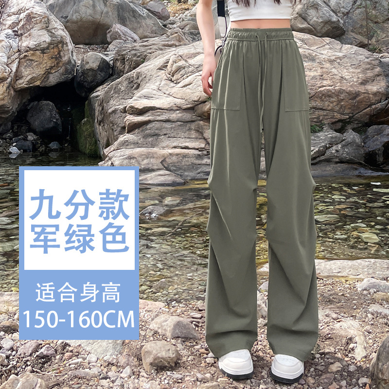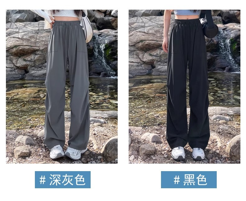 아이스 실크 스포츠 바지 여성 여름 얇은 캐주얼 와이드 레그 야외 하이킹 등산 바지 빠른 건조 파라슈트 작업복
