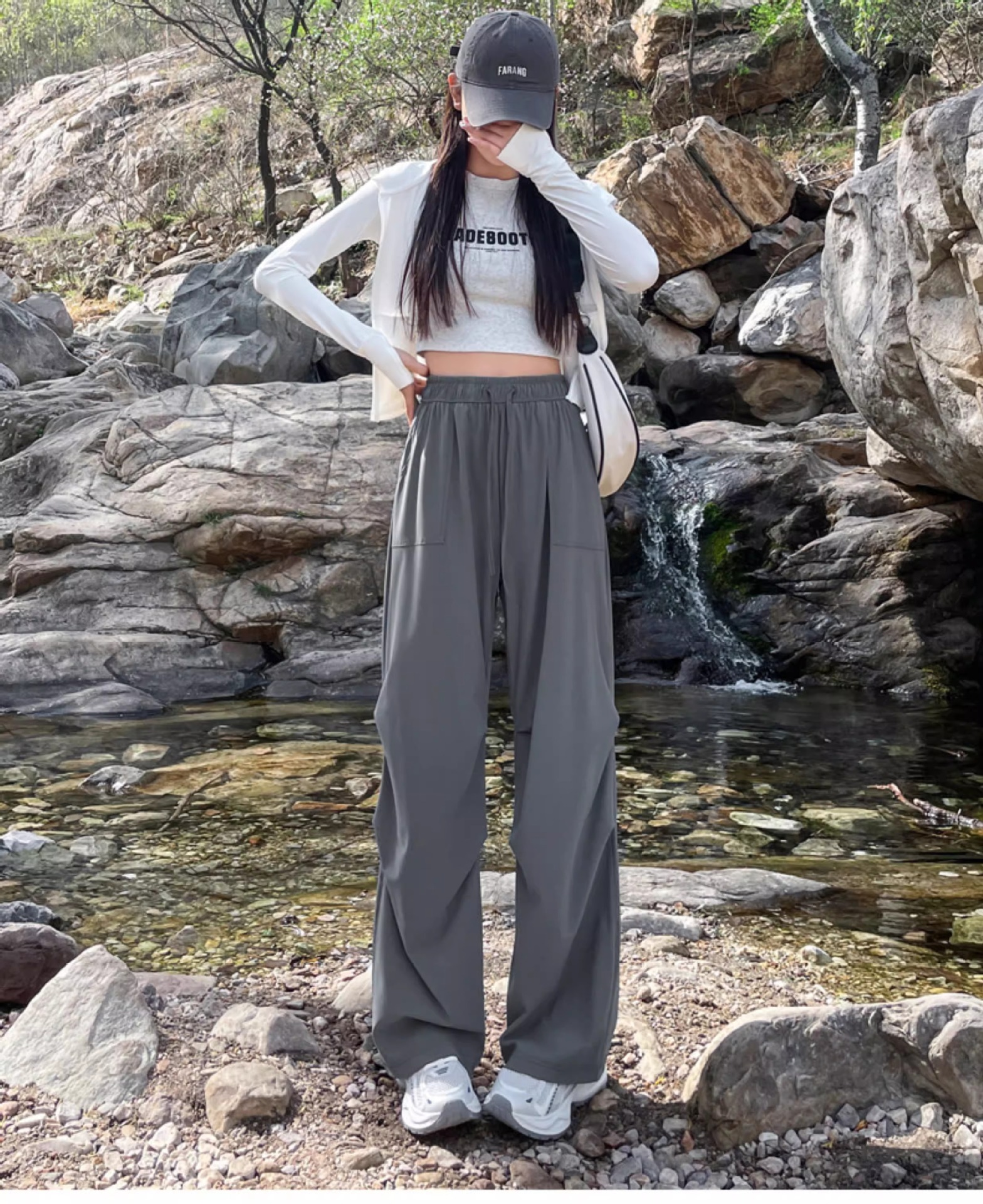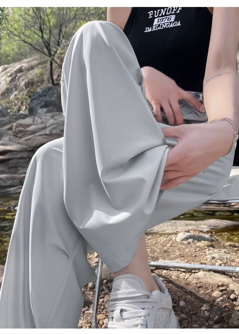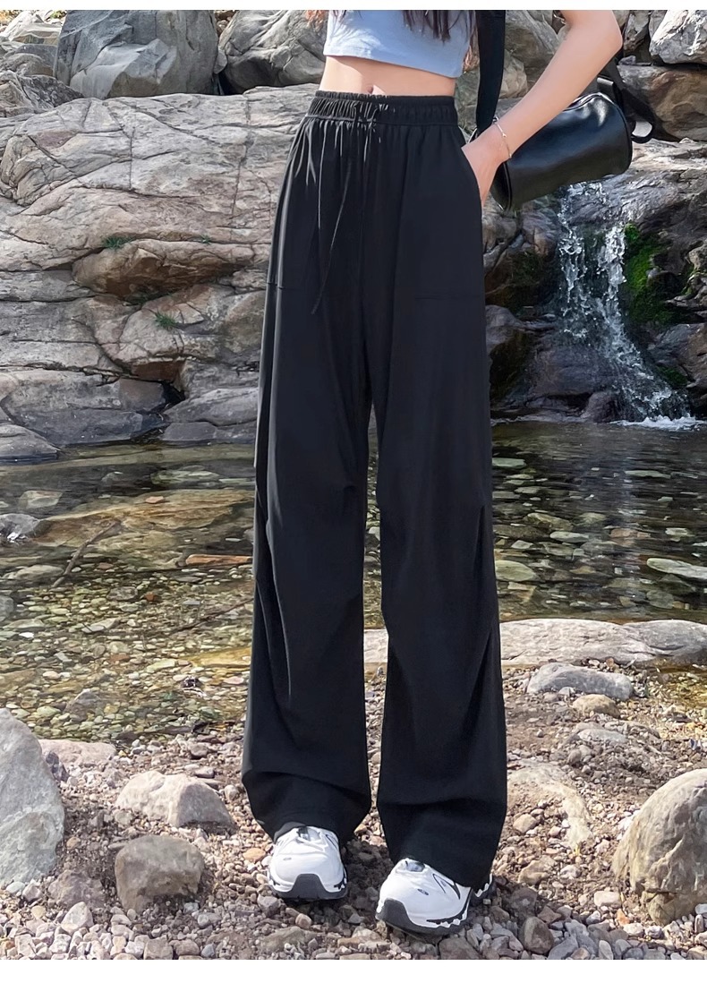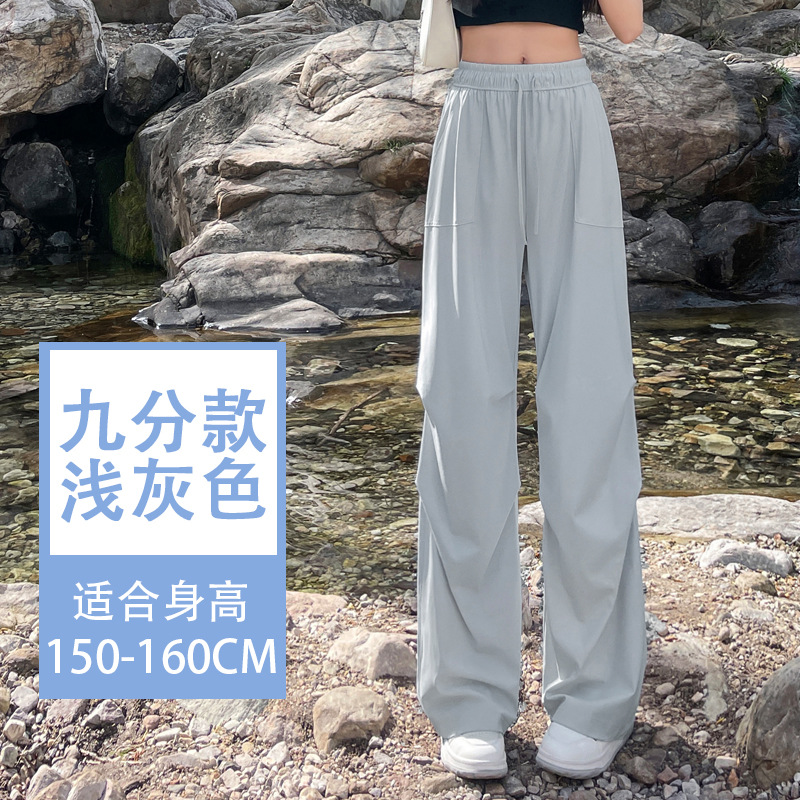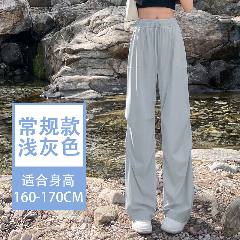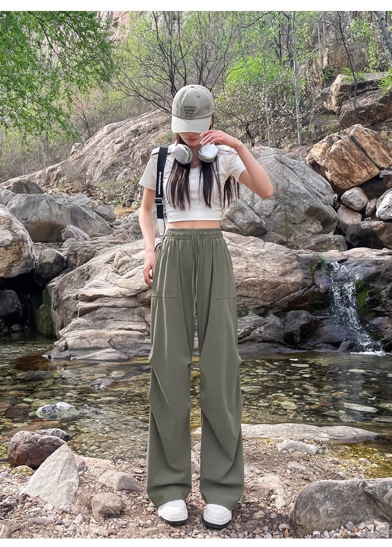 아이스 실크 스포츠 바지 여성 여름 얇은 캐주얼 와이드 레그 야외 하이킹 등산 바지 빠른 건조 파라슈트 작업복