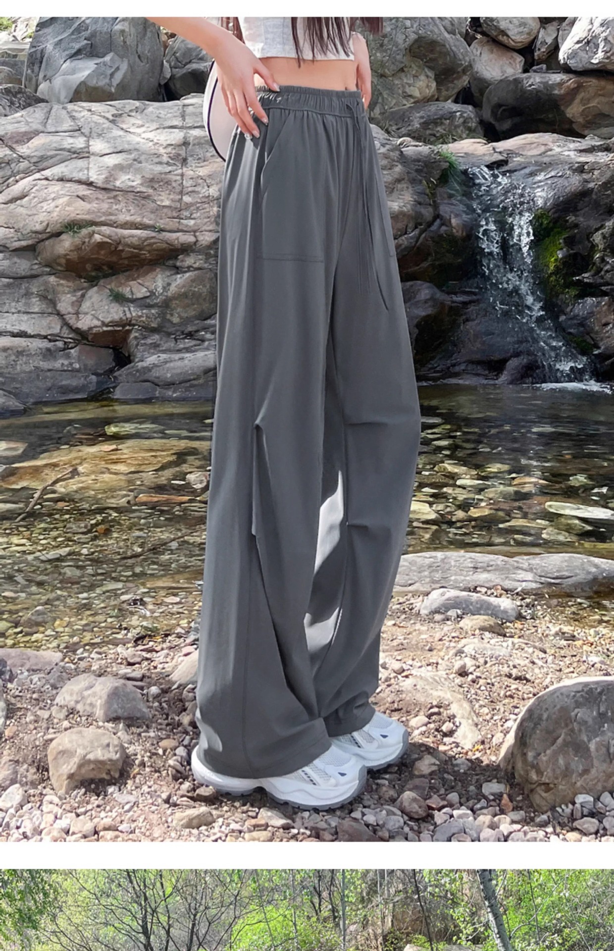 아이스 실크 스포츠 바지 여성 여름 얇은 캐주얼 와이드 레그 야외 하이킹 등산 바지 빠른 건조 파라슈트 작업복스토어 가기