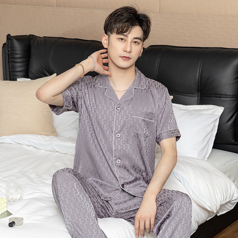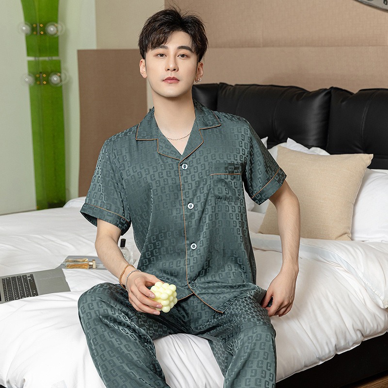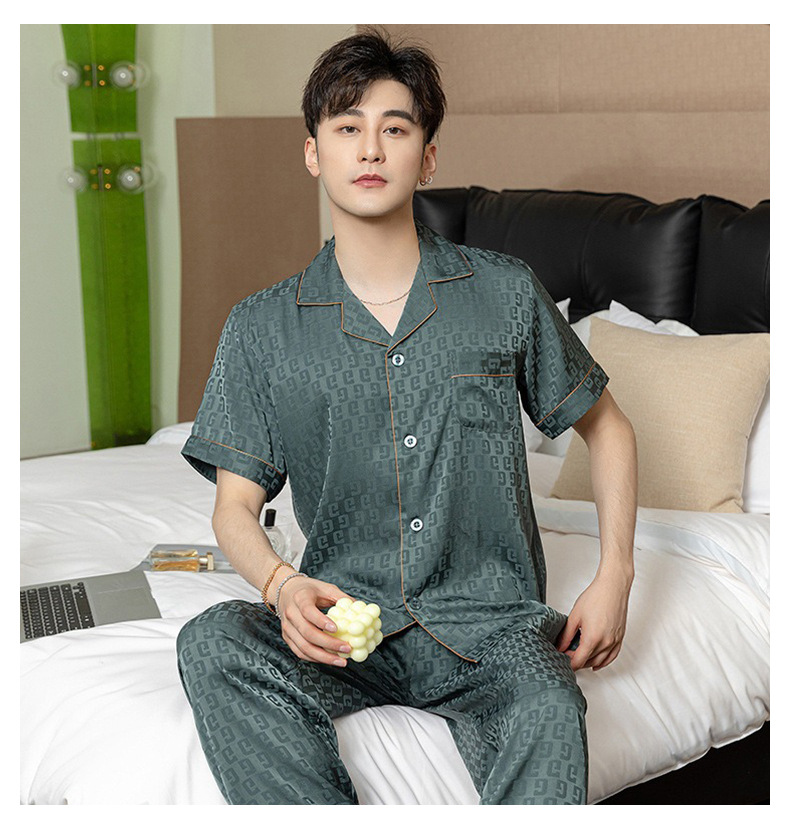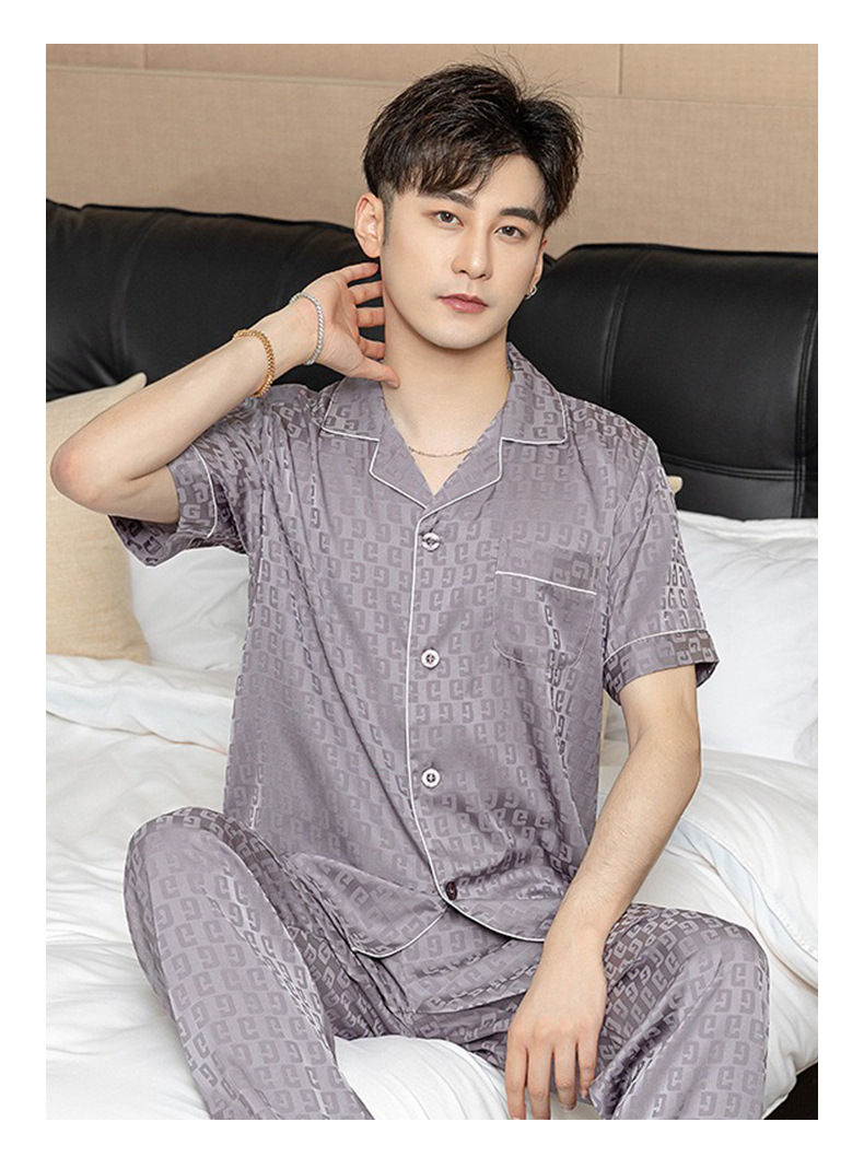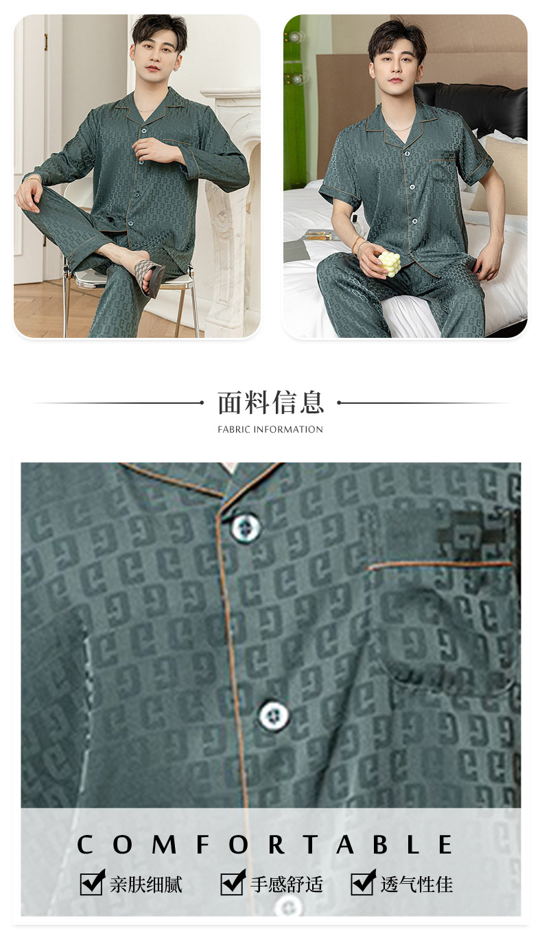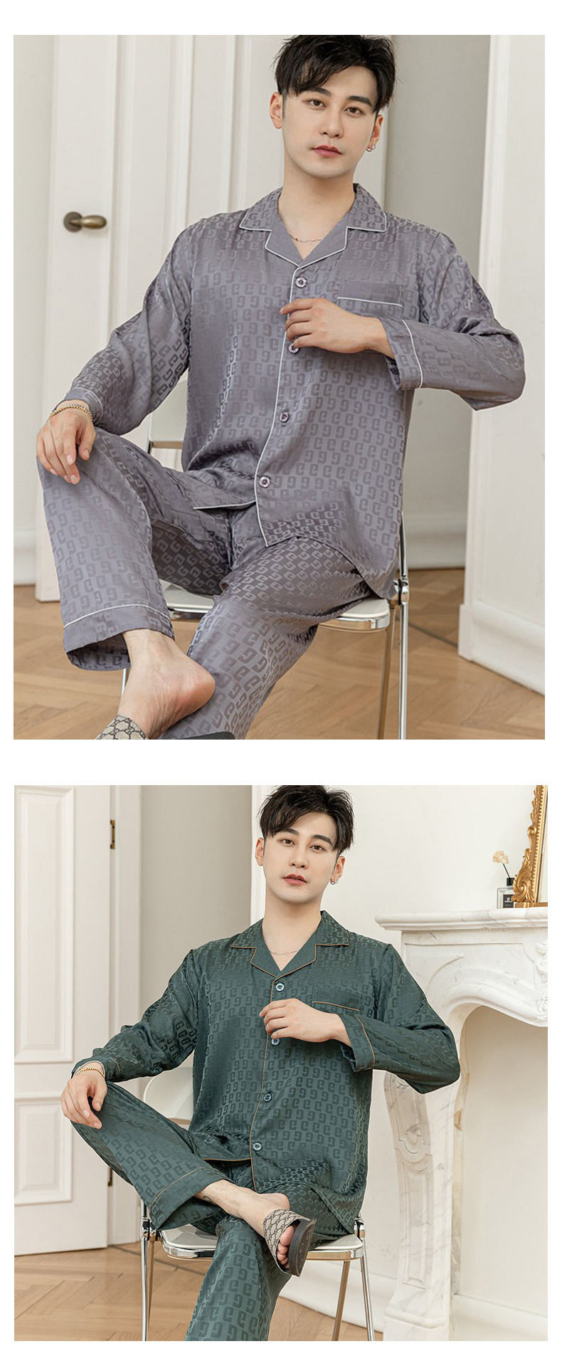 국경을 넘는 패션 신상품 남성용 봄 여름 얇은 긴팔 아이스 실크 모조 실크 홈웨어 세트 도매스토어 가기