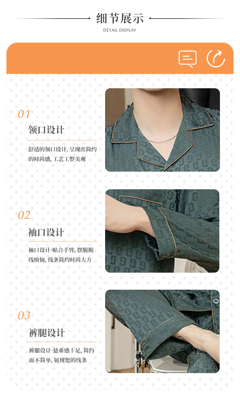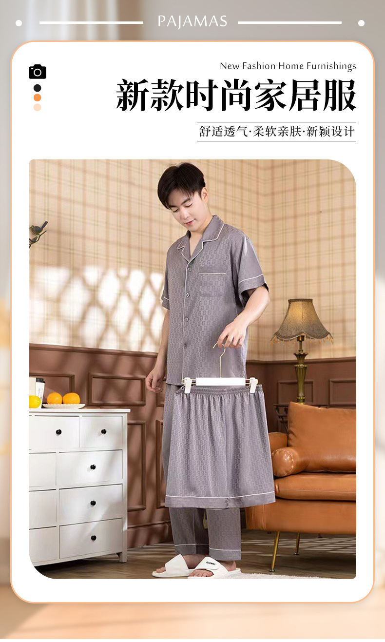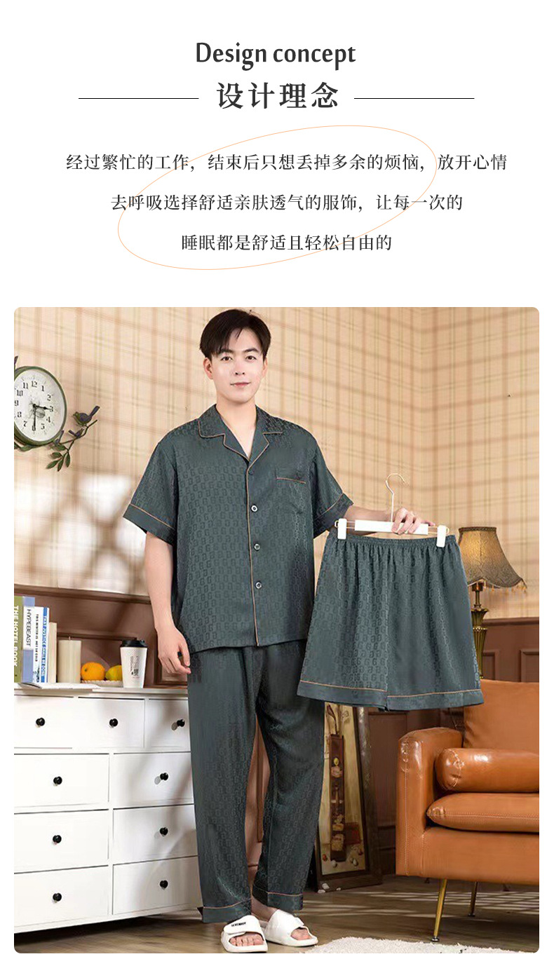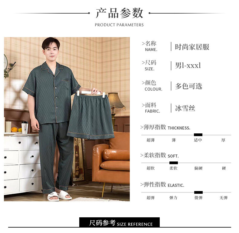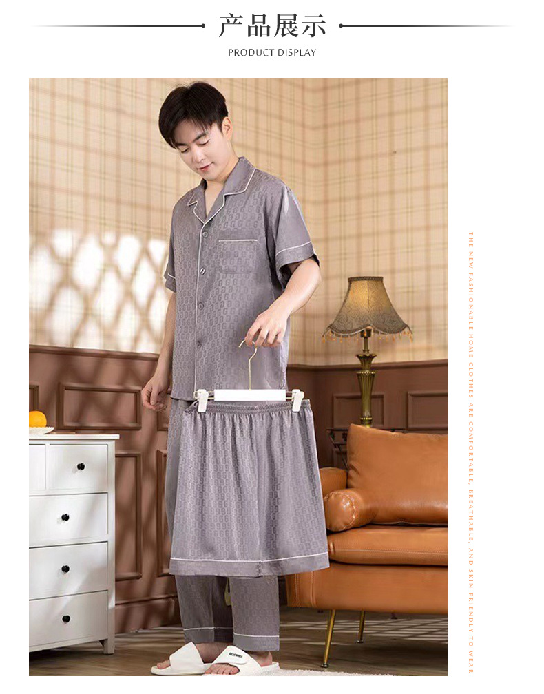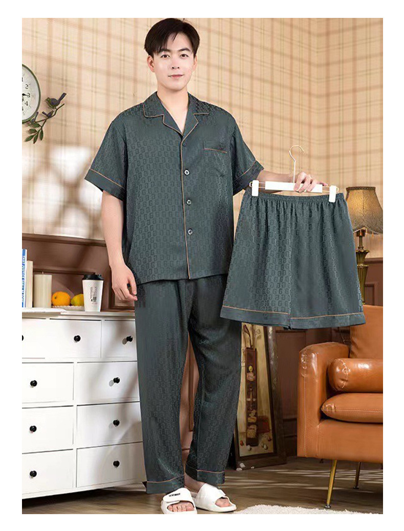 국경을 넘는 패션 신상품 남성용 봄 여름 얇은 긴팔 아이스 실크 모조 실크 홈웨어 세트 도매스토어 가기