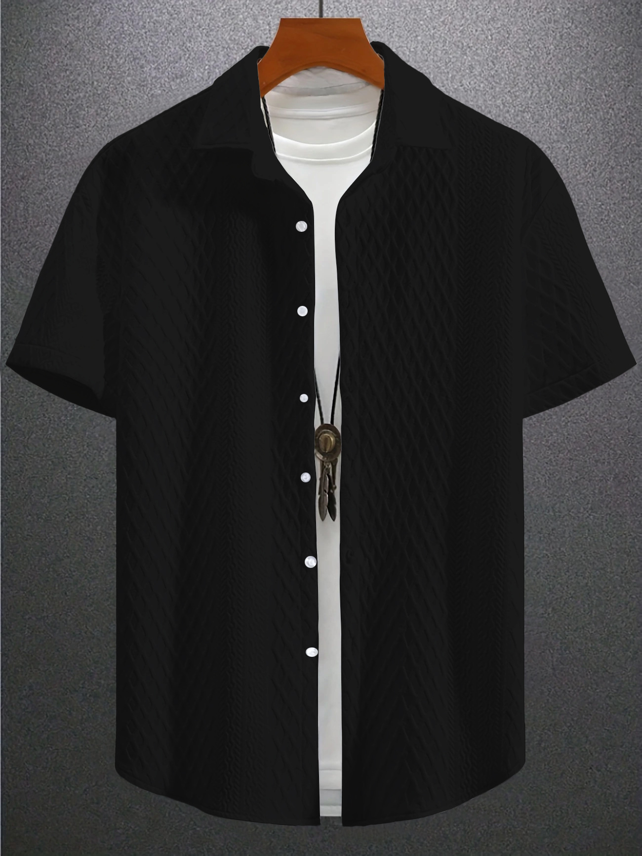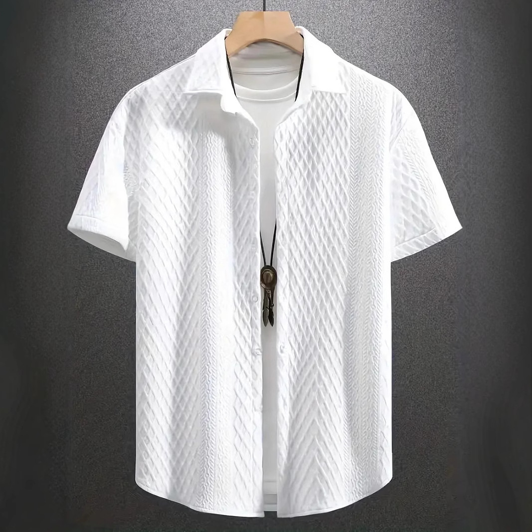 2025 국경 남성 단색 반팔 옷깃 아마존 단색 니트 셔츠 자카드 캐주얼 반팔 셔츠스토어 가기