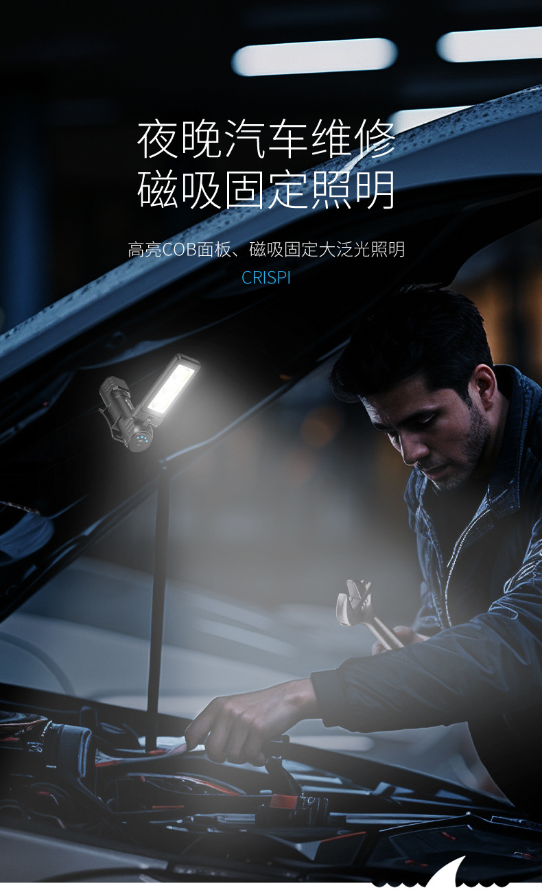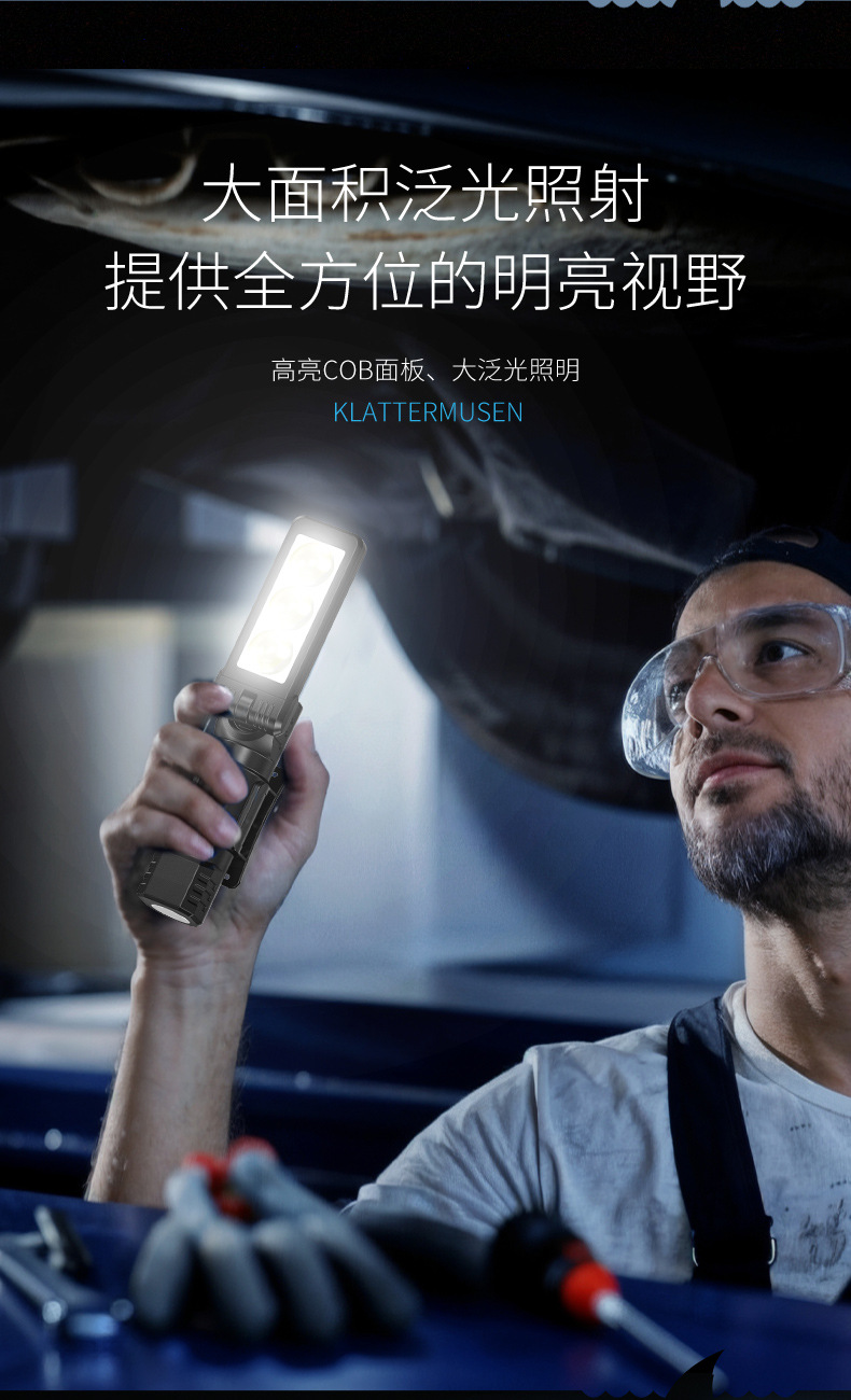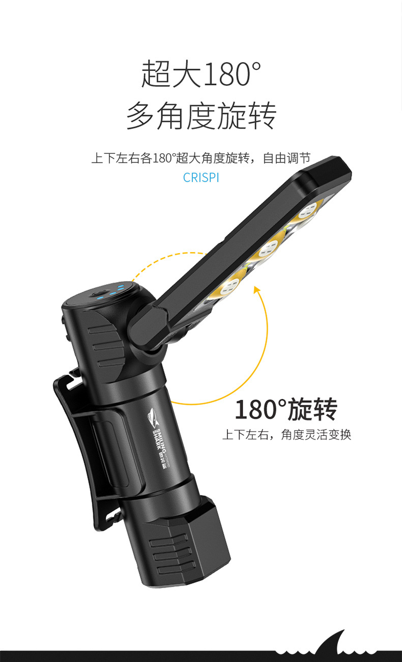다기능 접이식 다각도 작업 수리 램프, 자석 부착 이중 색상 광원, 헤드램프, 야외용 미니 손전등