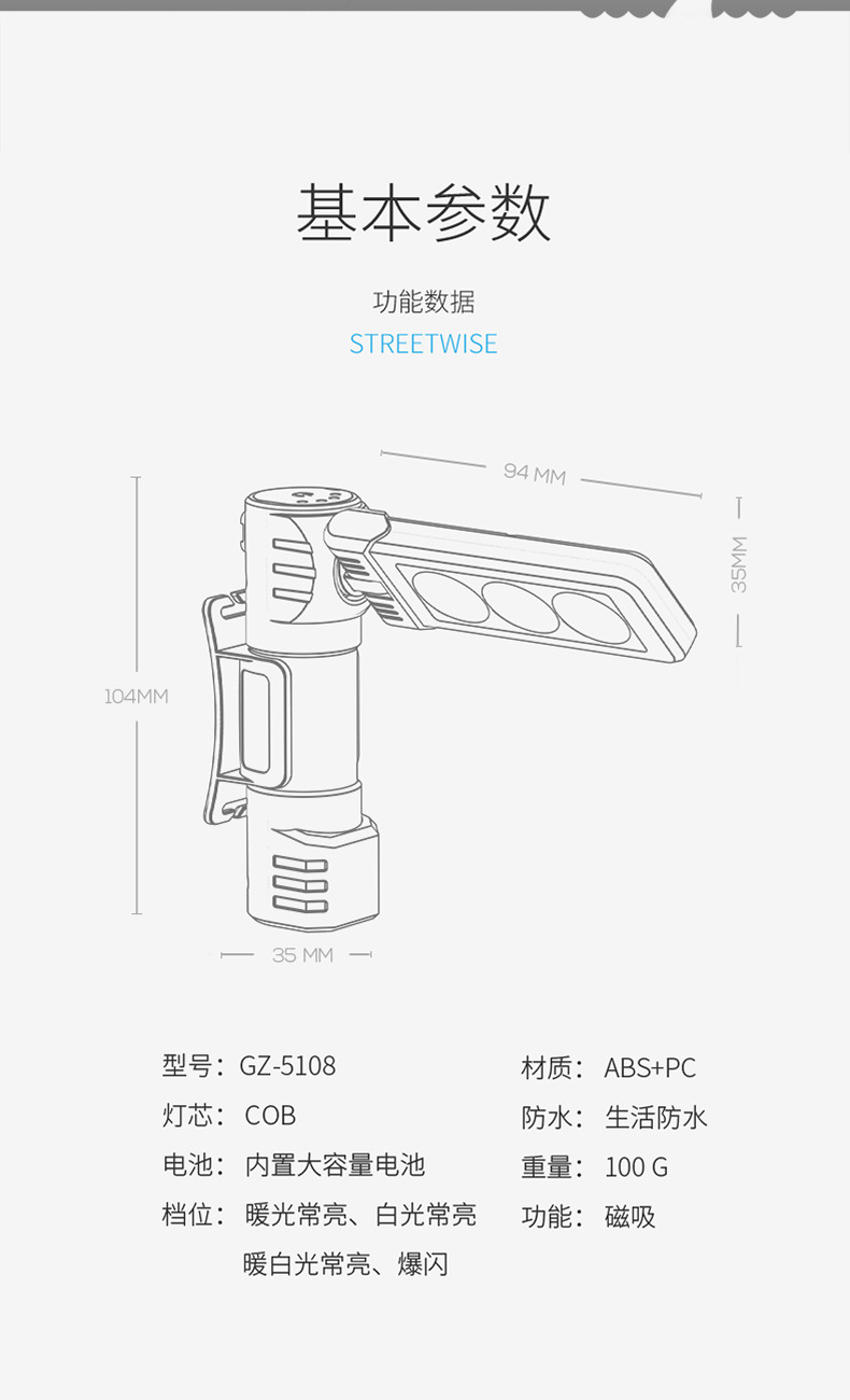 • GZ-5108A 접이식 겸용 작업등 [내장 배터리 1200MAH]