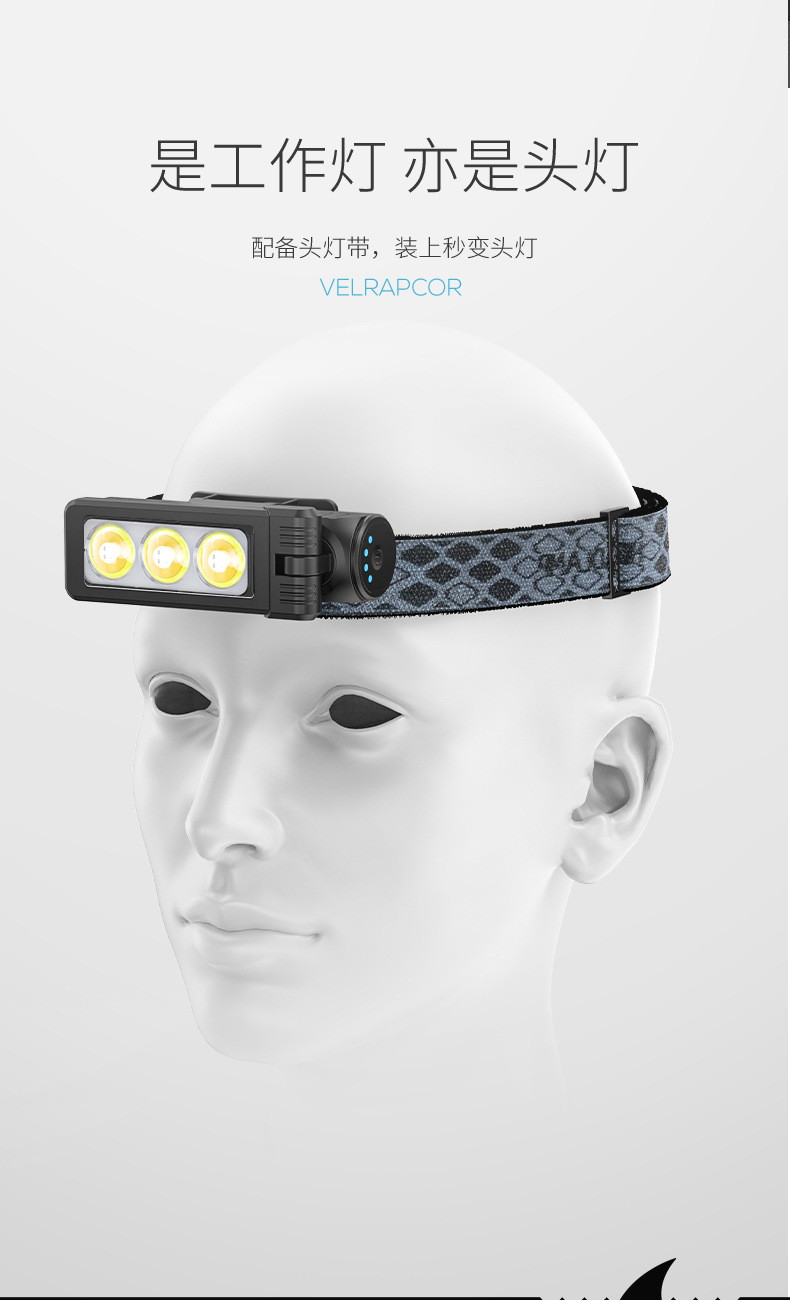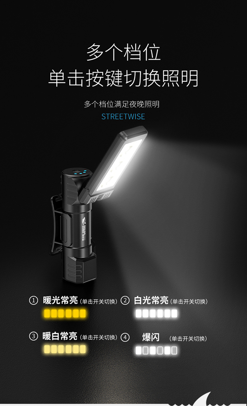 다기능 접이식 다각도 작업 수리 램프, 자석 부착 이중 색상 광원, 헤드램프, 야외용 미니 손전등스토어 가기