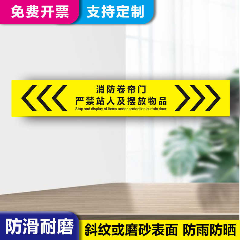 화재 표지판 스티커는 방화 롤링 셔터 문 아래에서 사람이 서거나 물건을 쌓는 것은 금지되어 있습니다. 능직무광택 바닥 스티커 경고 표시스토어 가기
