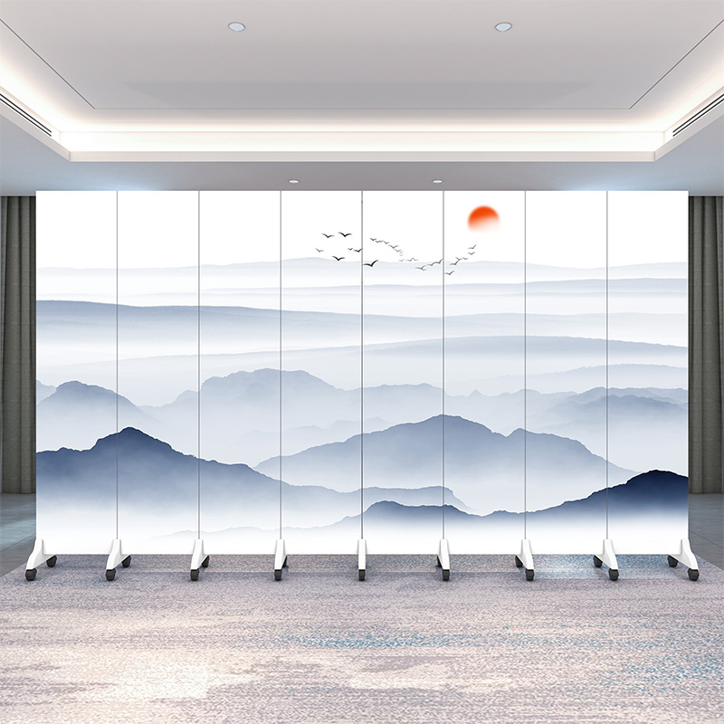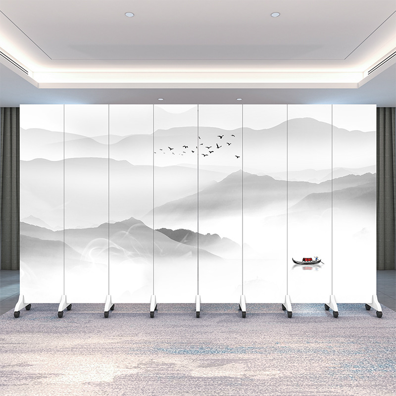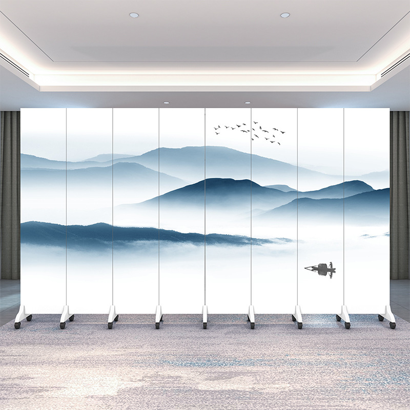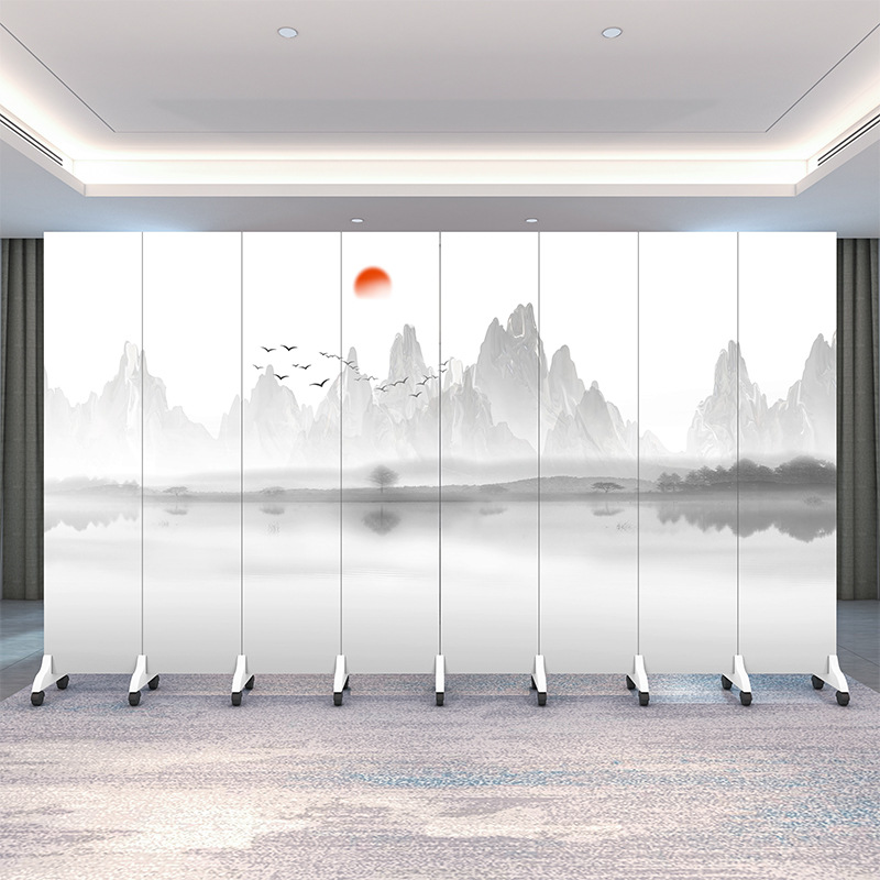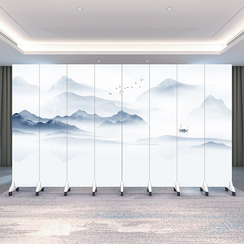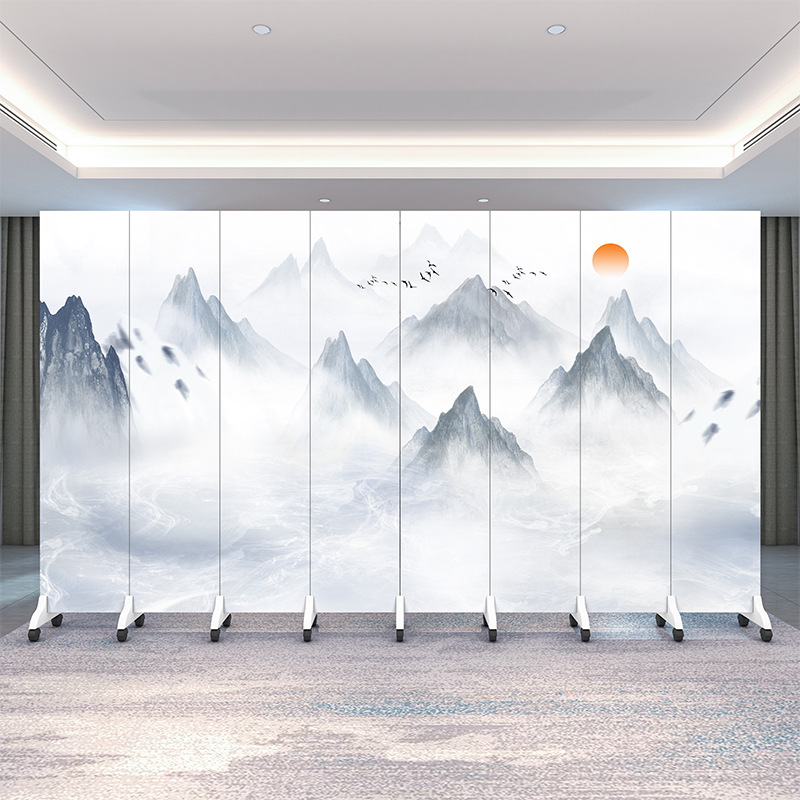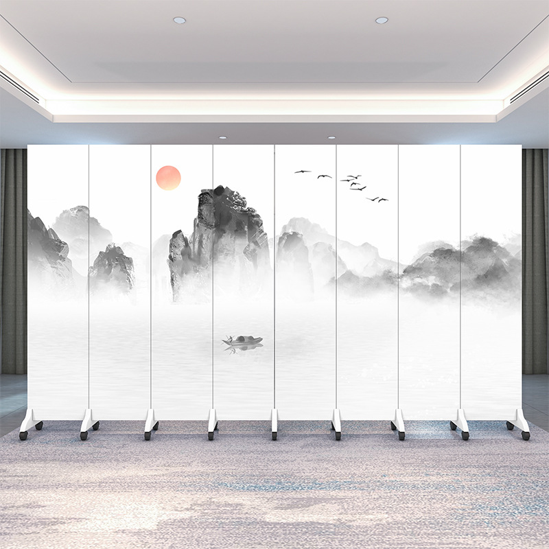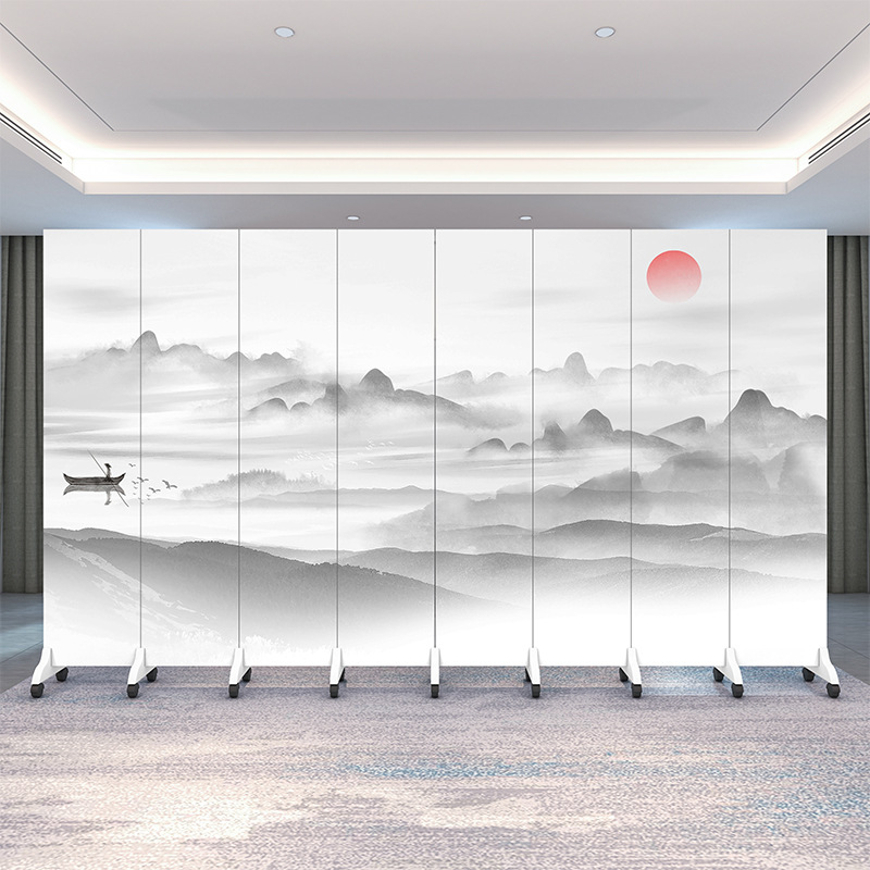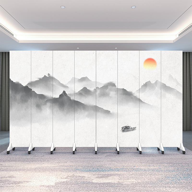 중국 스타일 파티션 스크린 모바일 오피스 입구 차단 홈 간단한 수묵화 풍경 스크린 파티션 거실