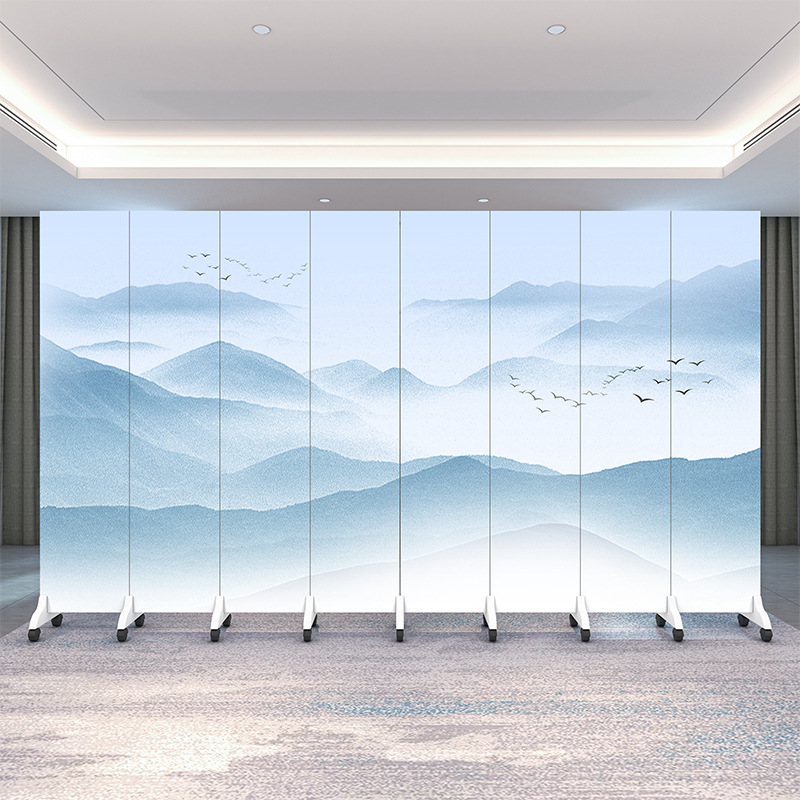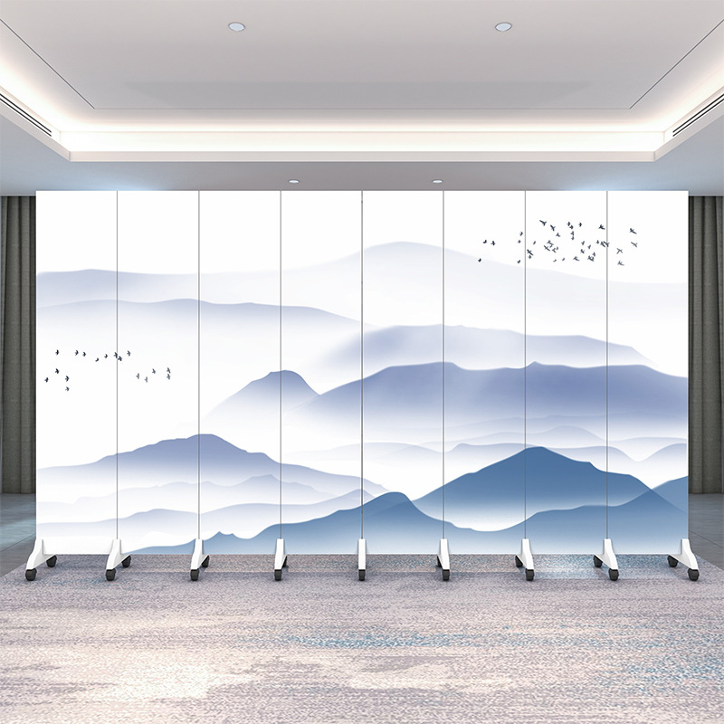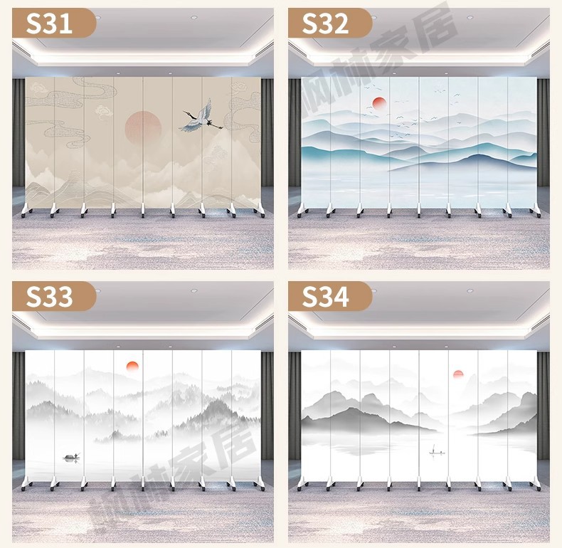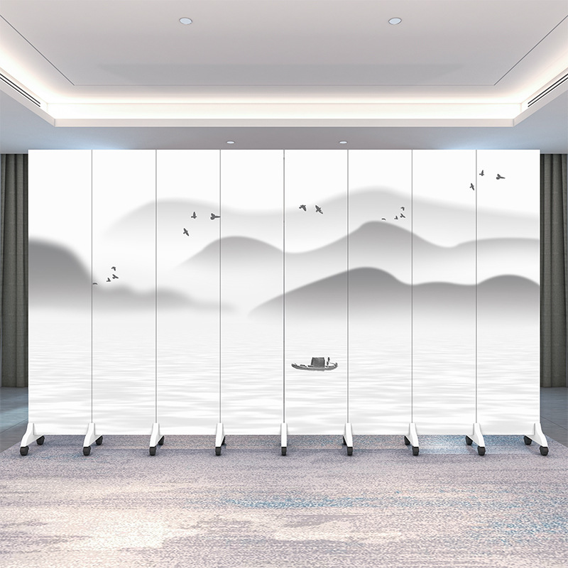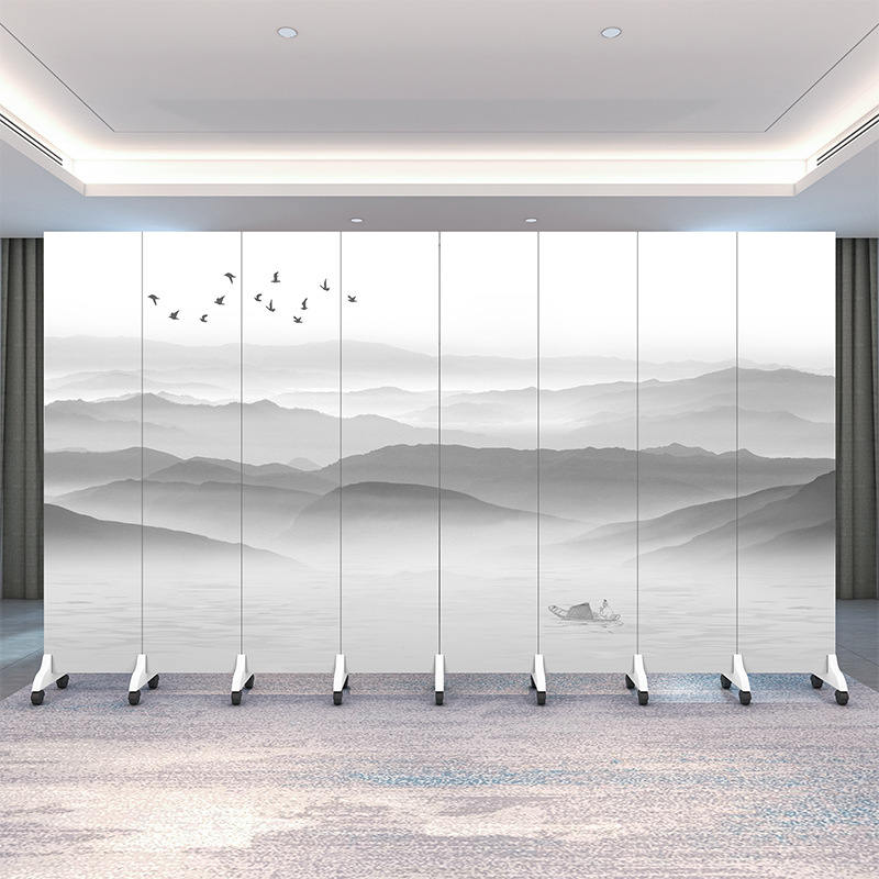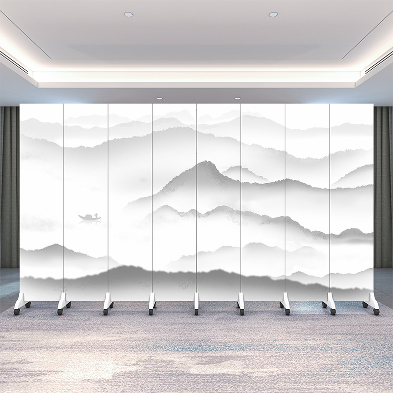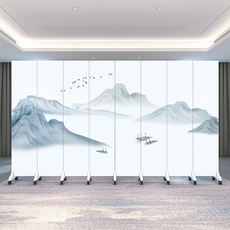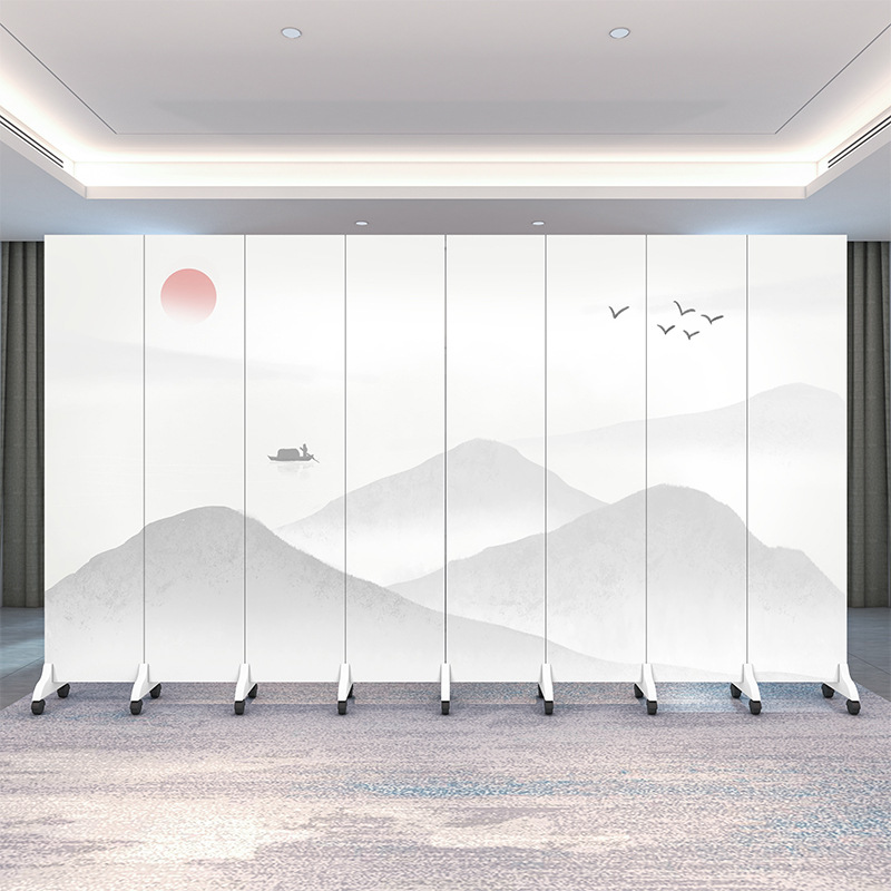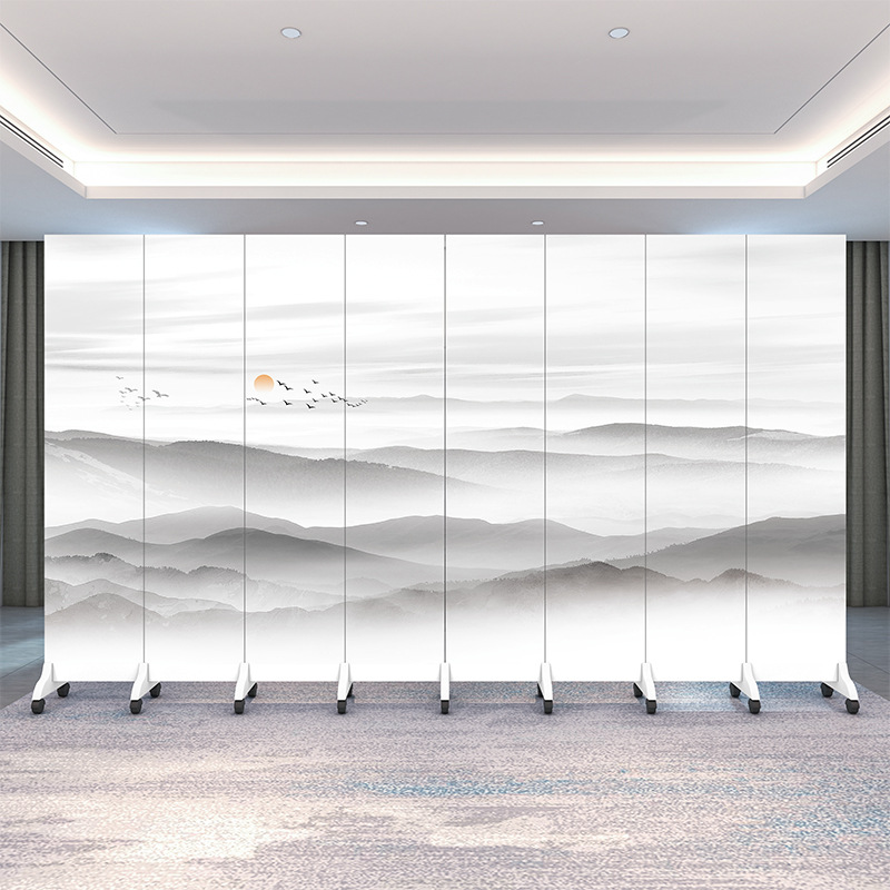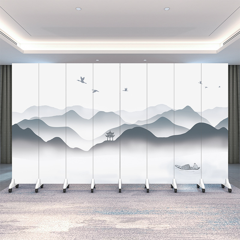 중국 스타일 파티션 스크린 모바일 오피스 입구 차단 홈 간단한 수묵화 풍경 스크린 파티션 거실