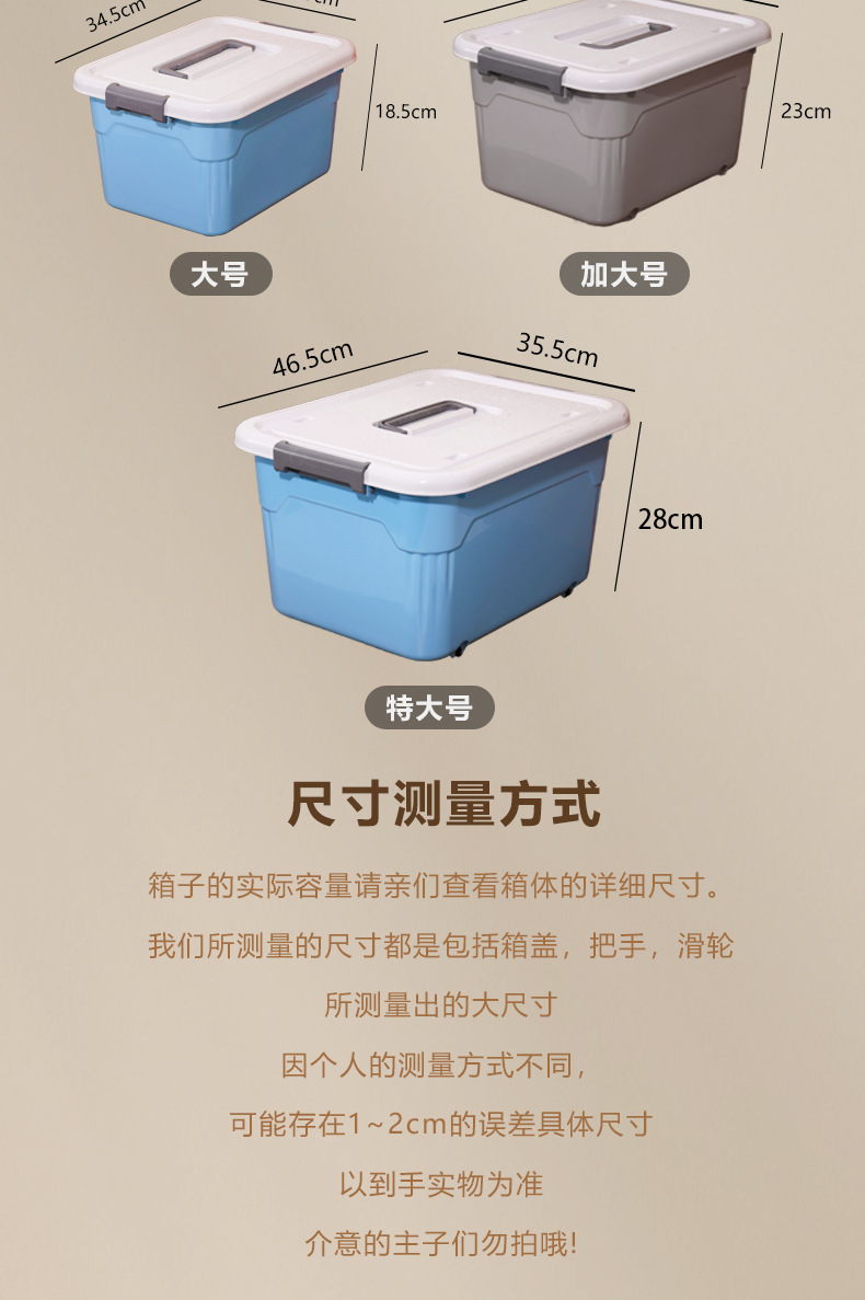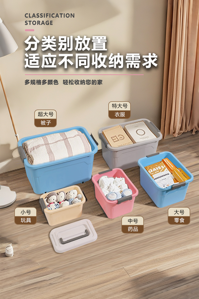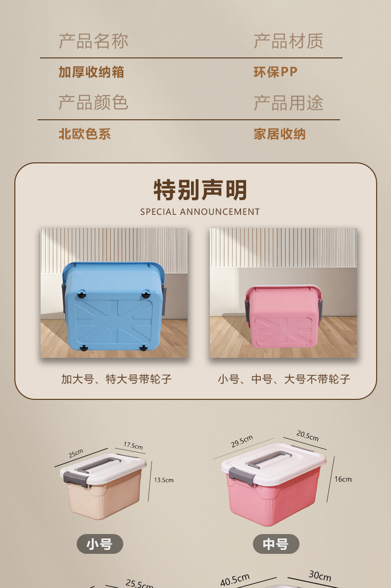 25 새로운 두꺼운 PP 플라스틱 보관 상자 도르래 보관 상자 크고 작은 휴대용 의류 보관 상자 장난감 보관스토어 가기