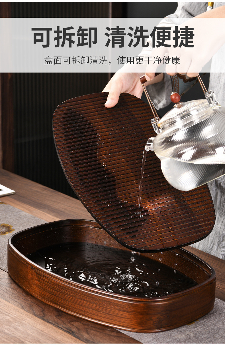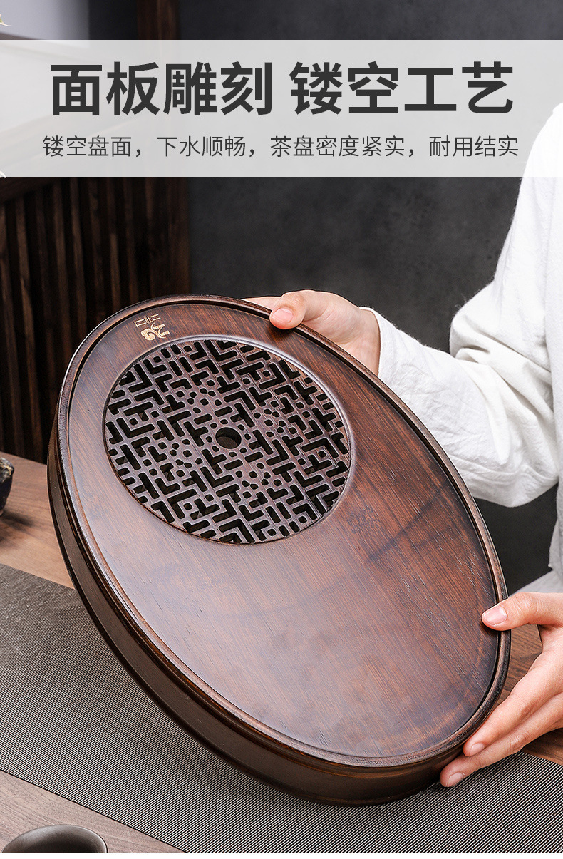 새로운 차 트레이 가정용 작은 차 테이블 대나무 차 트레이 물 저장 건조 버블 트레이 차 세트 타원형 단단한 나무 차 바다 중국 스타일