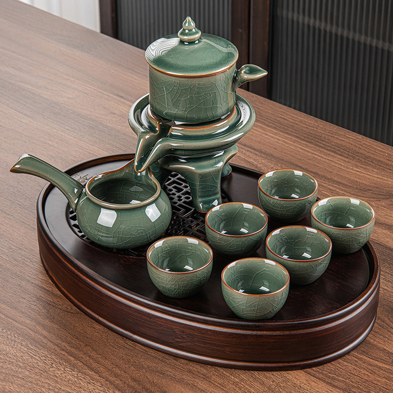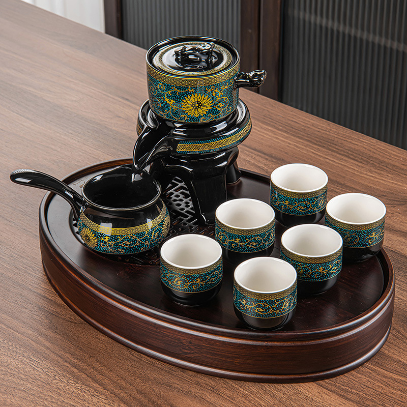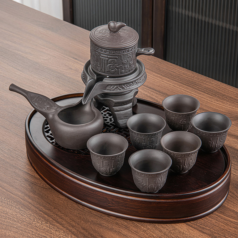 • 쯔샤 나후 자동 6컵 9종 세트 + 호두색 타원형 물통 - 중형