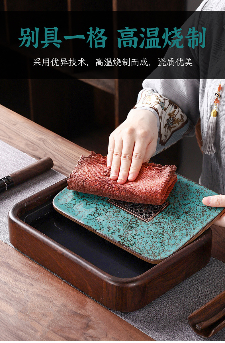 • Changming 중간 직사각형 차 트레이-Qingran(저장 및 배수용 이중 목적)