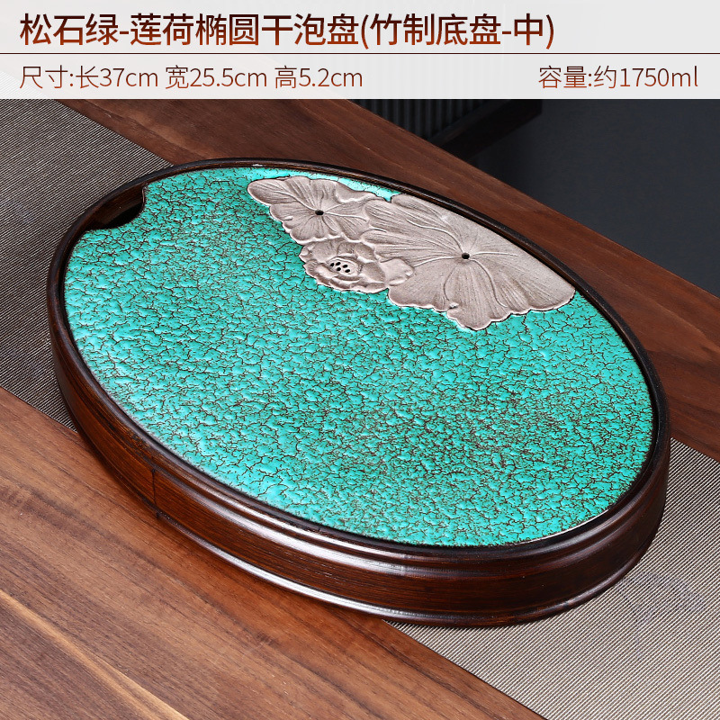 • 청록색 녹색 연꽃 타원형 건식 침지판(대나무 섀시-중형)