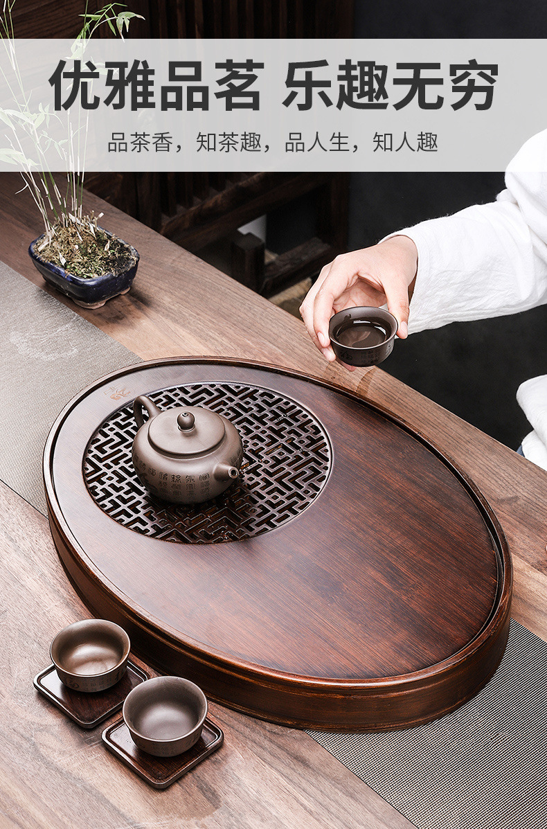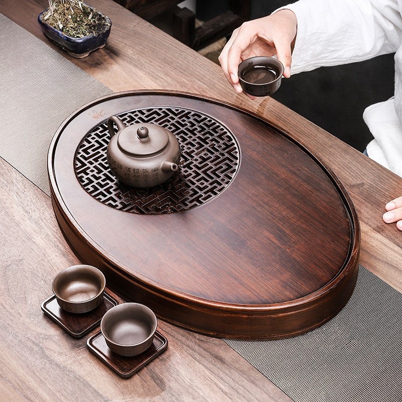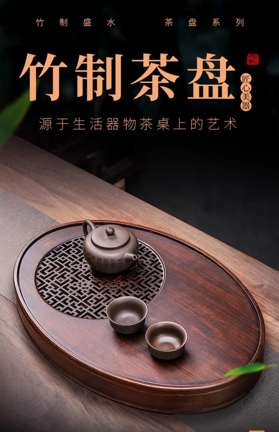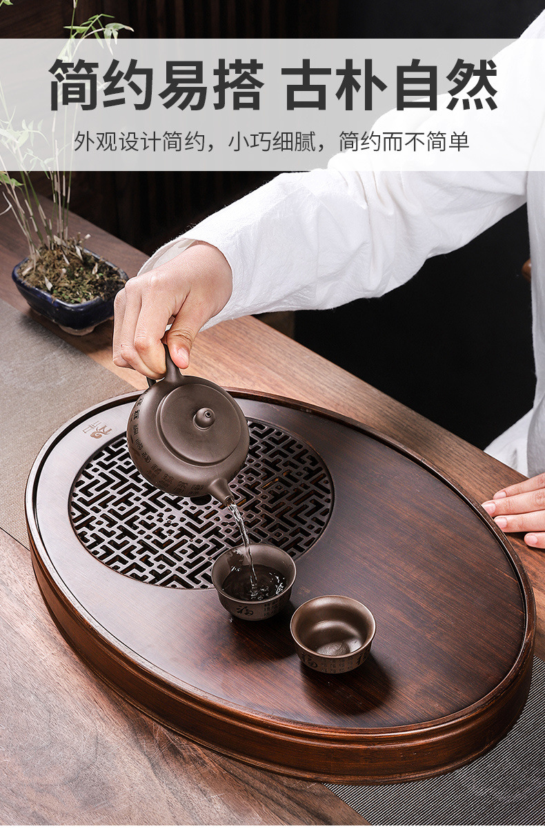 새로운 차 트레이 가정용 작은 차 테이블 대나무 차 트레이 물 저장 건조 버블 트레이 차 세트 타원형 단단한 나무 차 바다 중국 스타일스토어 가기