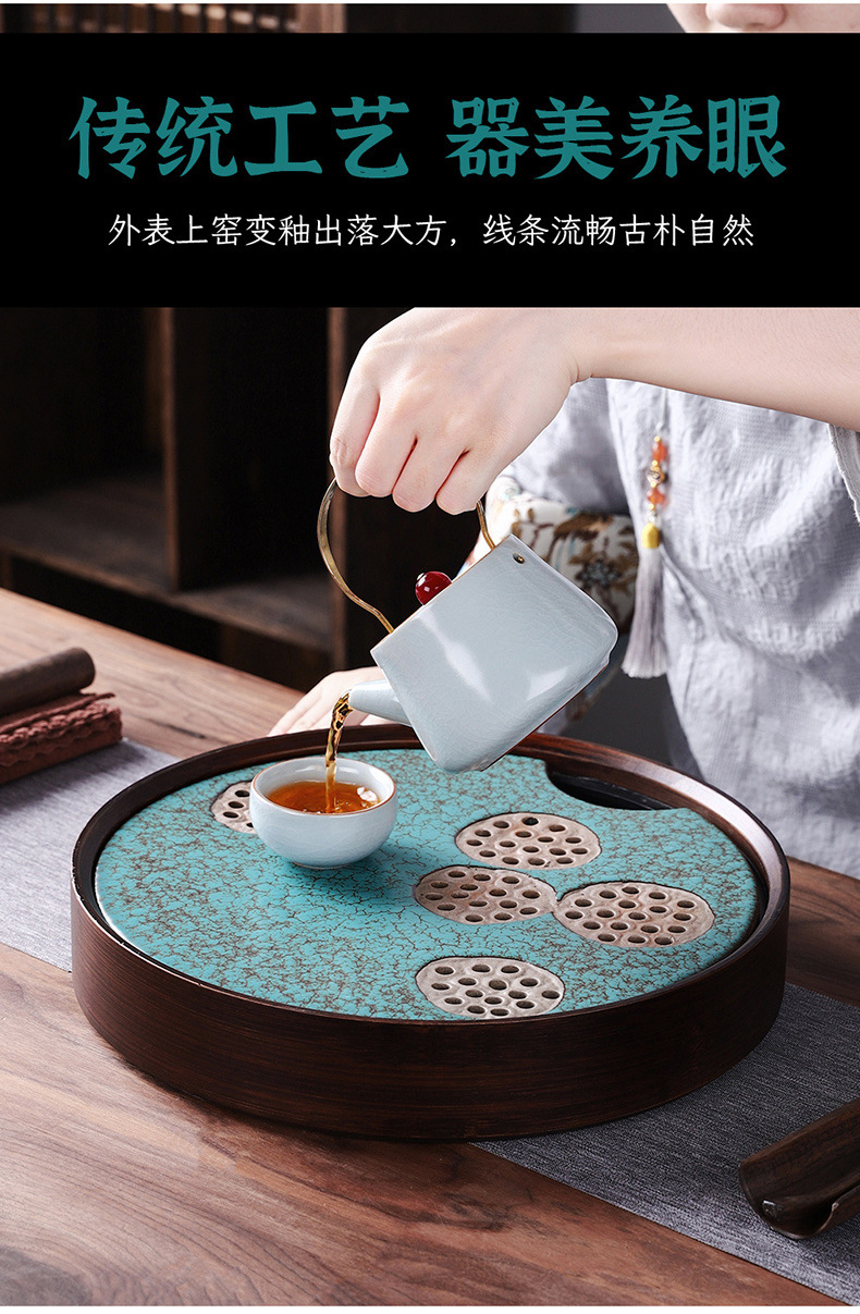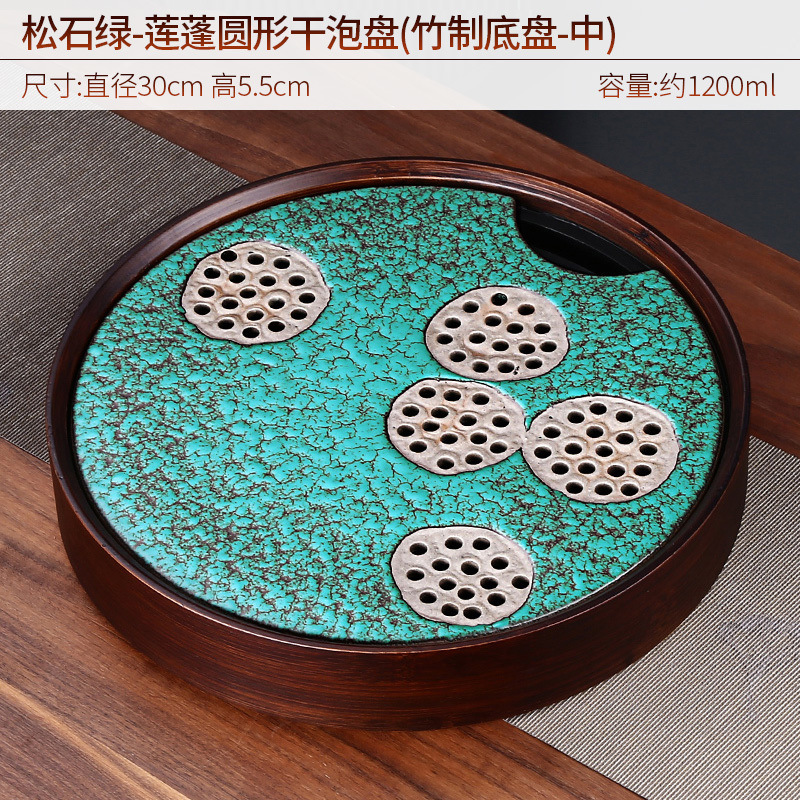 • 청록색 녹색 연꽃 원형 건식 침지 트레이(대나무 섀시-중간)