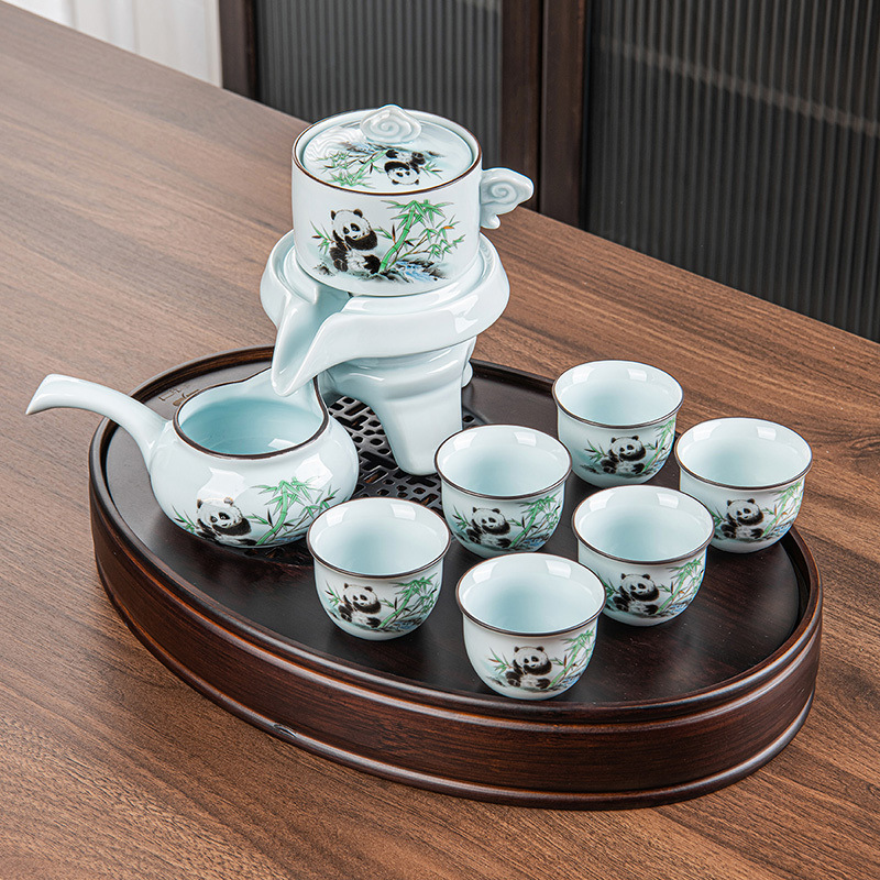 • 청자 팬더 자동 6컵 9종 세트 + 호두색 타원형 물통 - 중형