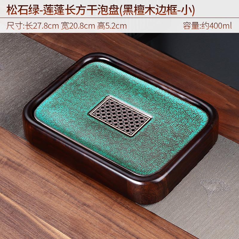 • 청록색 녹색 연꽃 직사각형 건식 트레이(흑단 테두리-소형)