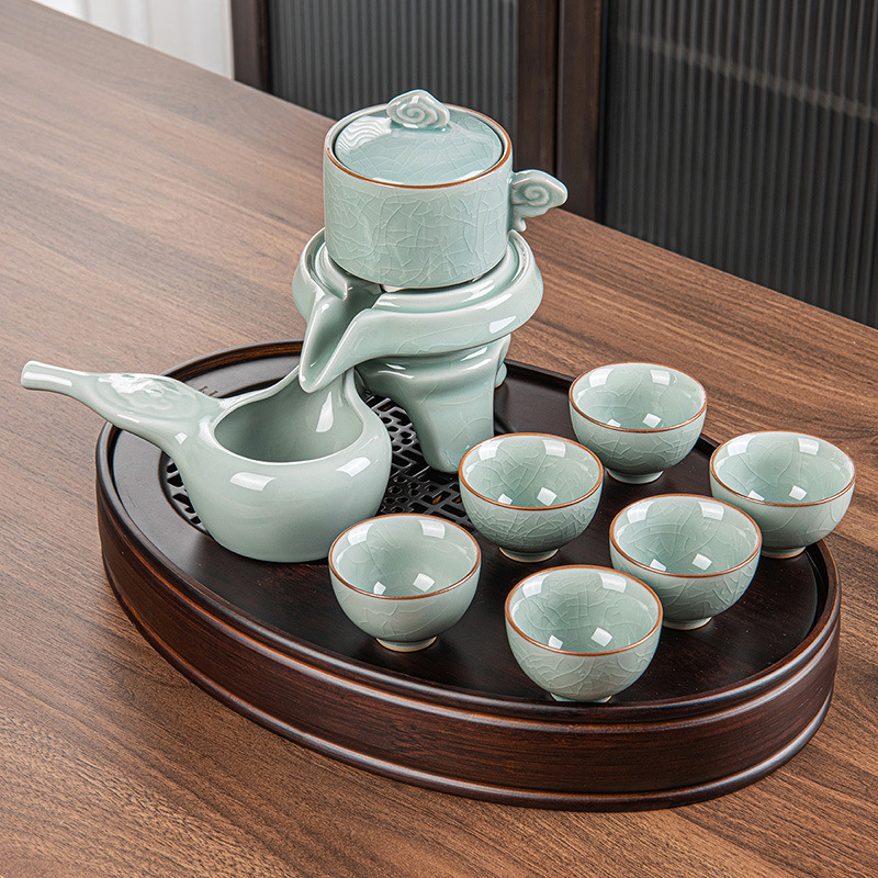 • 청자 자동 6컵 9종 세트 + 호두색 타원형 물통 - 중형
