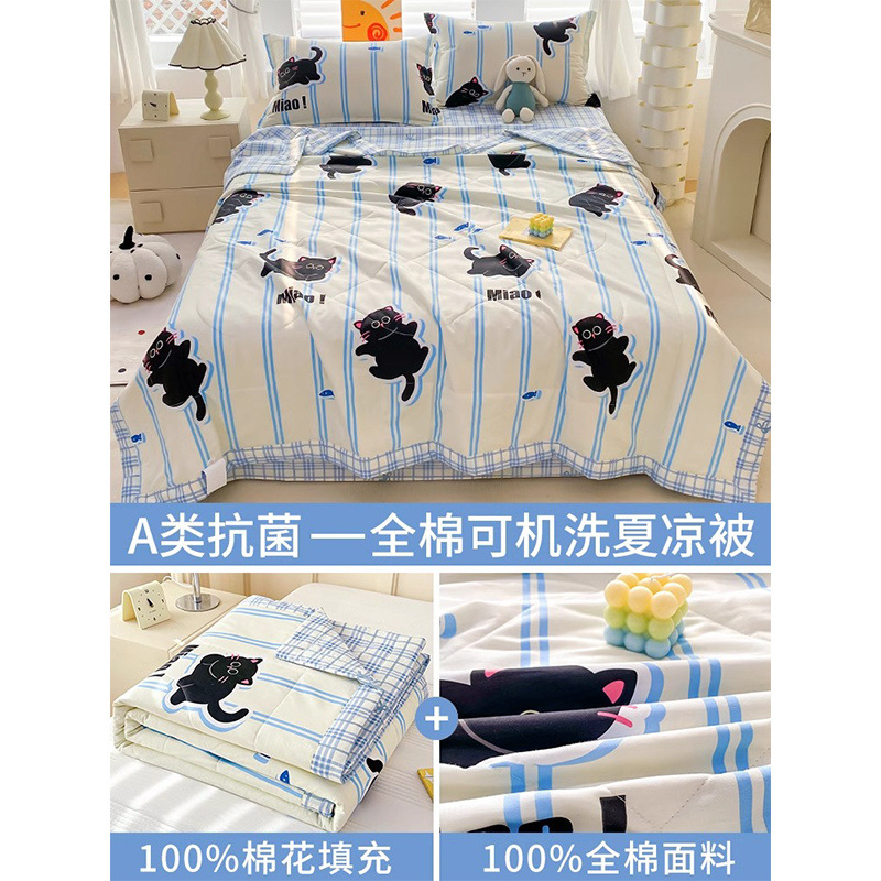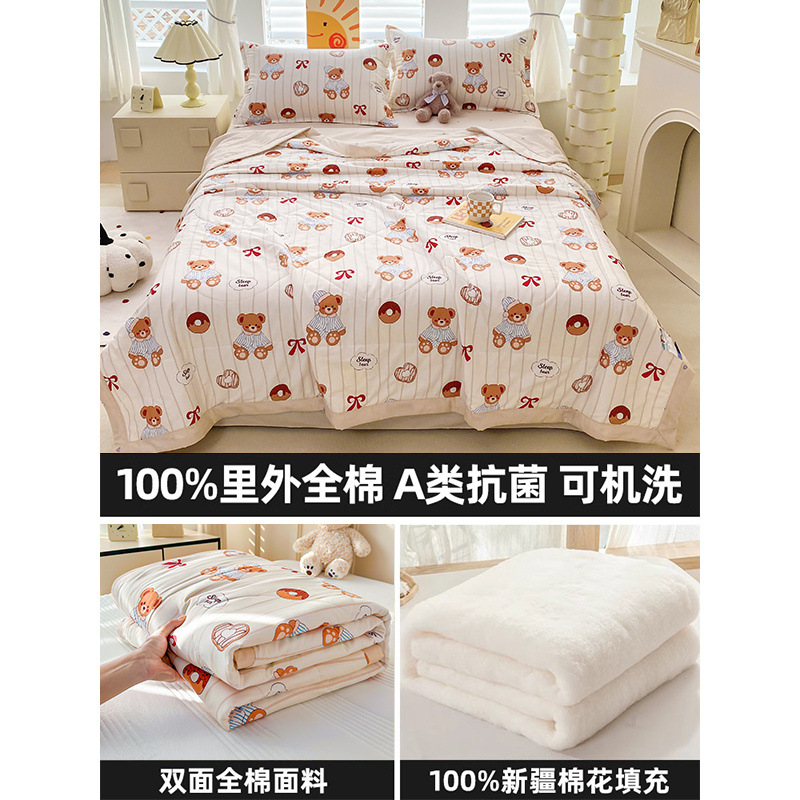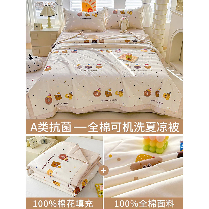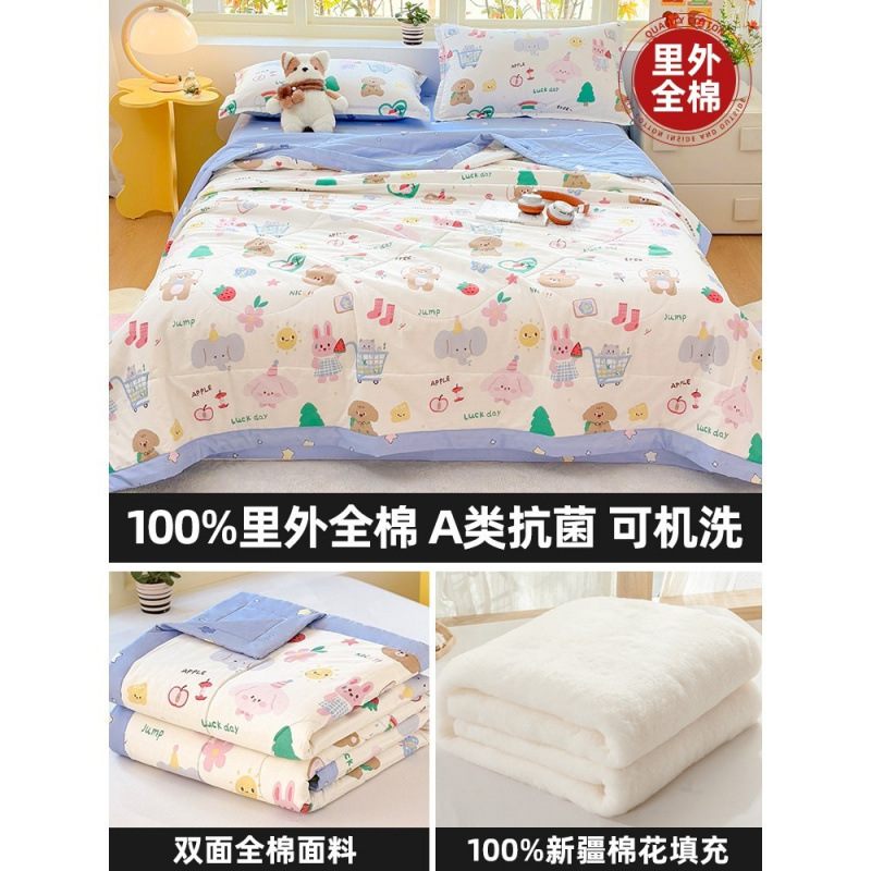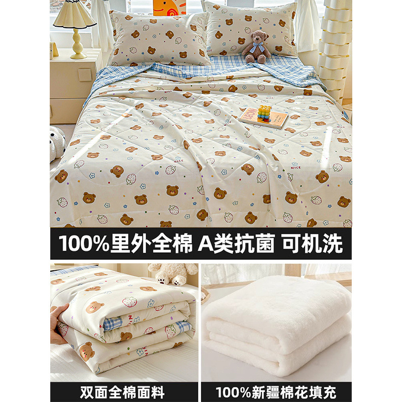 순면 여름 이불 에어컨 이불 순면 신장 순면 여름 이불 기계 세탁 가능한 어린이 봄, 가을, 여름 얇은 이불