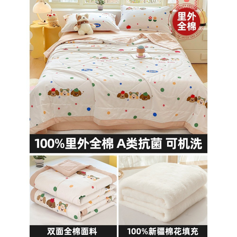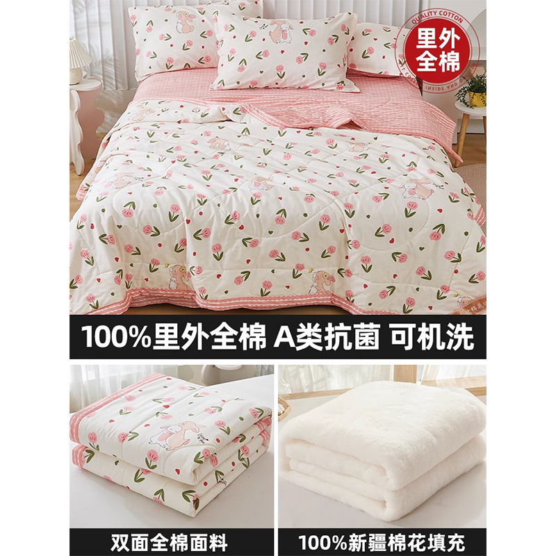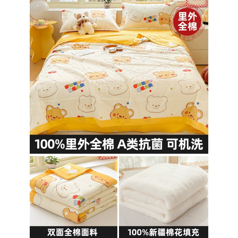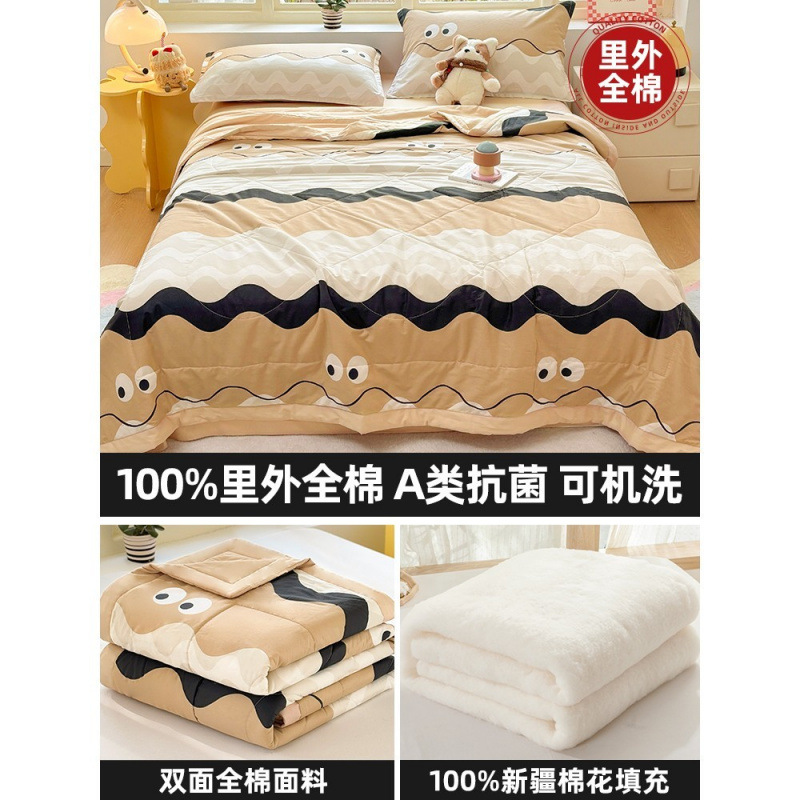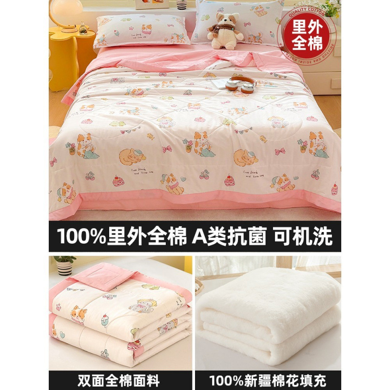 순면 여름 이불 에어컨 이불 순면 신장 순면 여름 이불 기계 세탁 가능한 어린이 봄, 가을, 여름 얇은 이불