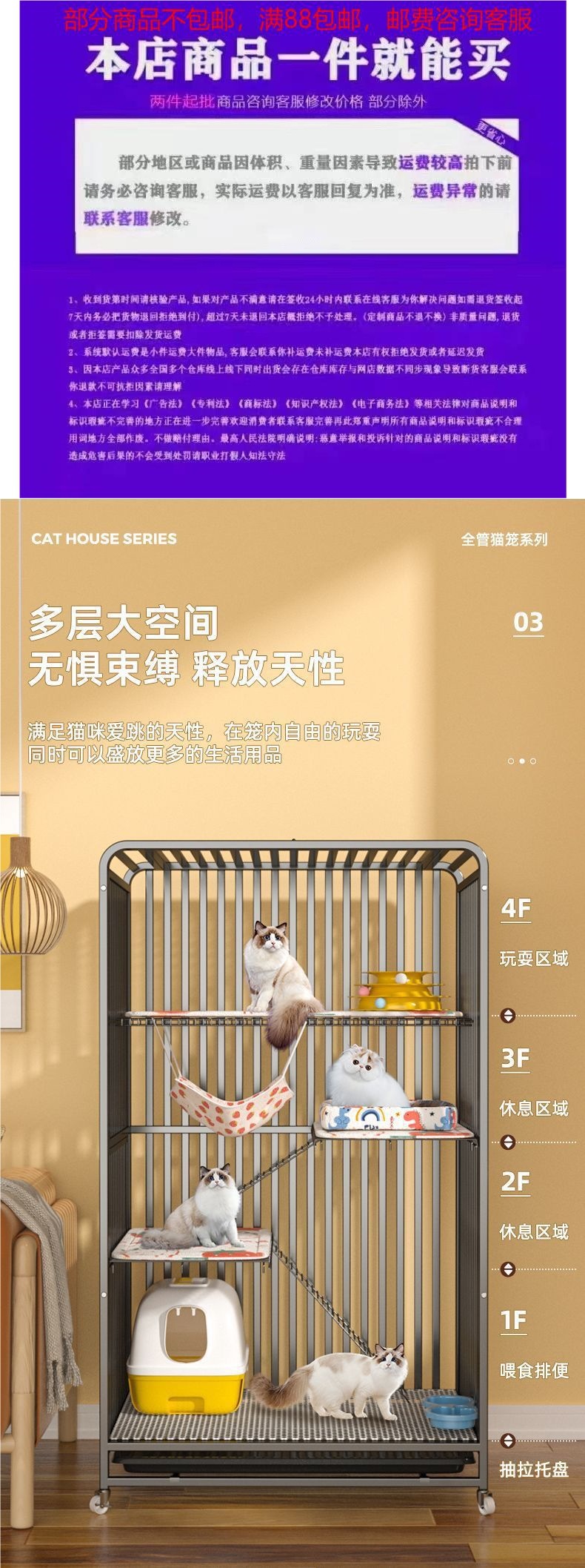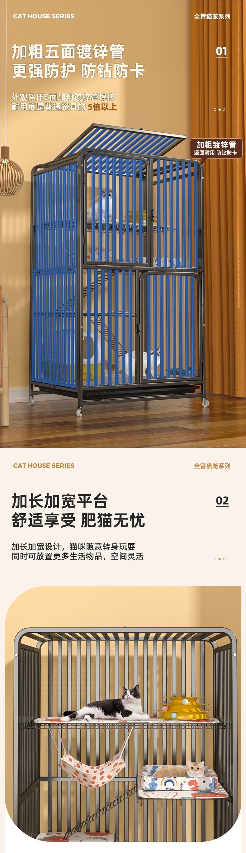 고양이 케이지 가정용 실내 화장실 고양이 빌라 공간 두꺼운 강화 2층 고양이 집 고양이 집 고양이 케이지스토어 가기