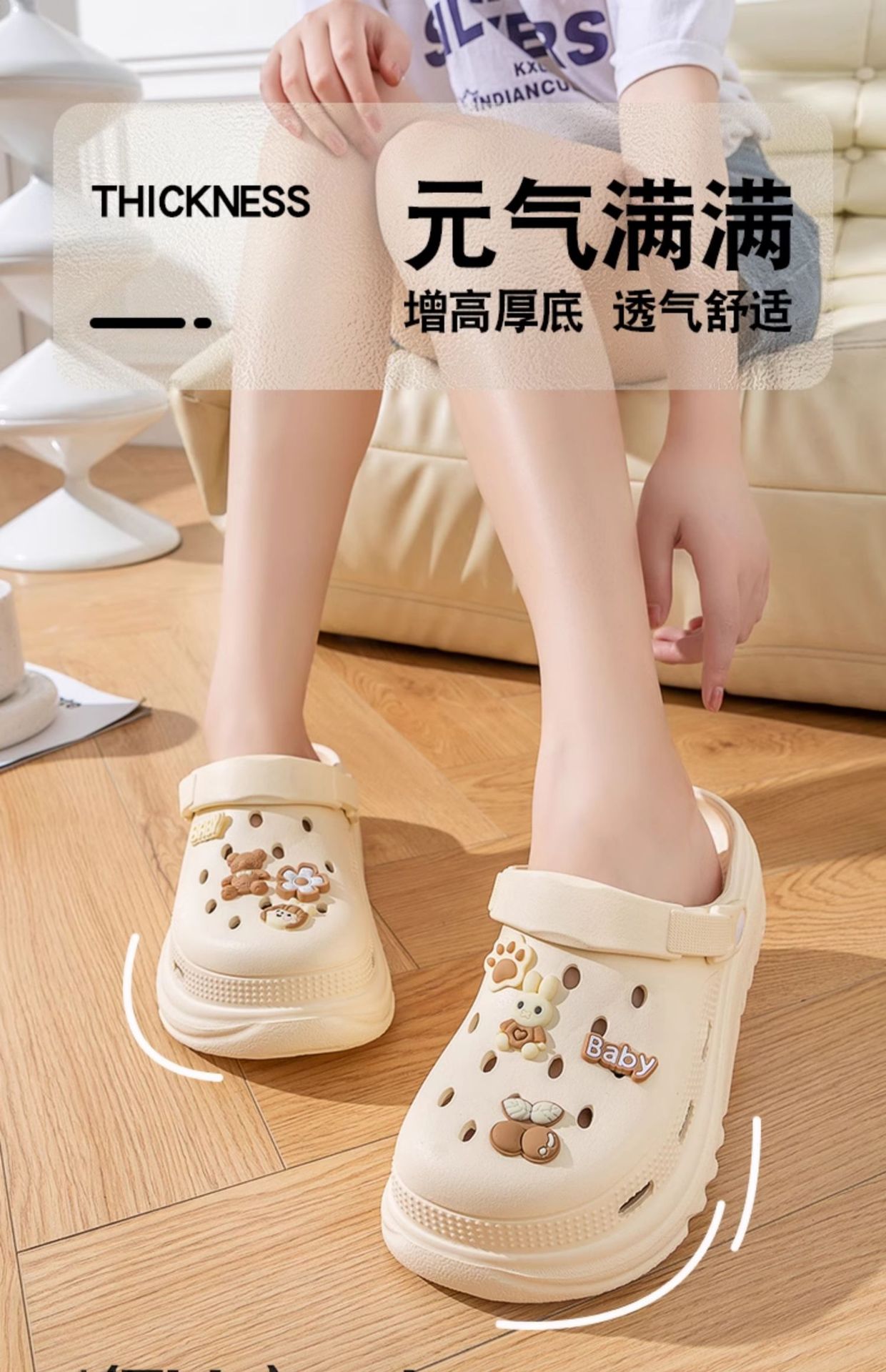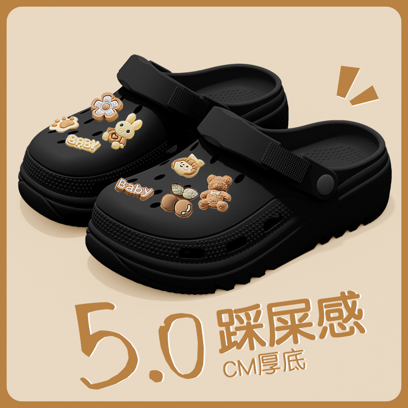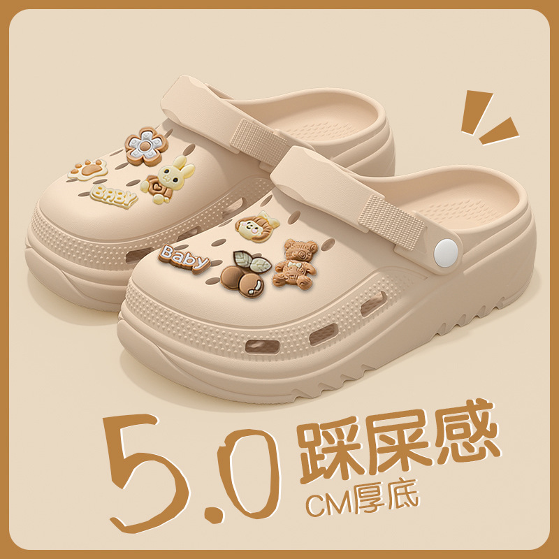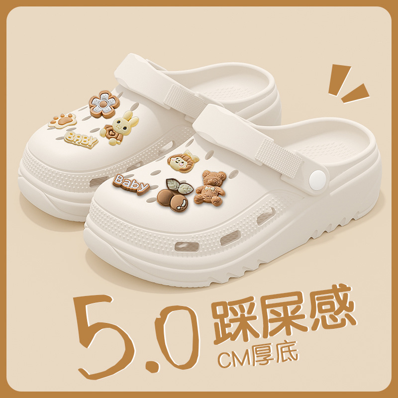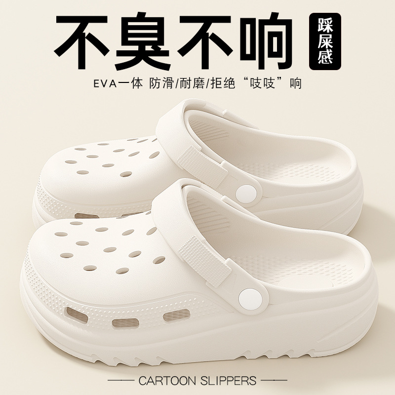여름 아우터웨어 여성용 Croc 신발 2025 새로운 실내 홈 두꺼운 밑창 비치 미끄럼 방지 발가락 반 슬리퍼 여성용스토어 가기