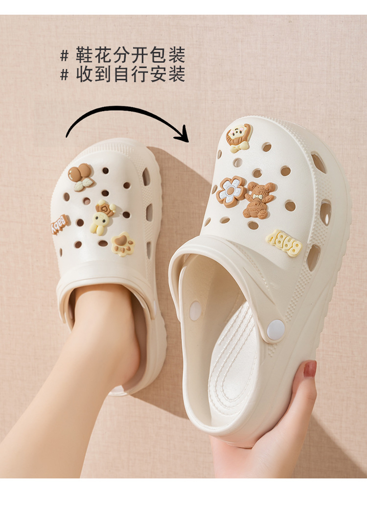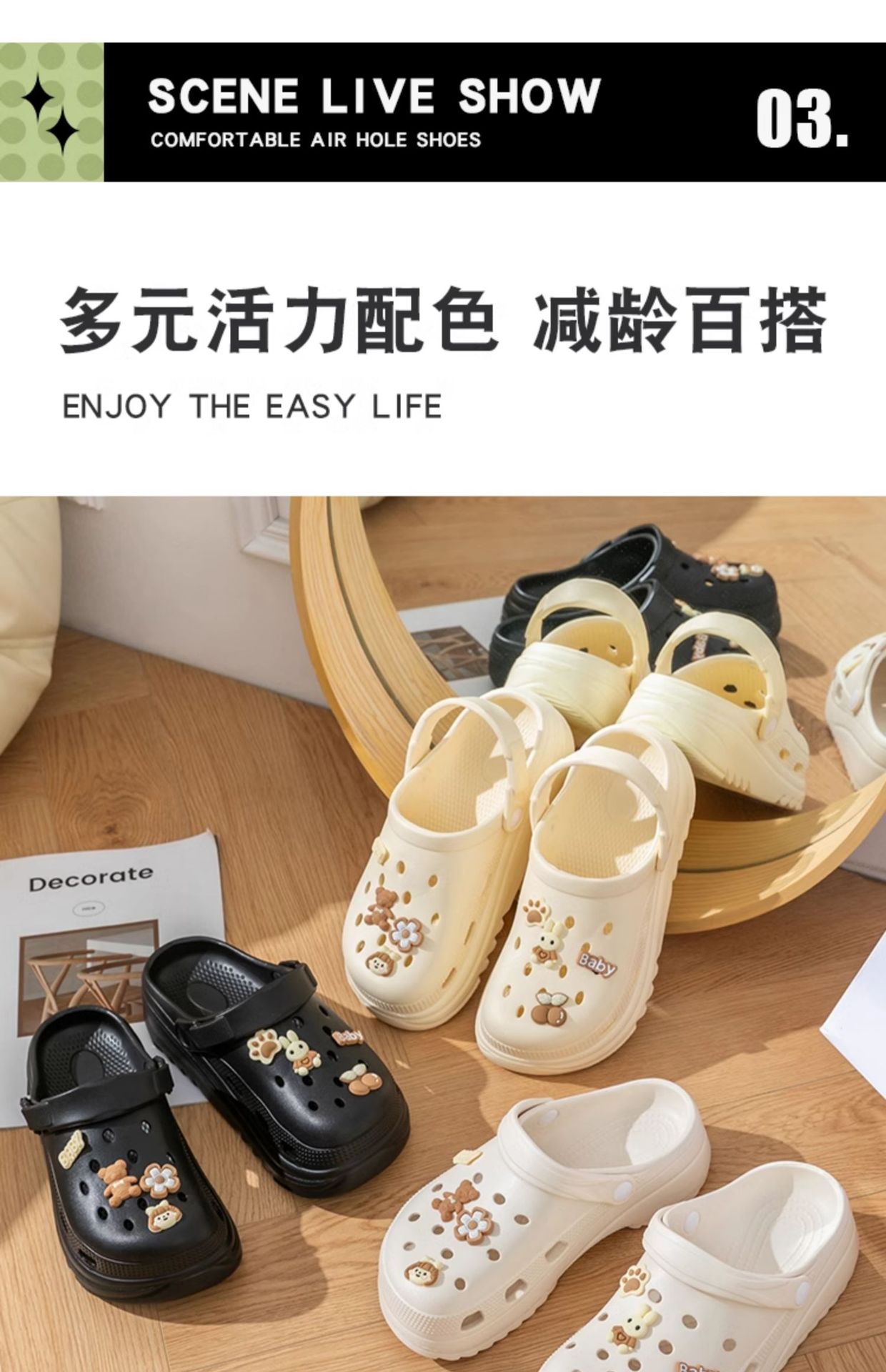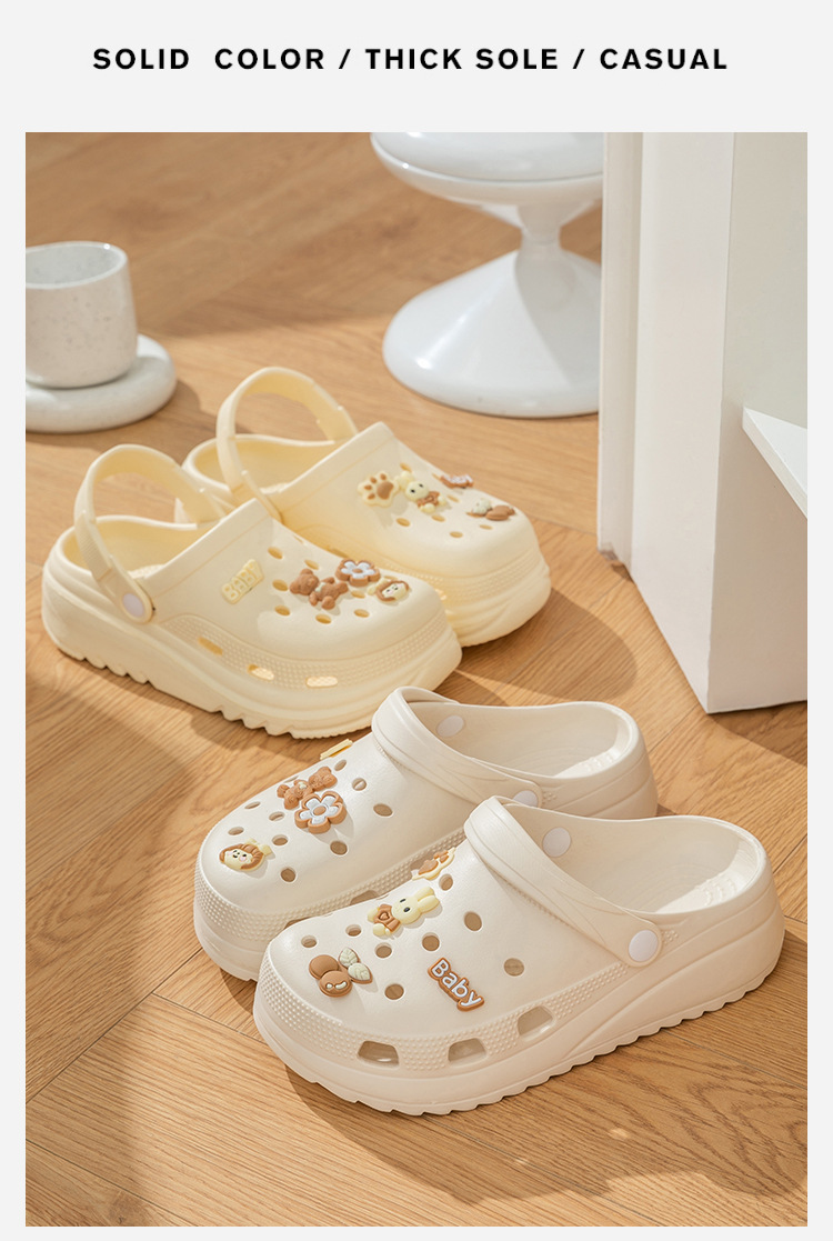 여름 아우터웨어 여성용 Croc 신발 2025 새로운 실내 홈 두꺼운 밑창 비치 미끄럼 방지 발가락 반 슬리퍼 여성용스토어 가기