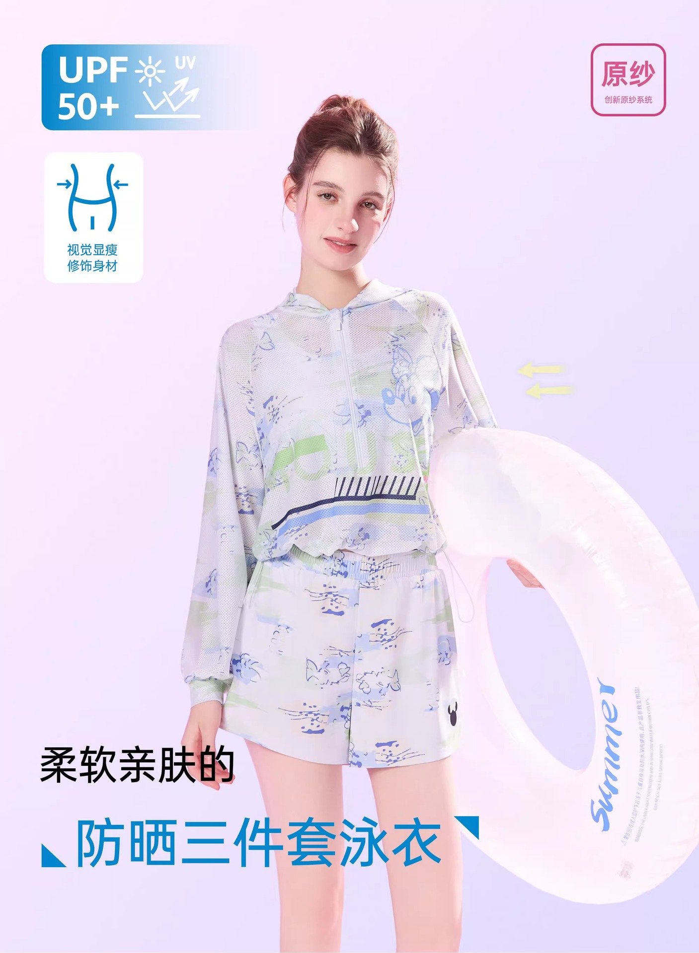 디즈니 수영복 여성 2025 새로운 해변 휴가 3 피스 커버 업 스플릿 보수적 인 태양 보호 해변 수영복 여성