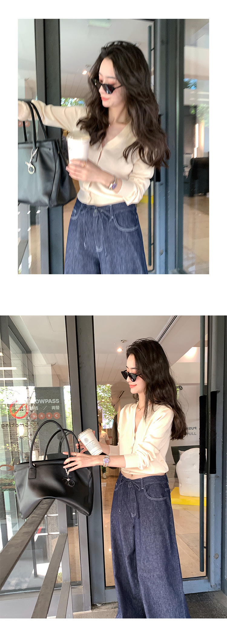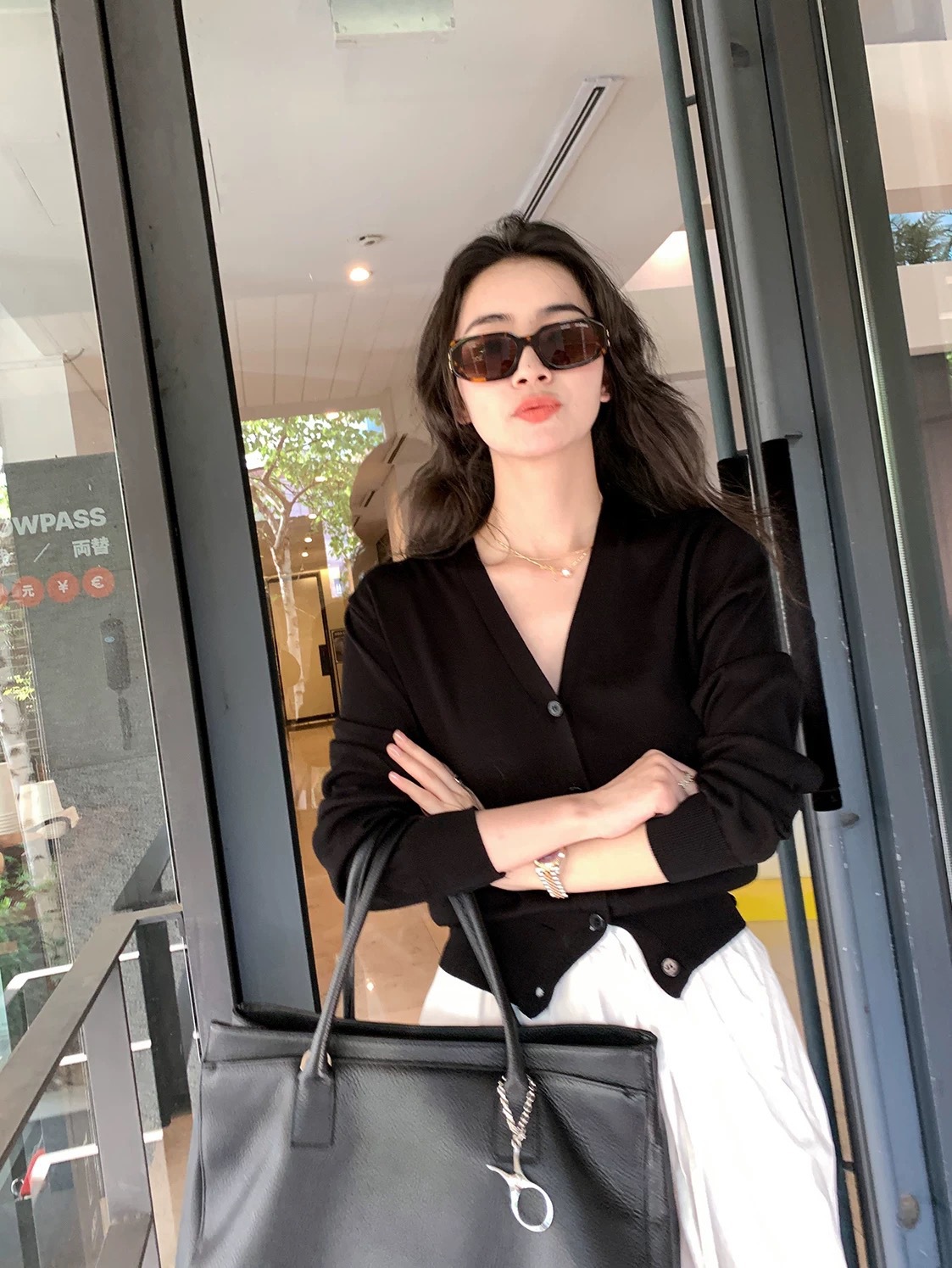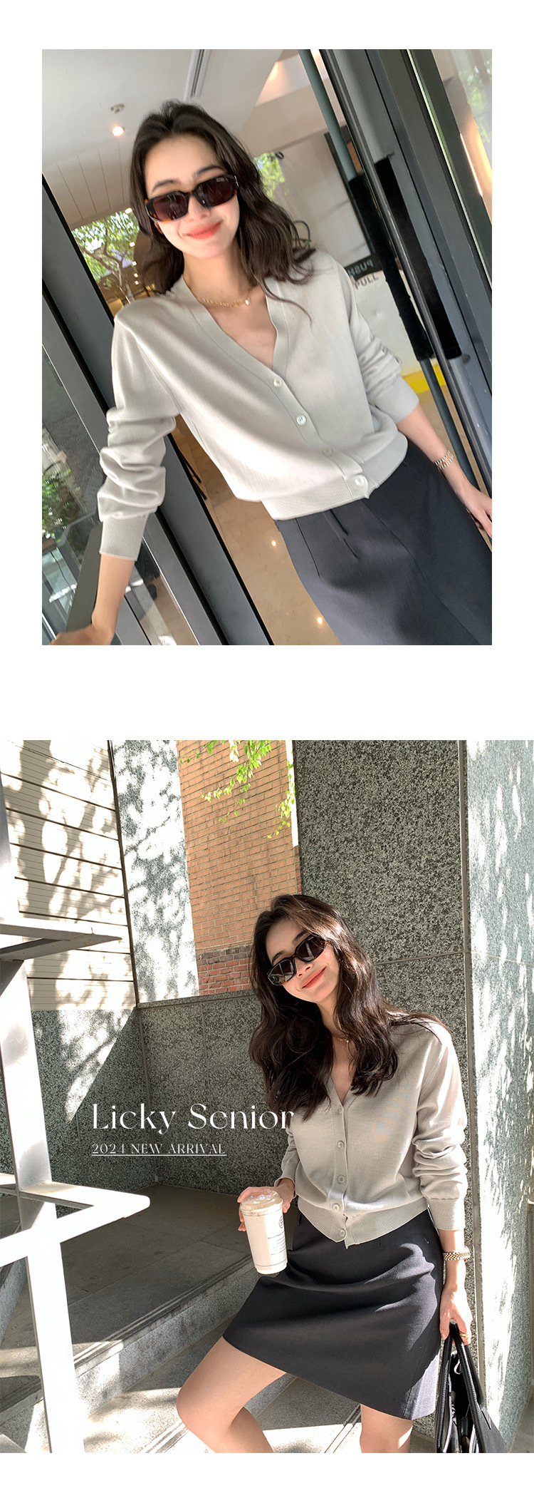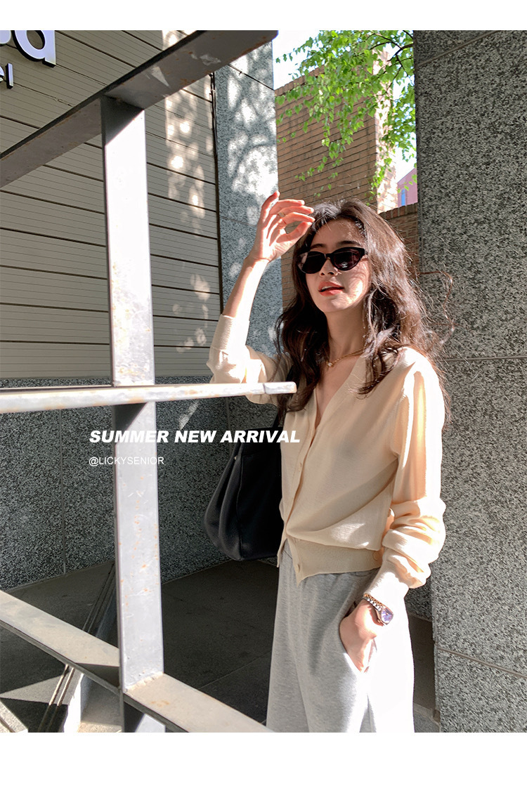 우아한 얇은 느슨한 슬리밍 Lyocell Tencel 니트 카디건 여성용 짧은 여름 원사 V-Neck 코트 탑스토어 가기