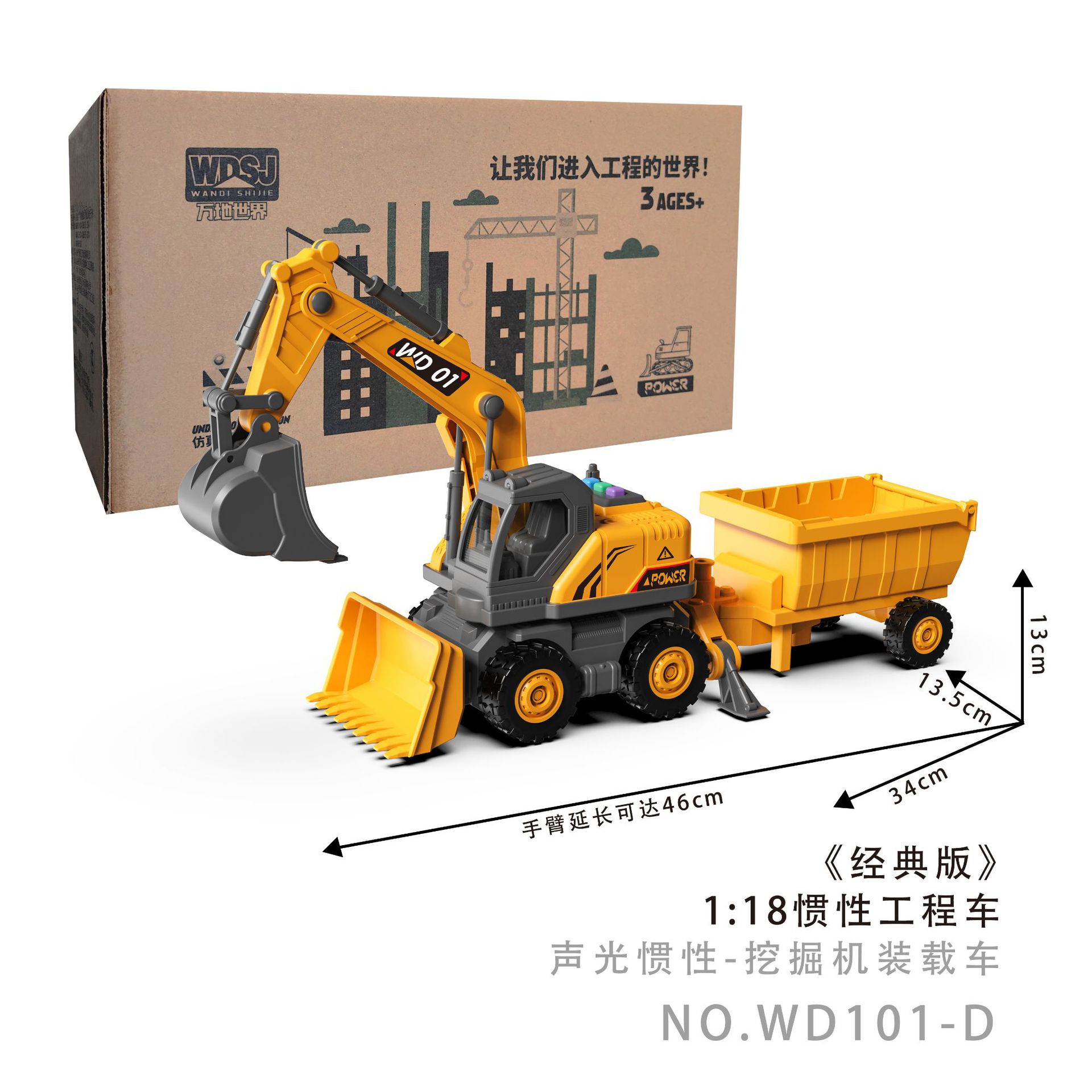 • 대형 [3-in-1 관성 굴삭기 트레일러] 음악/스토리/조명(컬러박스 없음)
