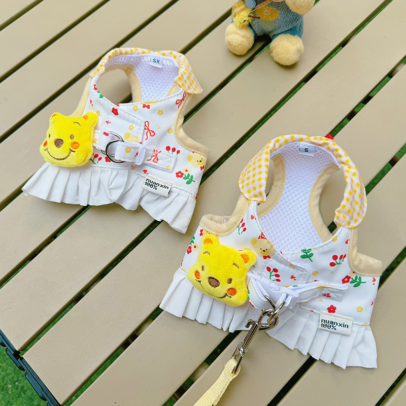애완 동물 개 고양이 유니버설 가슴과 뒤 견인 밧줄 작은 개 옷 커플 곰 공주 푸우 인형스토어 가기