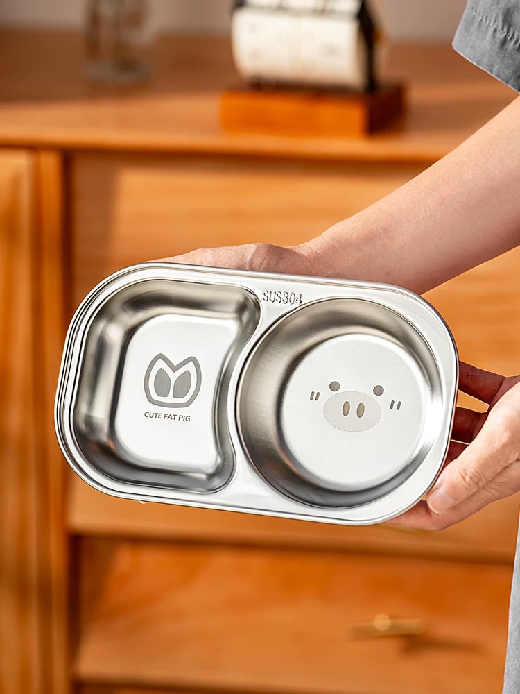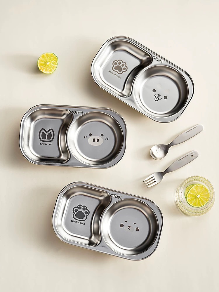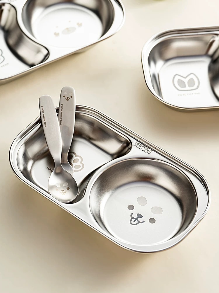 304 스테인레스 스틸 어린이 디너 플레이트 식품 등급 이유식 보조 식품 독립 식사 플레이트 귀여운 고가치 플레이트