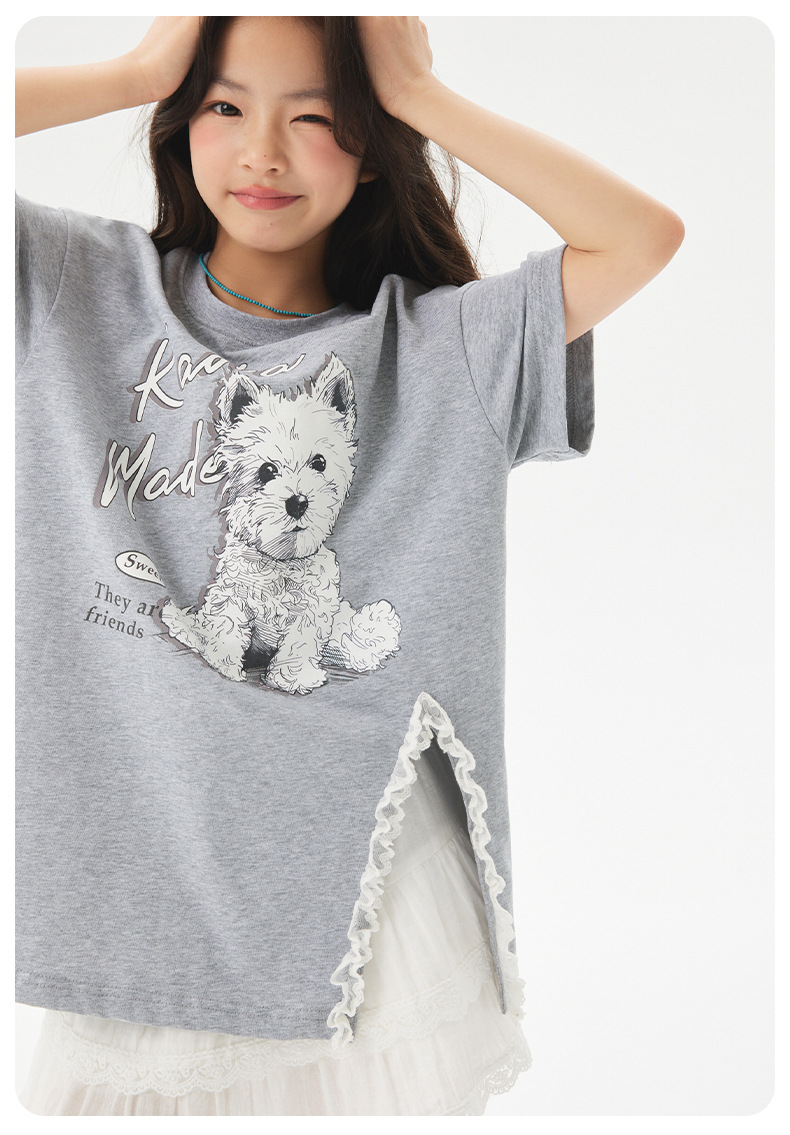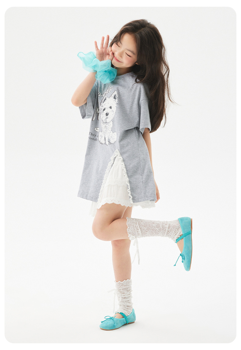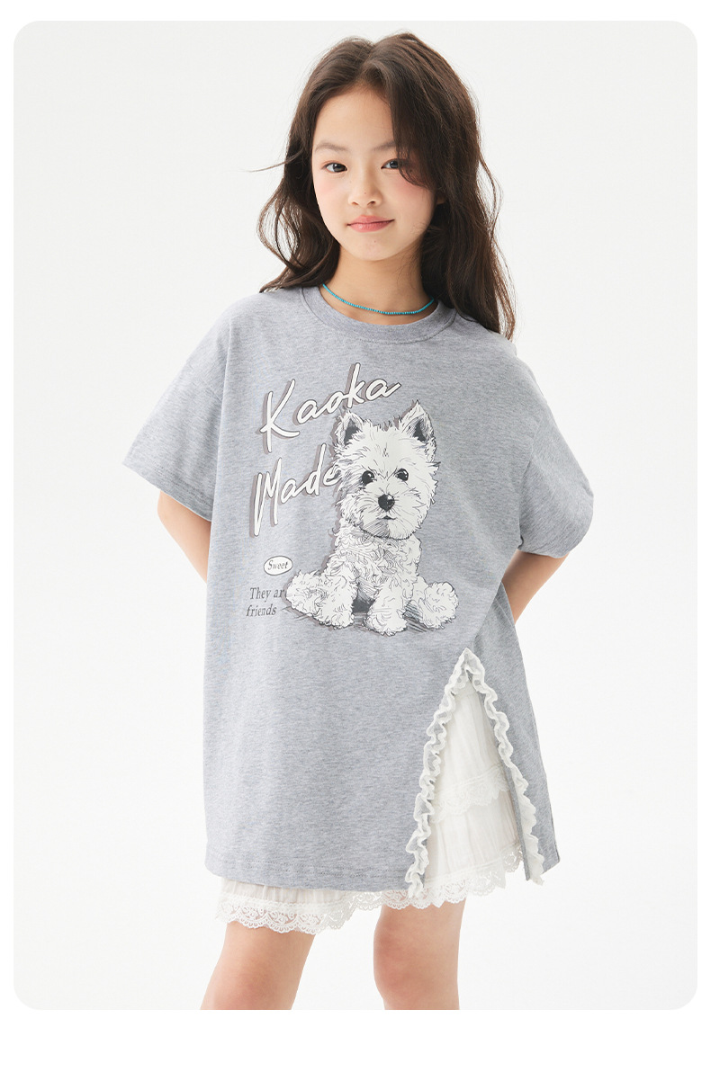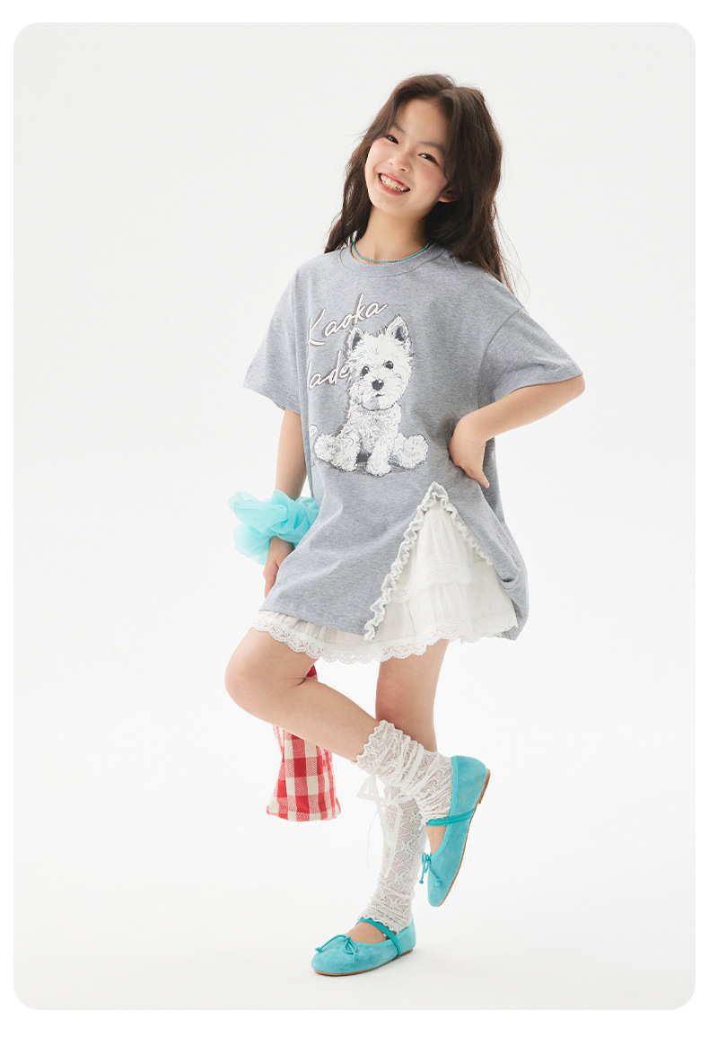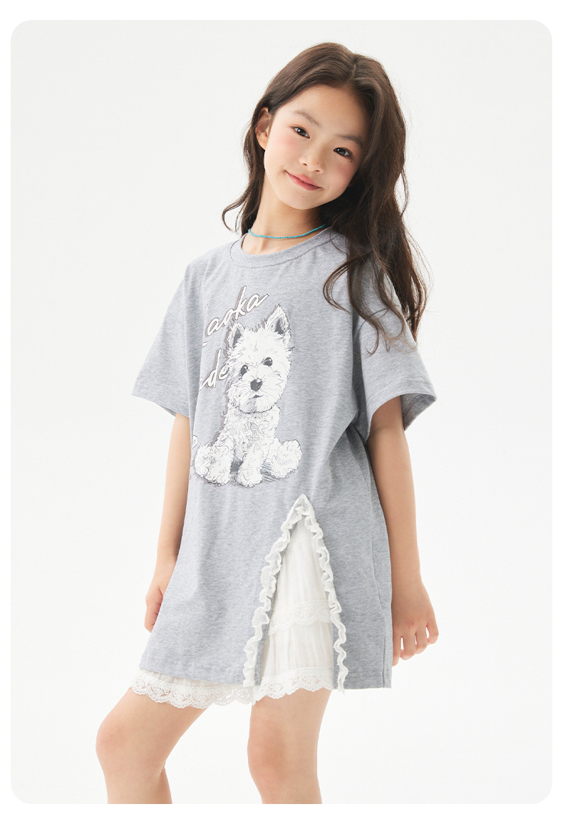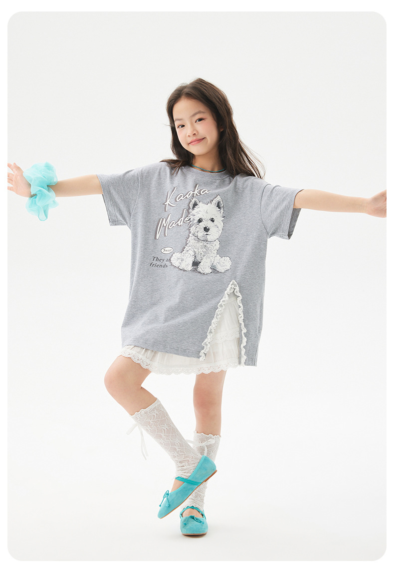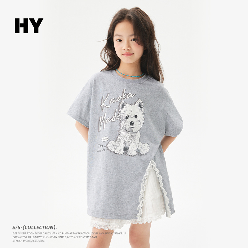 여아 만화 티셔츠 2026 여름 신상 아동 한국 스타일 반팔 롱탑 중대형 아동용 반팔 트렌디 상의