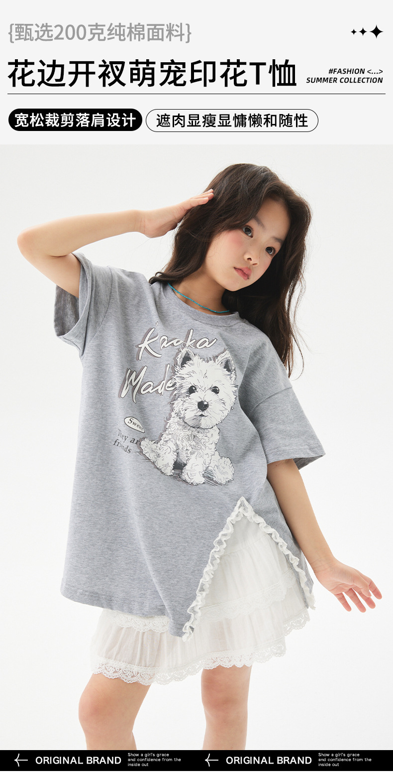 여아 만화 티셔츠 2026 여름 신상 아동 한국 스타일 반팔 롱탑 중대형 아동용 반팔 트렌디 상의스토어 가기