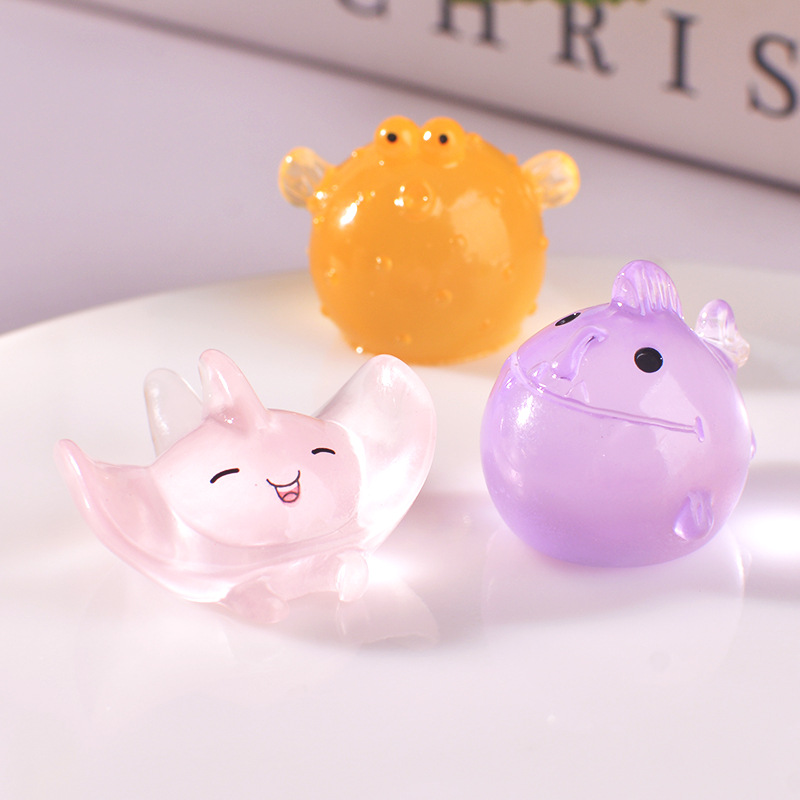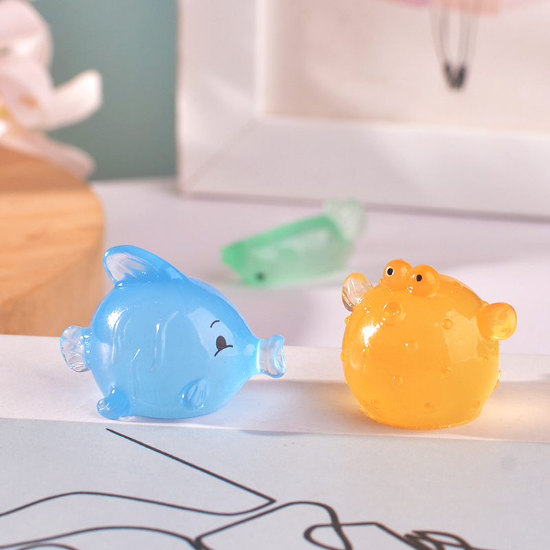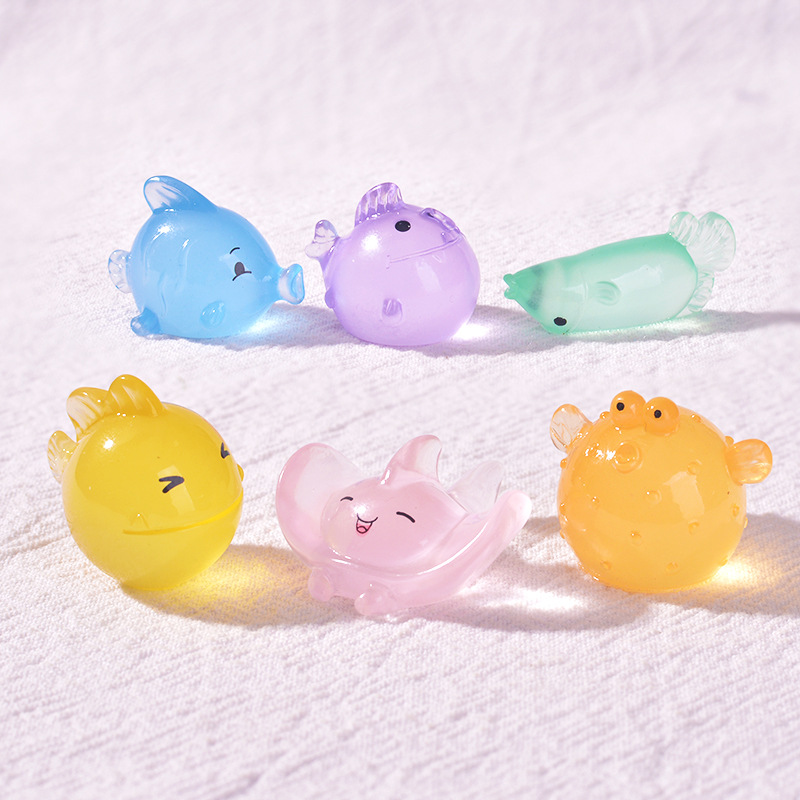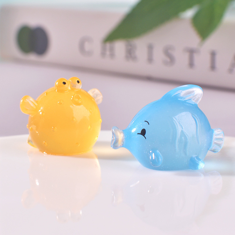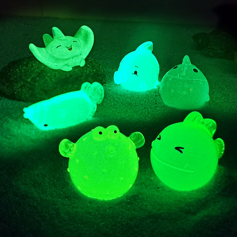 새로운 빛나는 물고기 DIY 수지 공예 빛나는 장식품 귀여운 해마 마이크로 풍경 물고기 탱크 작은 장식품