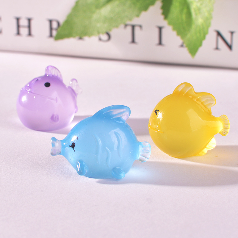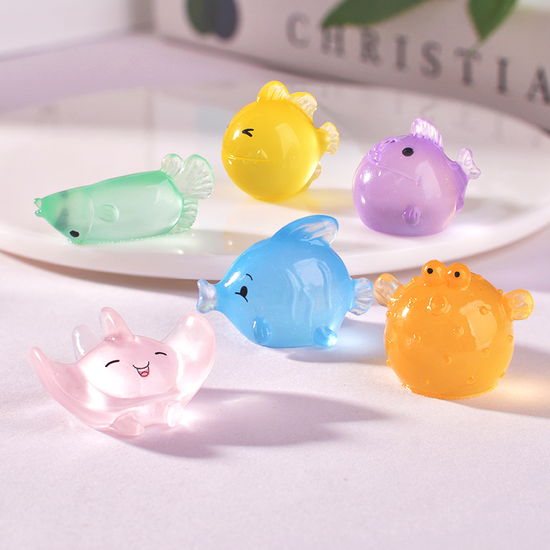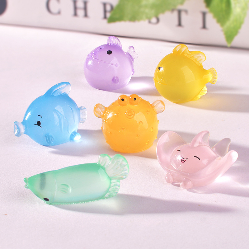 새로운 빛나는 물고기 DIY 수지 공예 빛나는 장식품 귀여운 해마 마이크로 풍경 물고기 탱크 작은 장식품스토어 가기